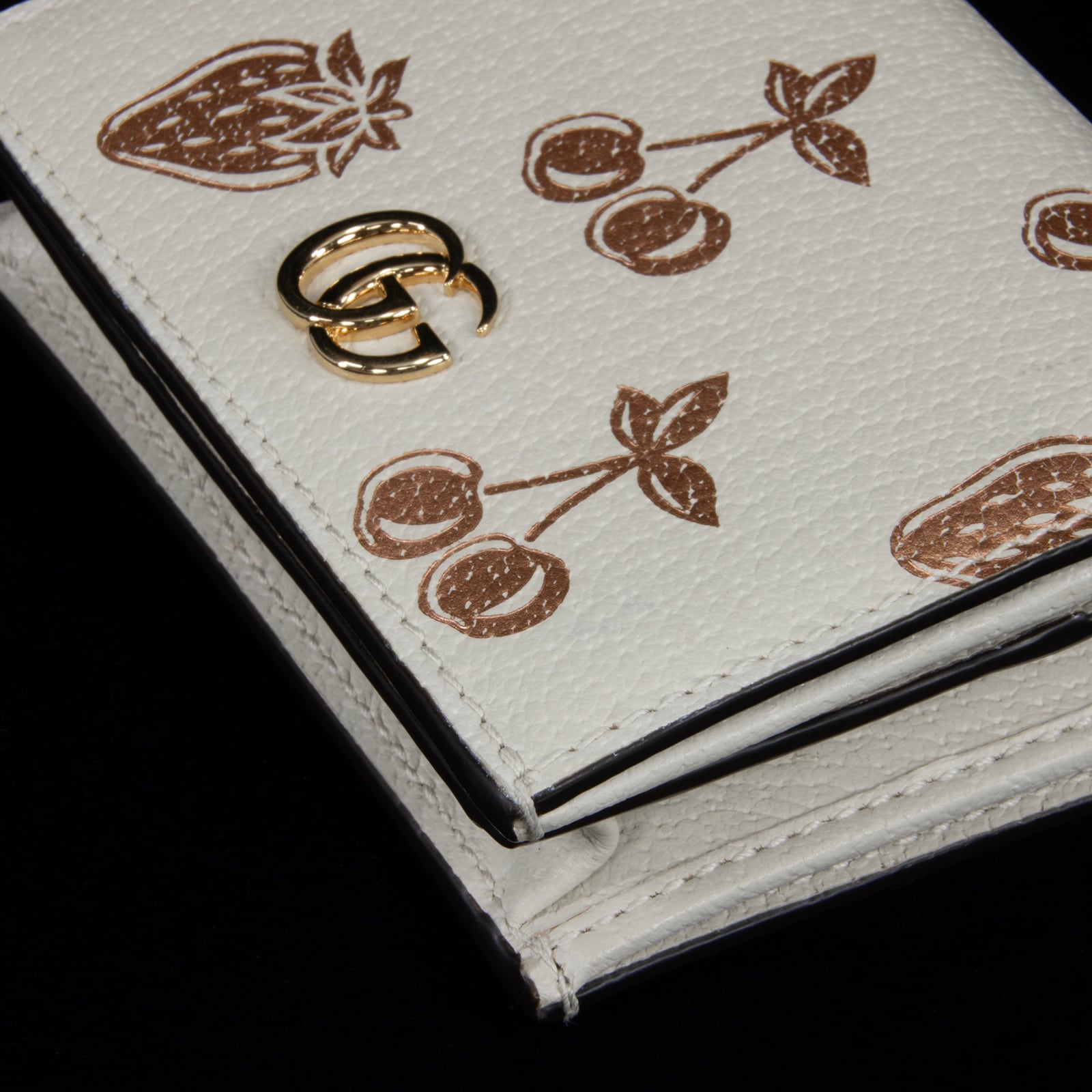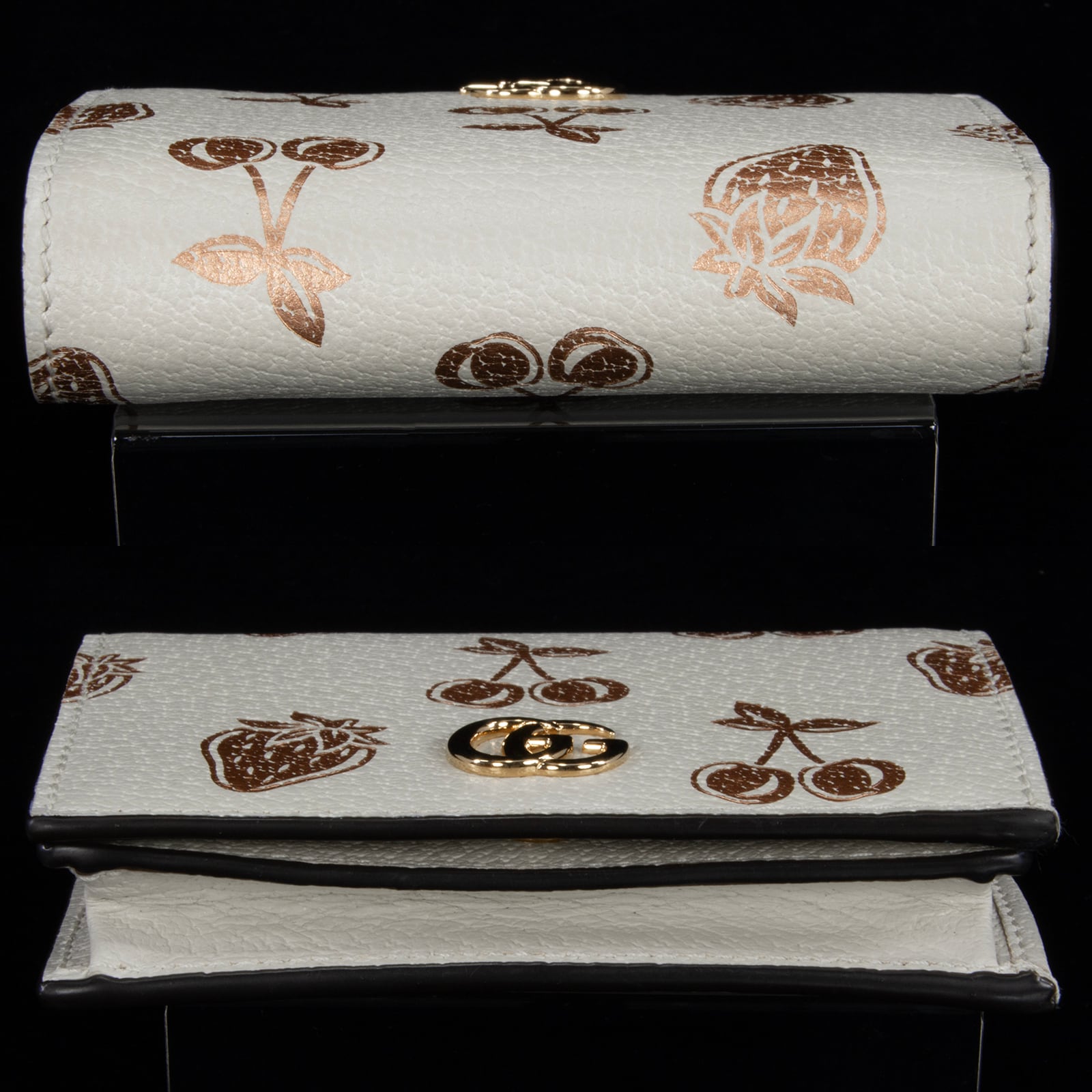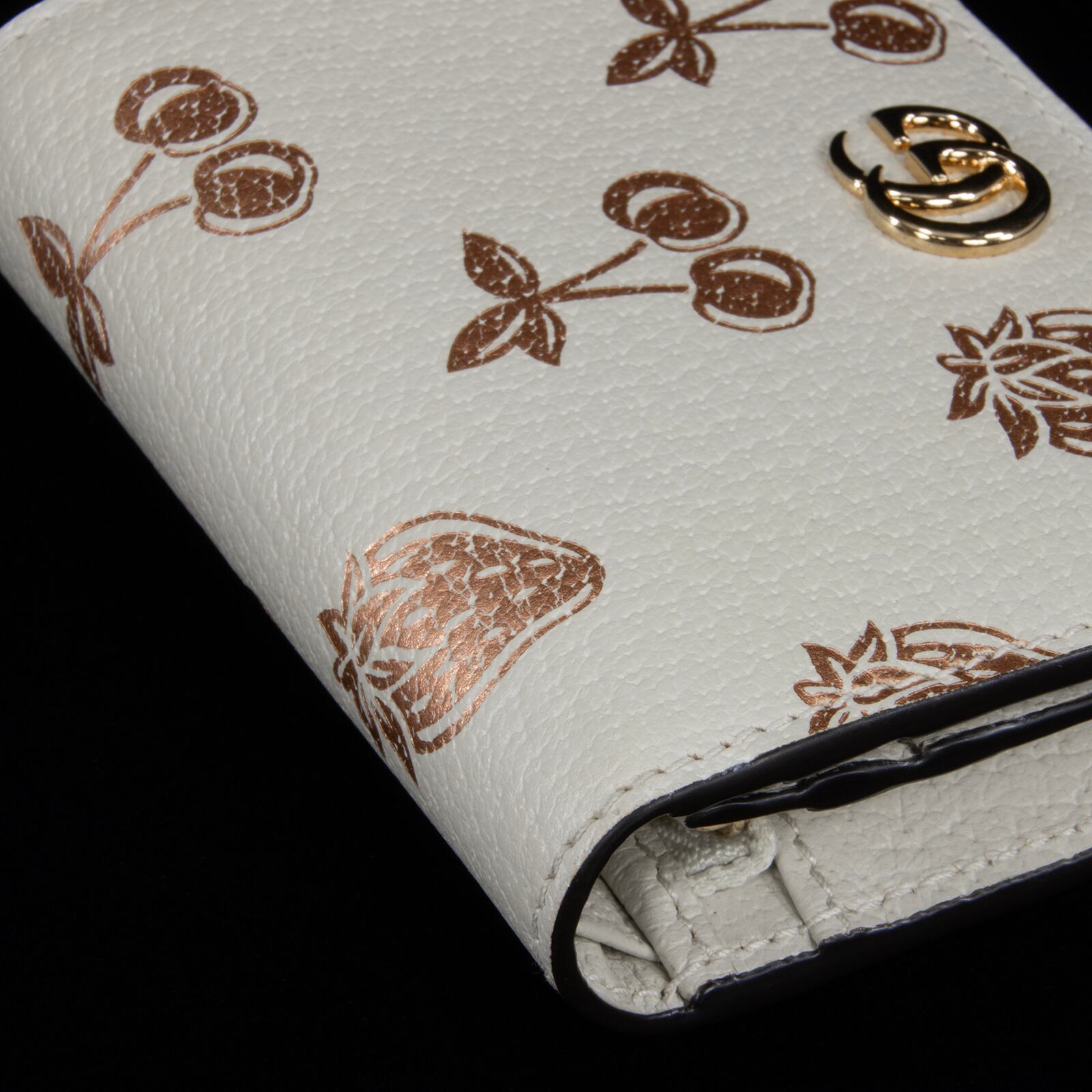 特徴:珍しい・レアモデル・ミニ・コンパクト・小さい・総柄・果物・フルーツ・さくらんぼ・苺・GGロゴ・マーク・本革・レザー・ゴールド金具・小銭入れあり・ハイブランド・かわいい・おしゃれ