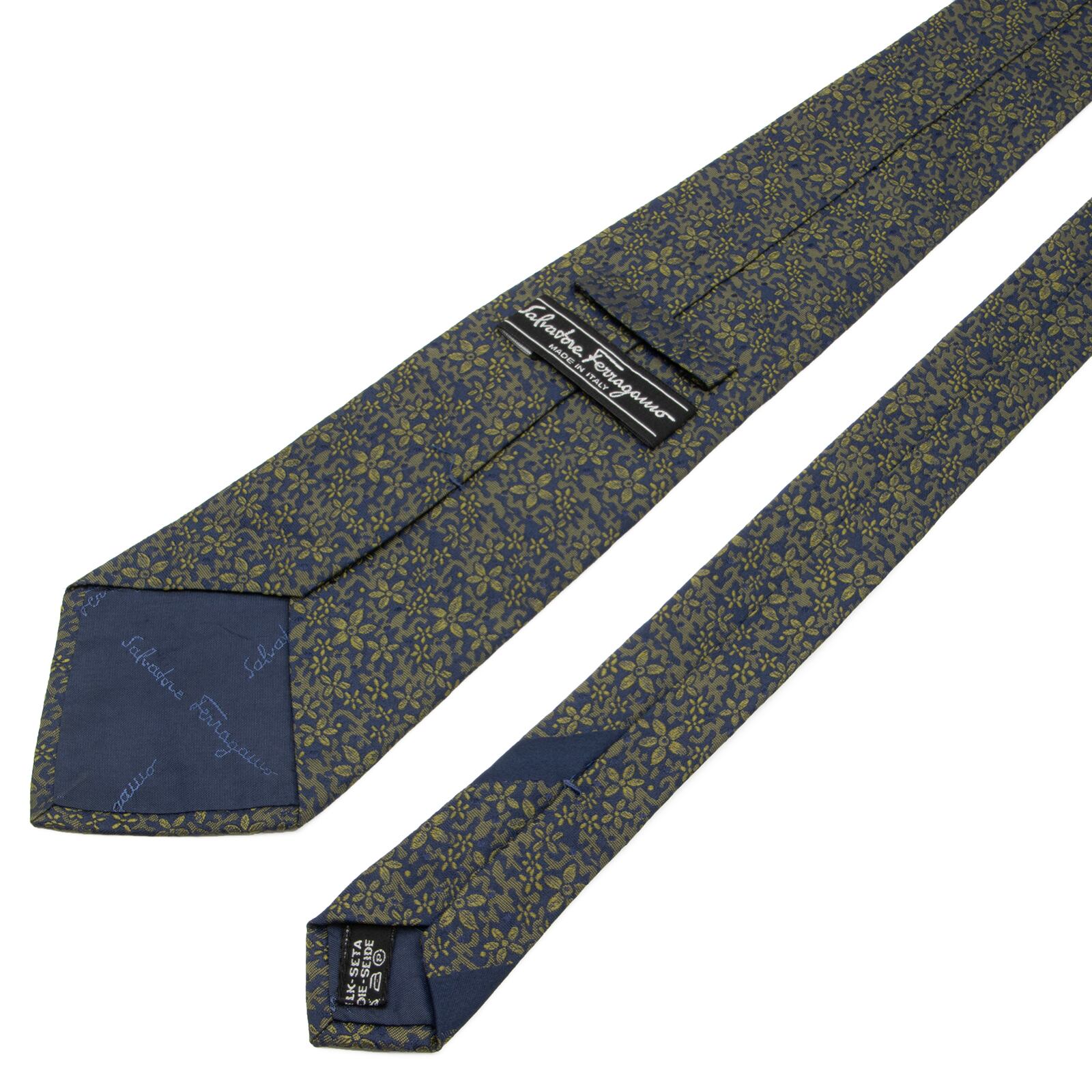 送料無料 フェラガモ ネクタイ ジャガードタイ メンズ シルク 緑 グリーン 青 紺色 ネイビーブルー Y2K 90's 00's 光沢 花 ブランド P449