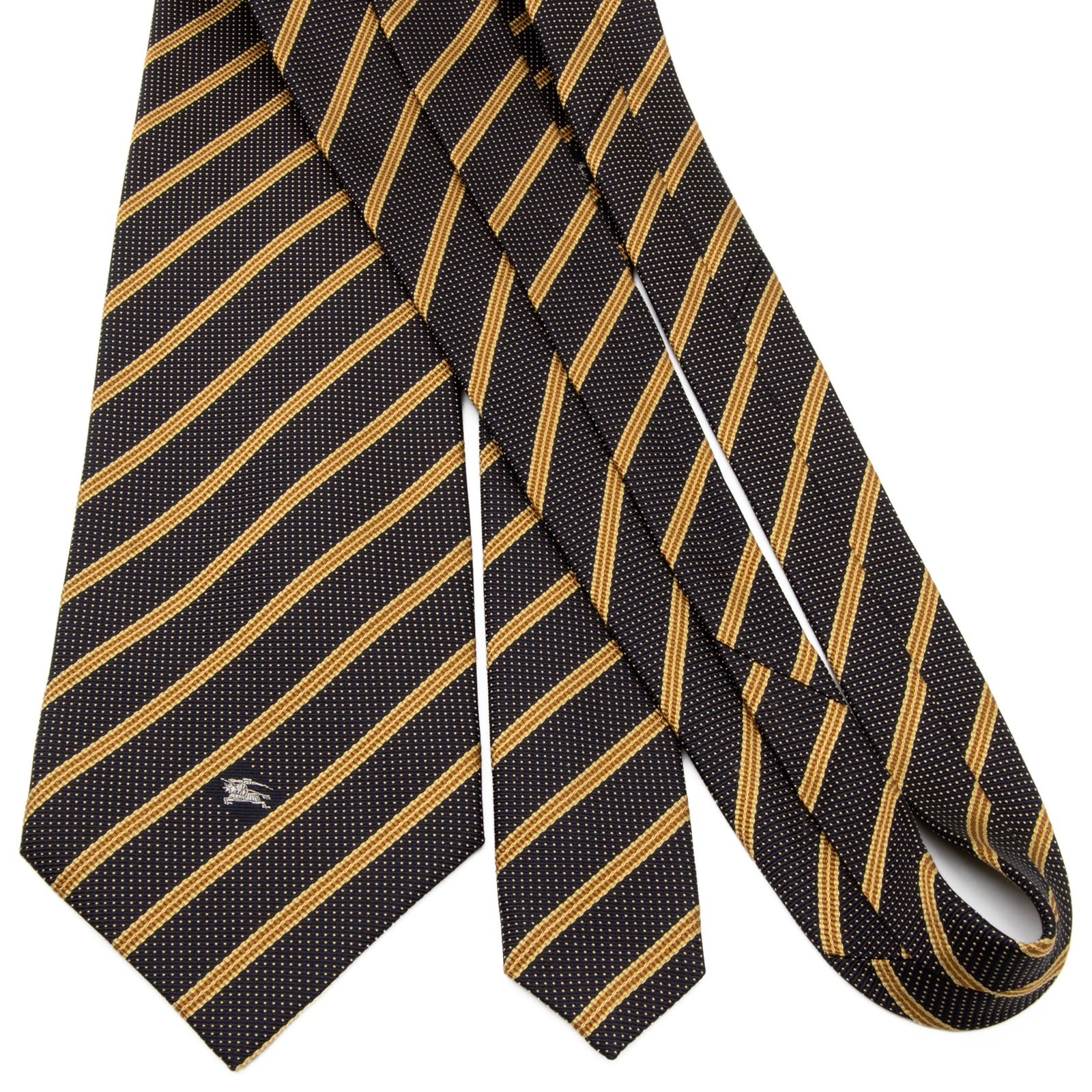 送料無料 バーバリー ネクタイ ジャガード 新品同様 シルク ゴールド 黒 シルバー ビジネス ストライプ ドット 光沢 馬 ロゴ マーク P706