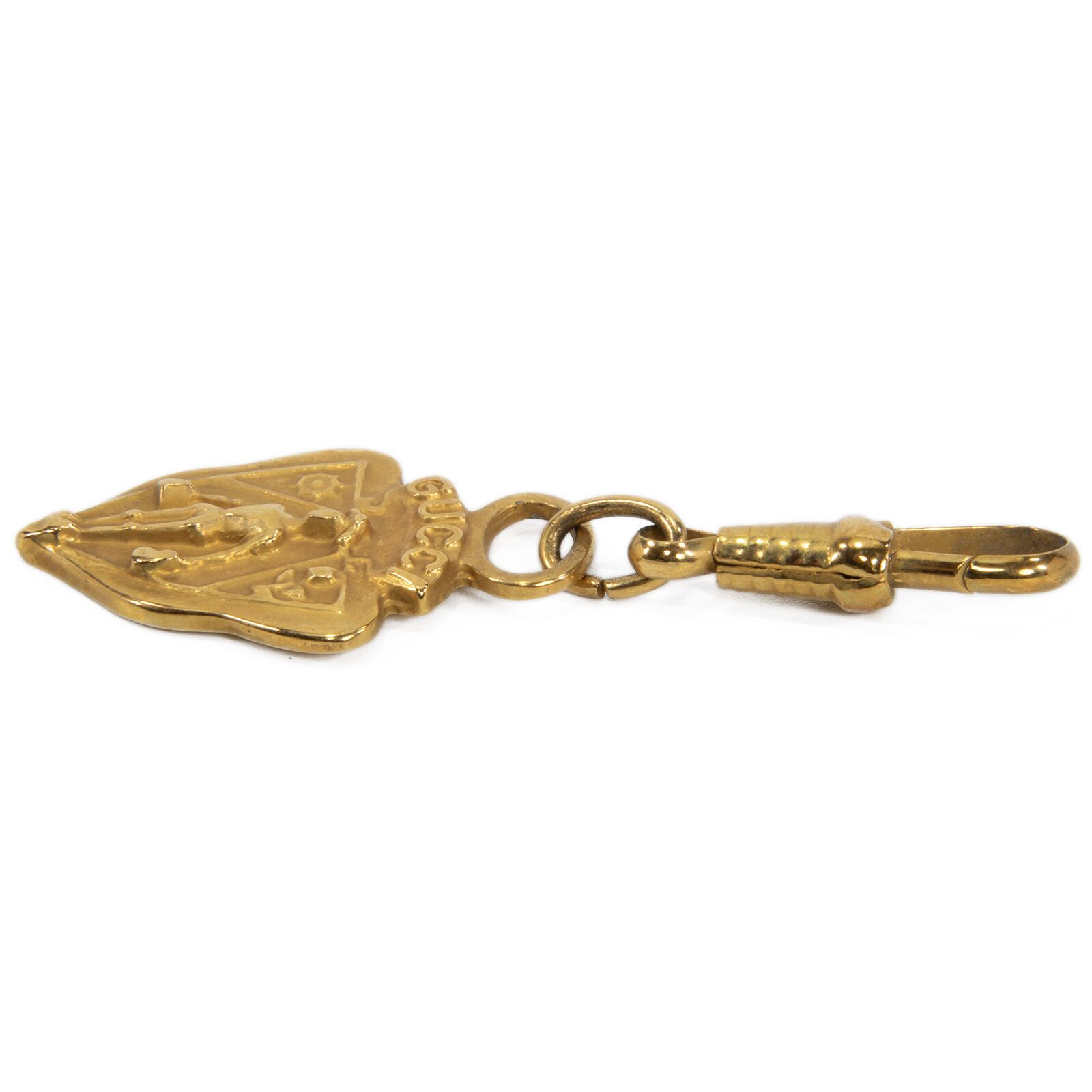 送料無料 オールドグッチ チャーム 金色 イエローゴールド ヴィンテージ クレスト 紋章 騎士 ロゴ マーク アクセサリー キーホルダー W004