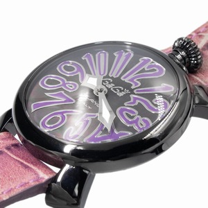 送料無料 ガガミラノ 腕時計 レディース マヌアーレ40mm 5022.2 黒 ブラック 紫 シェル盤 ロゴ 革ベルト ブランド 珍しい レアカラー X318