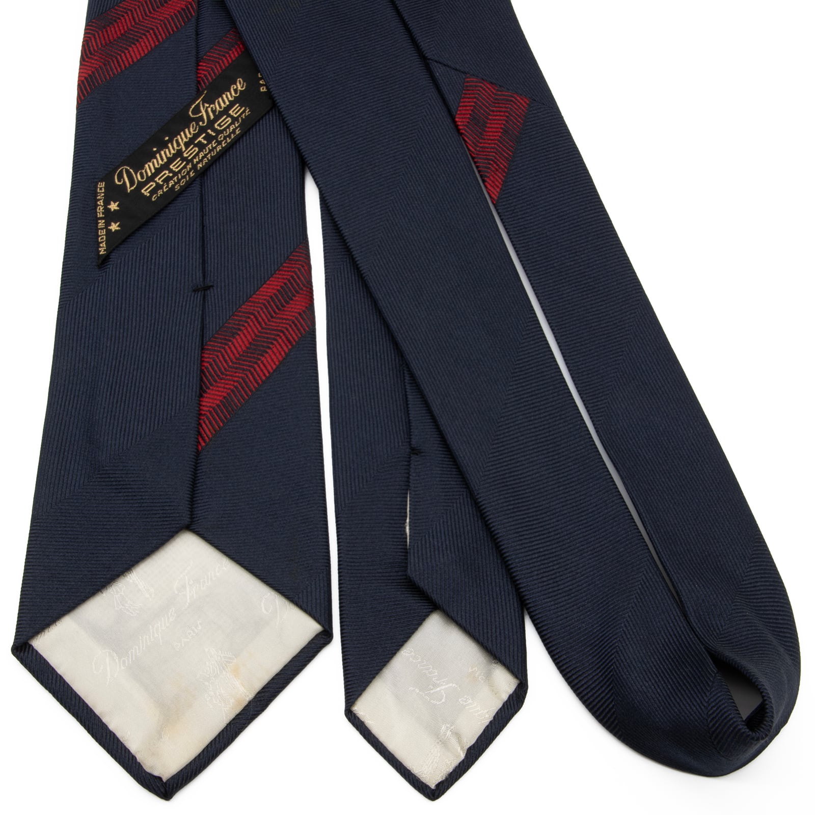 送料無料 ドミニックフランス ネクタイ レギュラータイ ジャガード ネイビーブルー 赤 ストライプ Y2K 00s シンプル ブランド 綺麗 P334