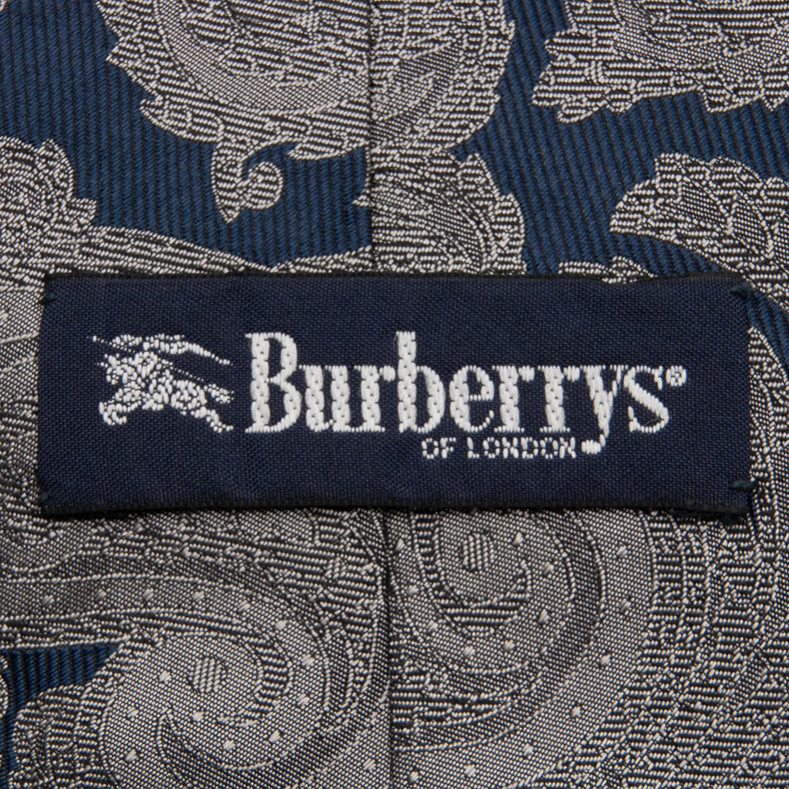 送料無料 バーバリー ネクタイ ジャガードタイ シルク シルバー ネイビーブルー ペイズリー 光沢 馬 ロゴ マーク Y2K 90s 00s 綺麗 P405