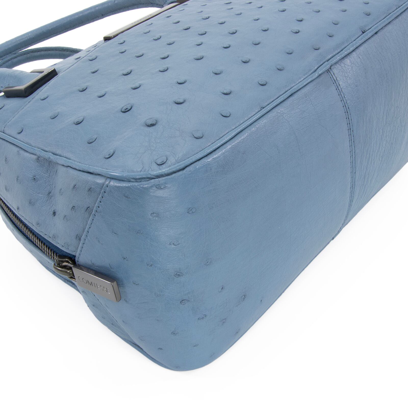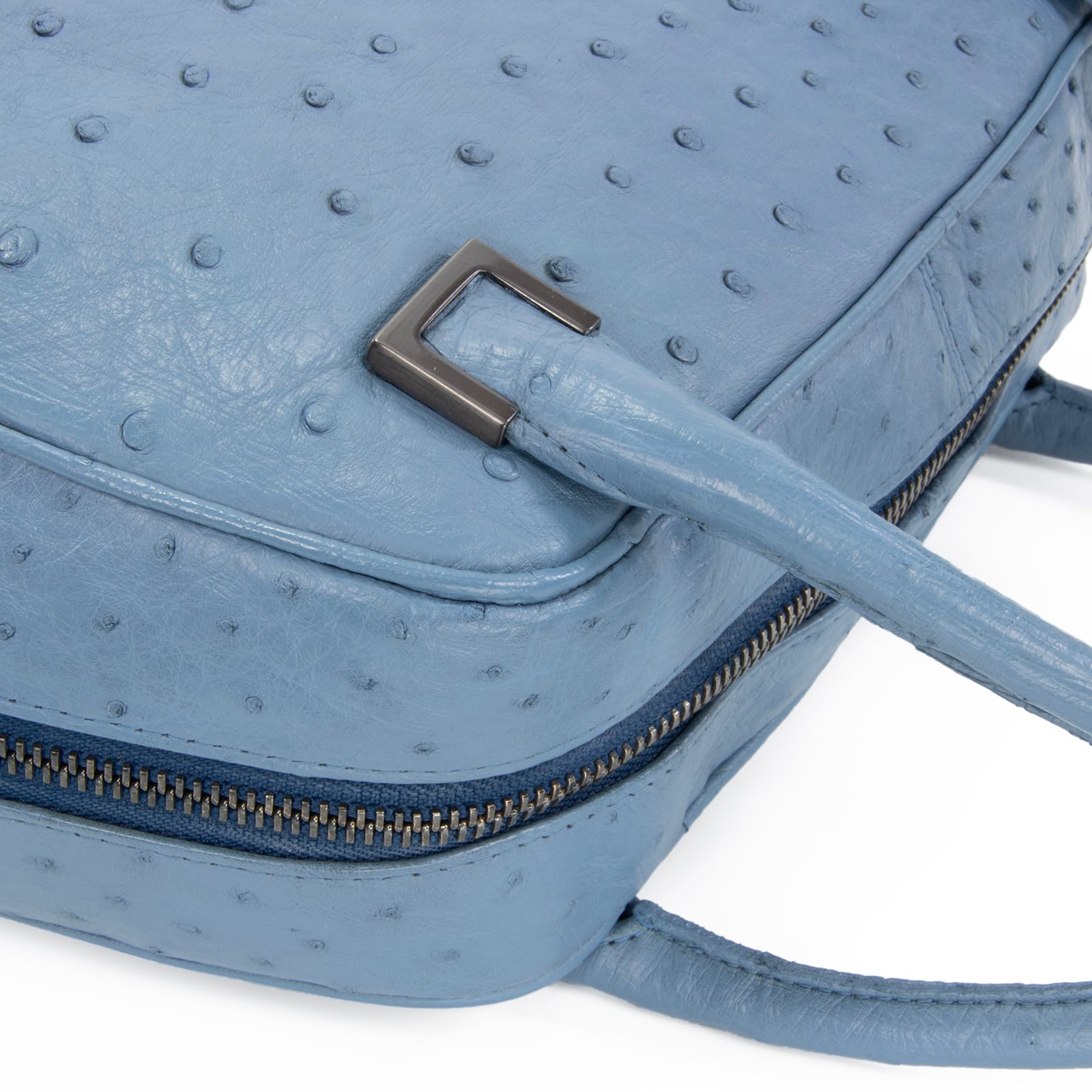 本物 送料無料 コンテス ハンドバッグ レディース オーストリッチ 青 ブルー 珍しい 自立可能 最高級 ロゴ マーク 革 綺麗 鞄 バック F281