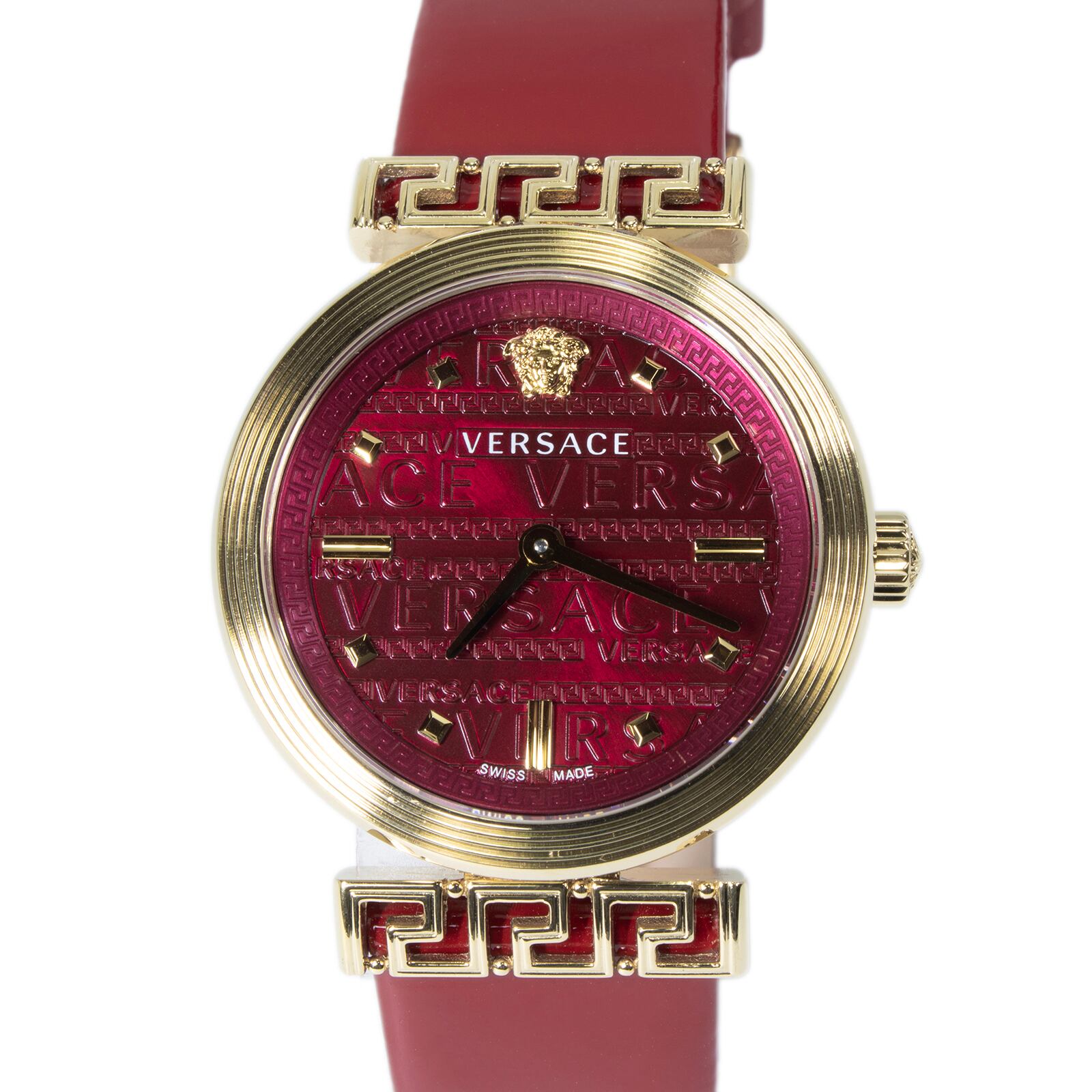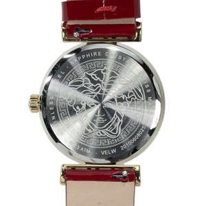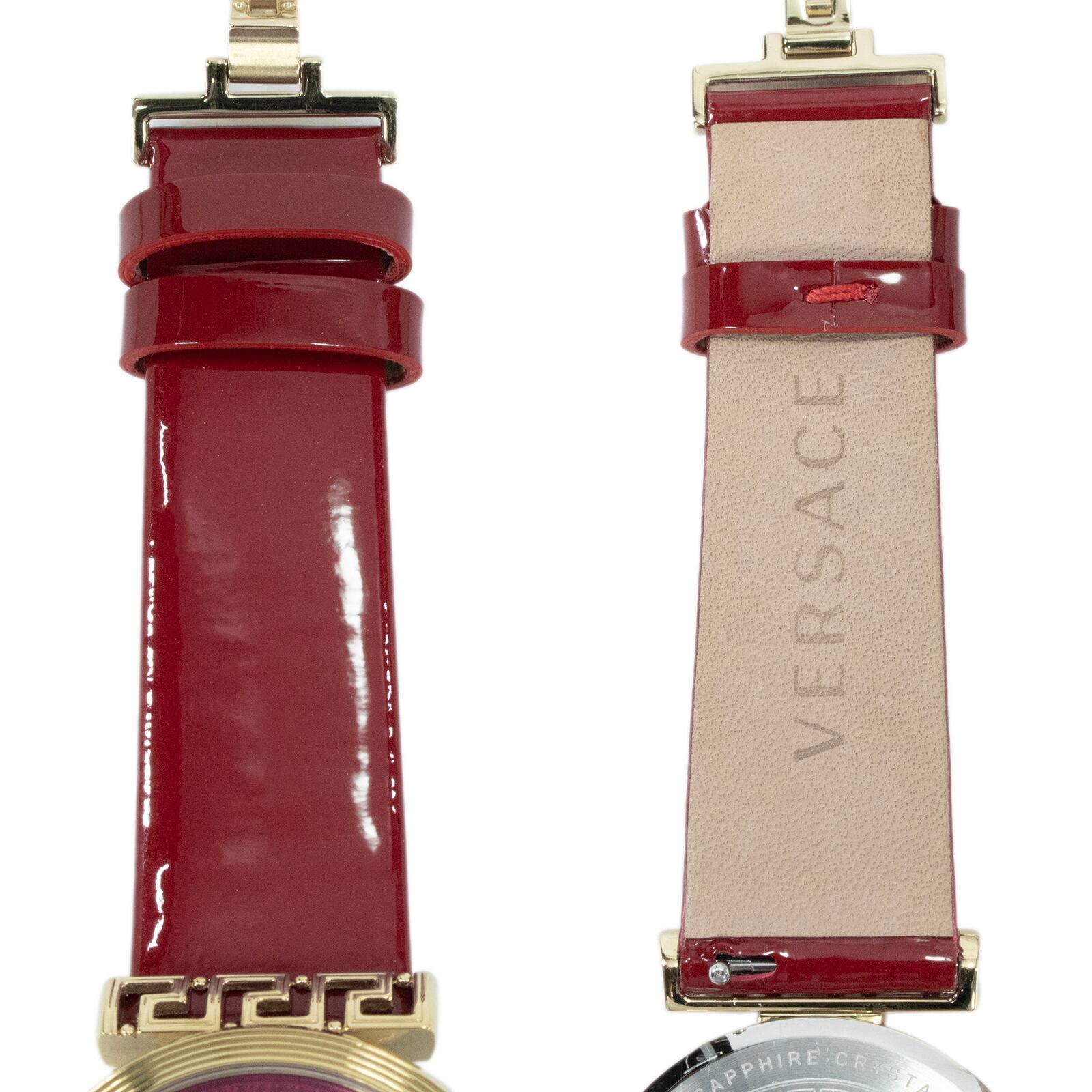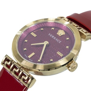 送料無料 ヴェルサーチェ 腕時計 レディース ミアンダー VELW01222 赤 メタリックレッド 派手 目立つ メドゥーサロゴ 革ベルト 綺麗 X335