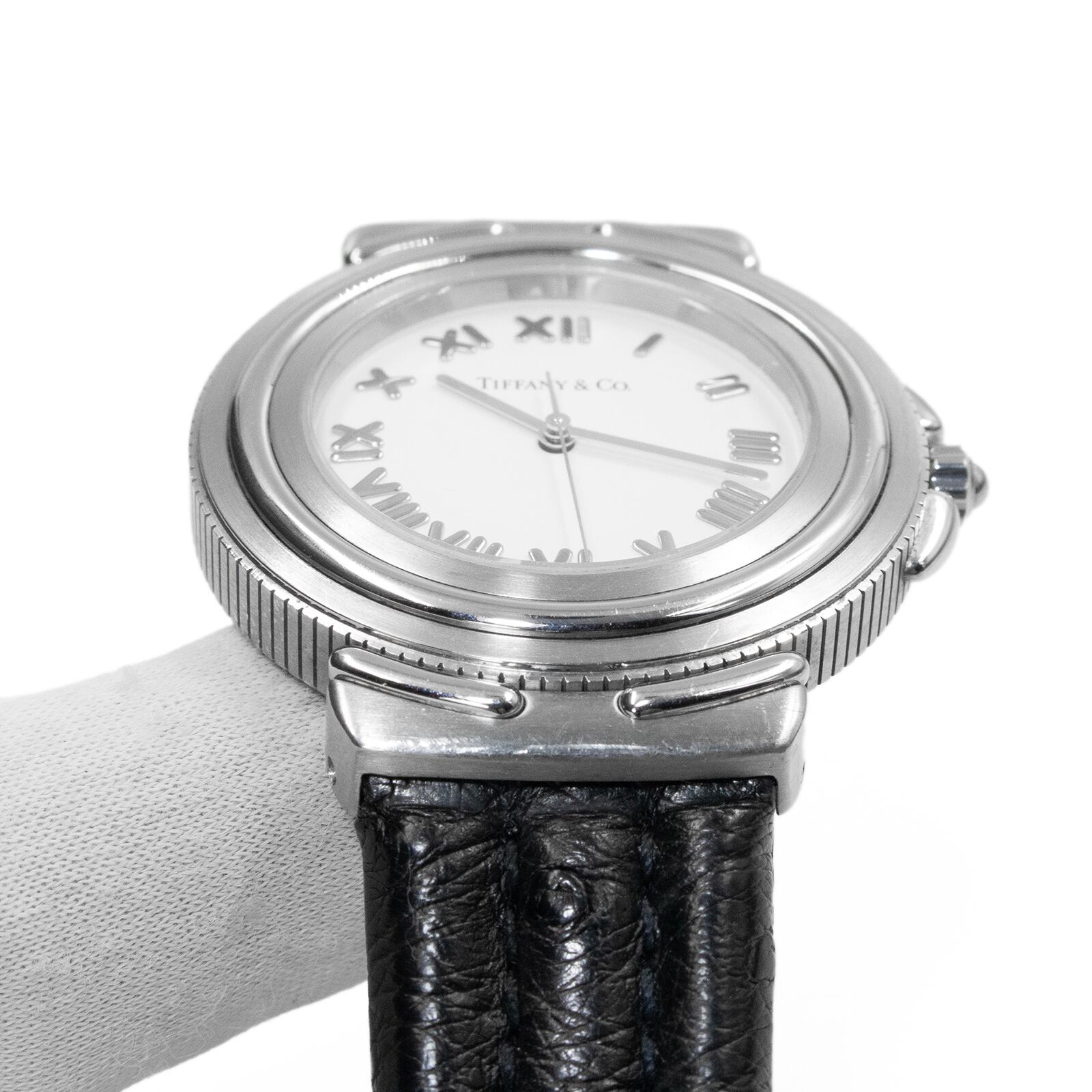 送料無料 ティファニー 腕時計 メンズ インタリオ M081 白 ホワイト 黒 シンプル 立体ローマン文字 ロゴ アナログ 革ベルト ビジネス Q154