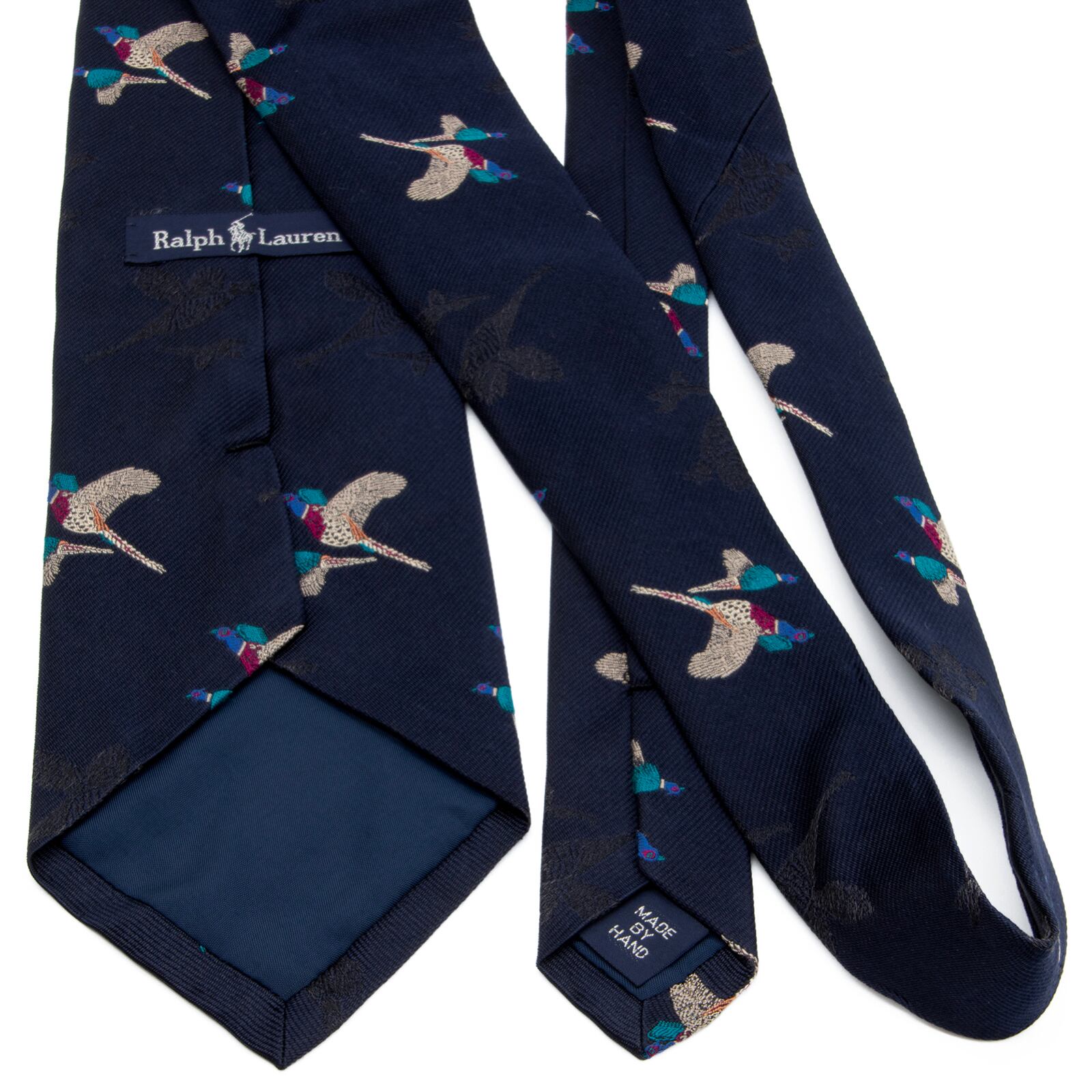 送料無料 ラルフローレン ネクタイ ジャガードタイ シルク ネイビーブルー グレー 青緑 総柄 動物 アニマル 鳥 ブランド 珍しい 綺麗 P266