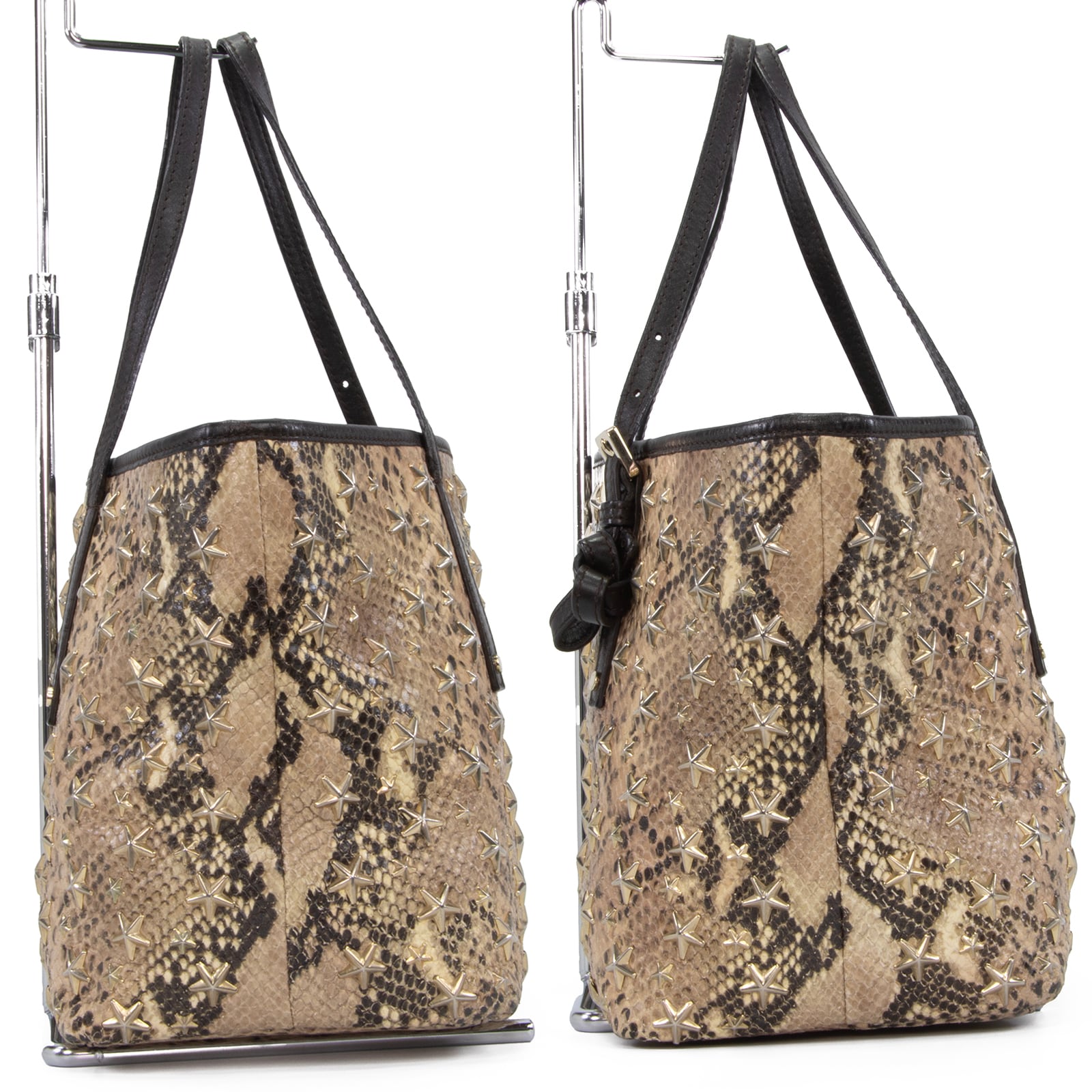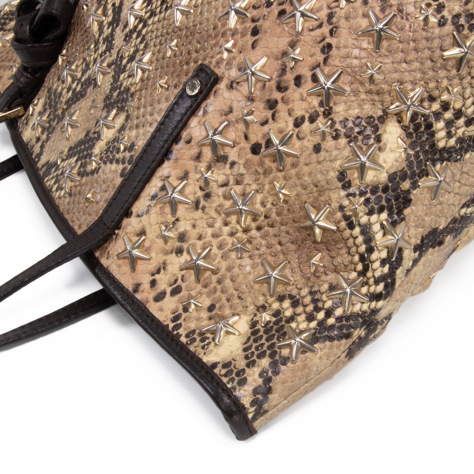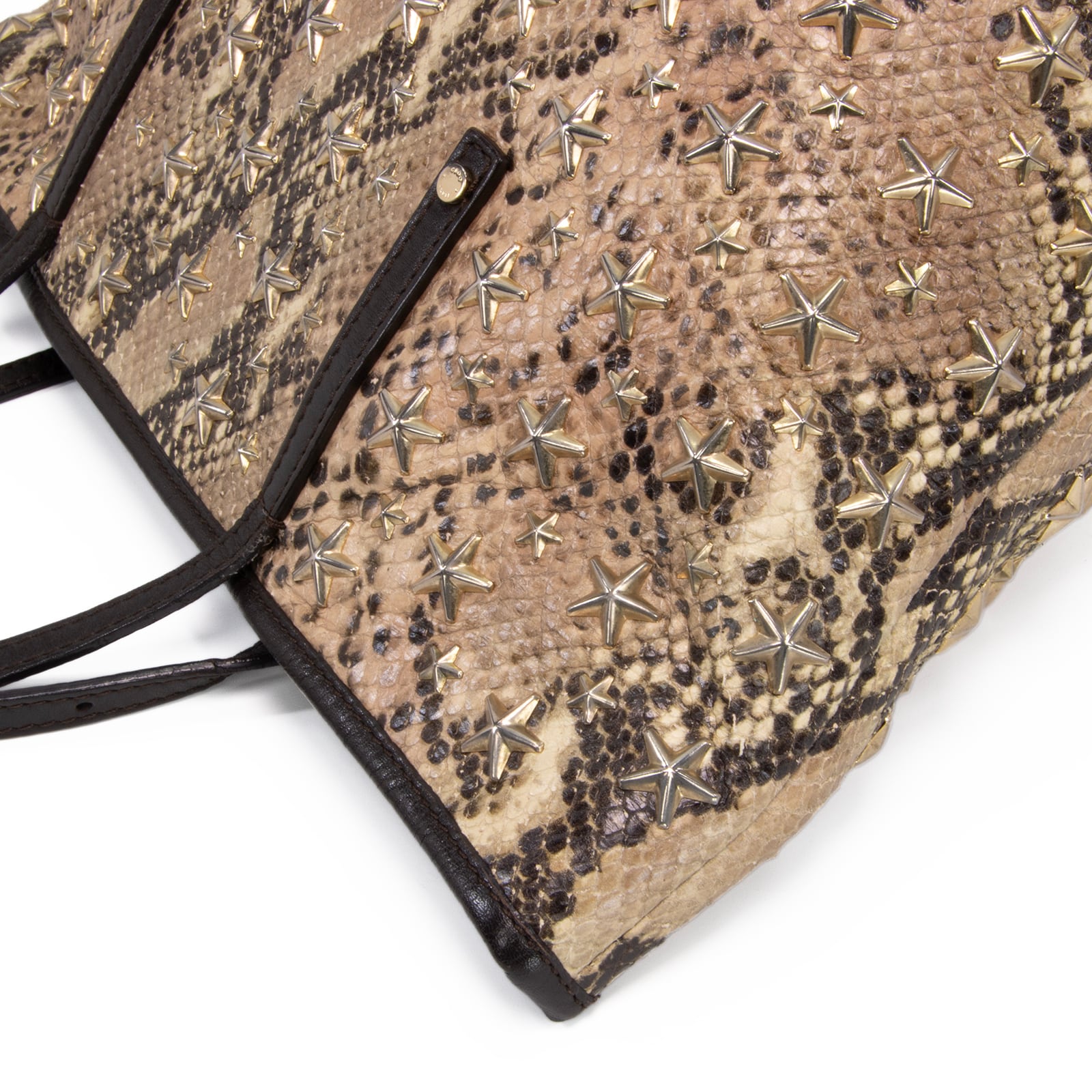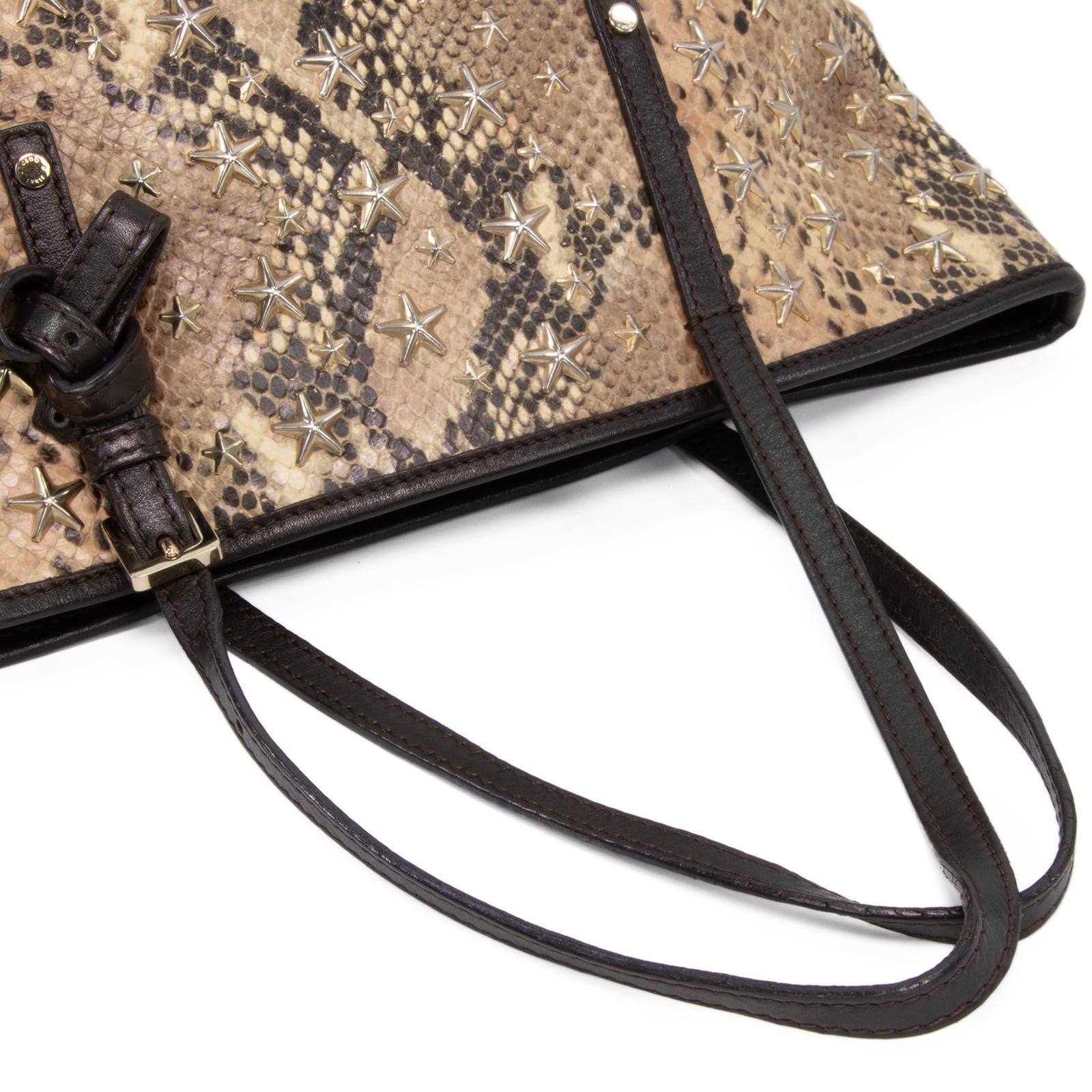 本物 送料無料 ジミーチュウ ハンドバッグ トートバッグ レディース パイソン型押 サシャ 茶色 小さめ 星 スタースタッズ ロゴ バック I254