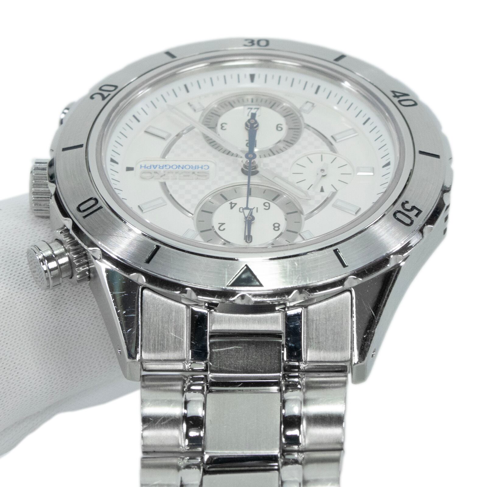 送料無料 セイコー 腕時計 メンズ イグニッション クロノグラフ 7T92-0HY0 SBHQ017 白 ホワイト シンプル ロゴ マーク ブランド 綺麗 X340