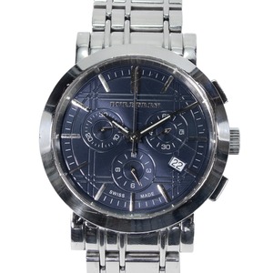 送料無料 バーバリー 腕時計 メンズ ヘリテージ BU1360 ネイビーブルー クロノグラフ ロゴ マーク スモセコ メタルブレス 輸入モデル Q157
