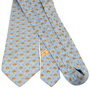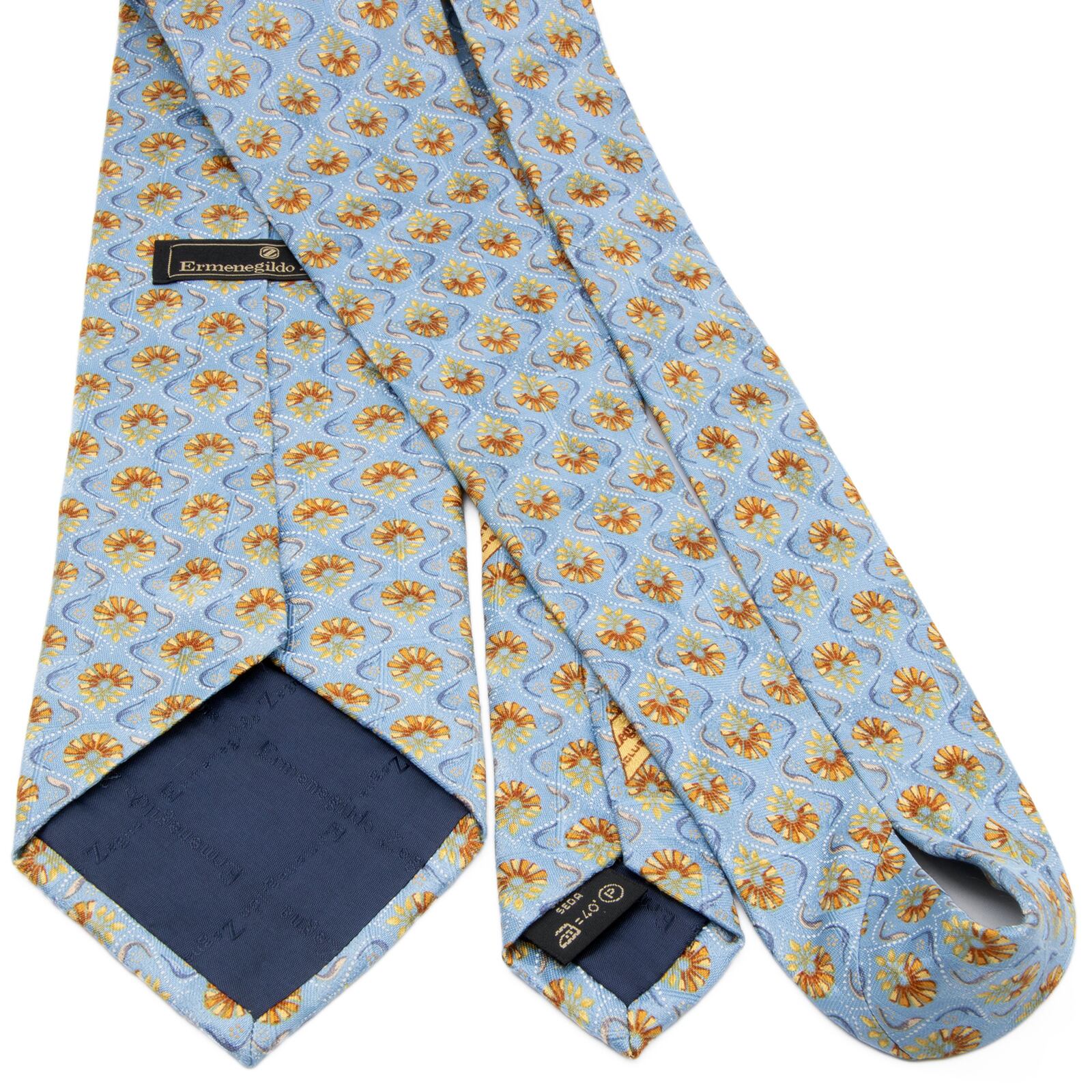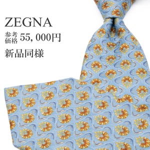 送料無料 ゼニア ネクタイ ジャガードタイ 新品同様 シルク 水色 オレンジ 黄色 黄緑色 グレー 白 Y2K 90s 00s 光沢 紋様 ブランド P290