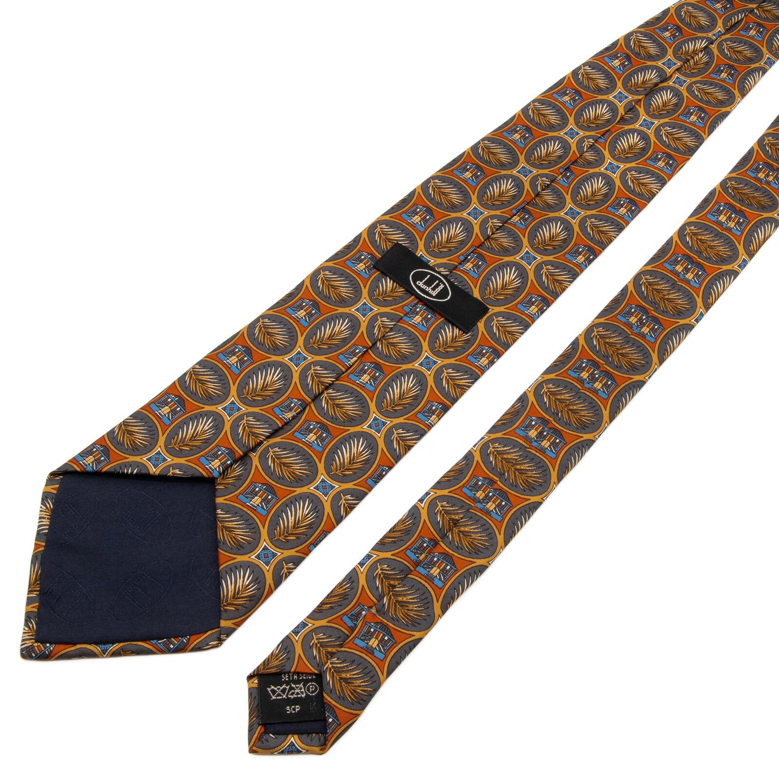 送料無料 ダンヒル ネクタイ 新品 シルク グレーブルー オレンジ 黄色 イエロー Y2K 00s 総柄 ヤシの葉 リーフ ブランド イタリア製 P353