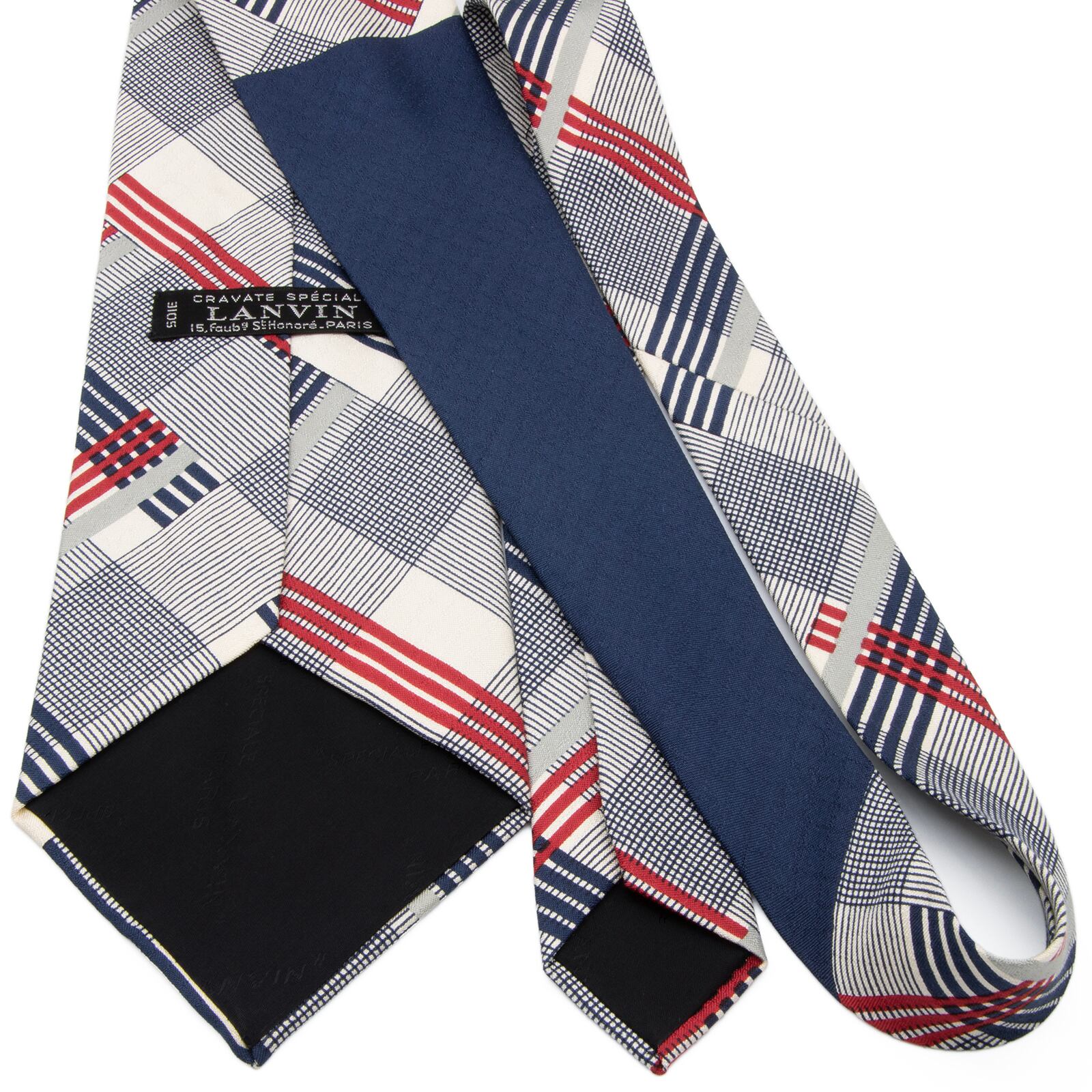 送料無料 ランバン ネクタイ 新品 シルク 白 ホワイト ネイビーブルー 赤 グレー ビジネス カジュアル チェック ブランド フランス製 P361