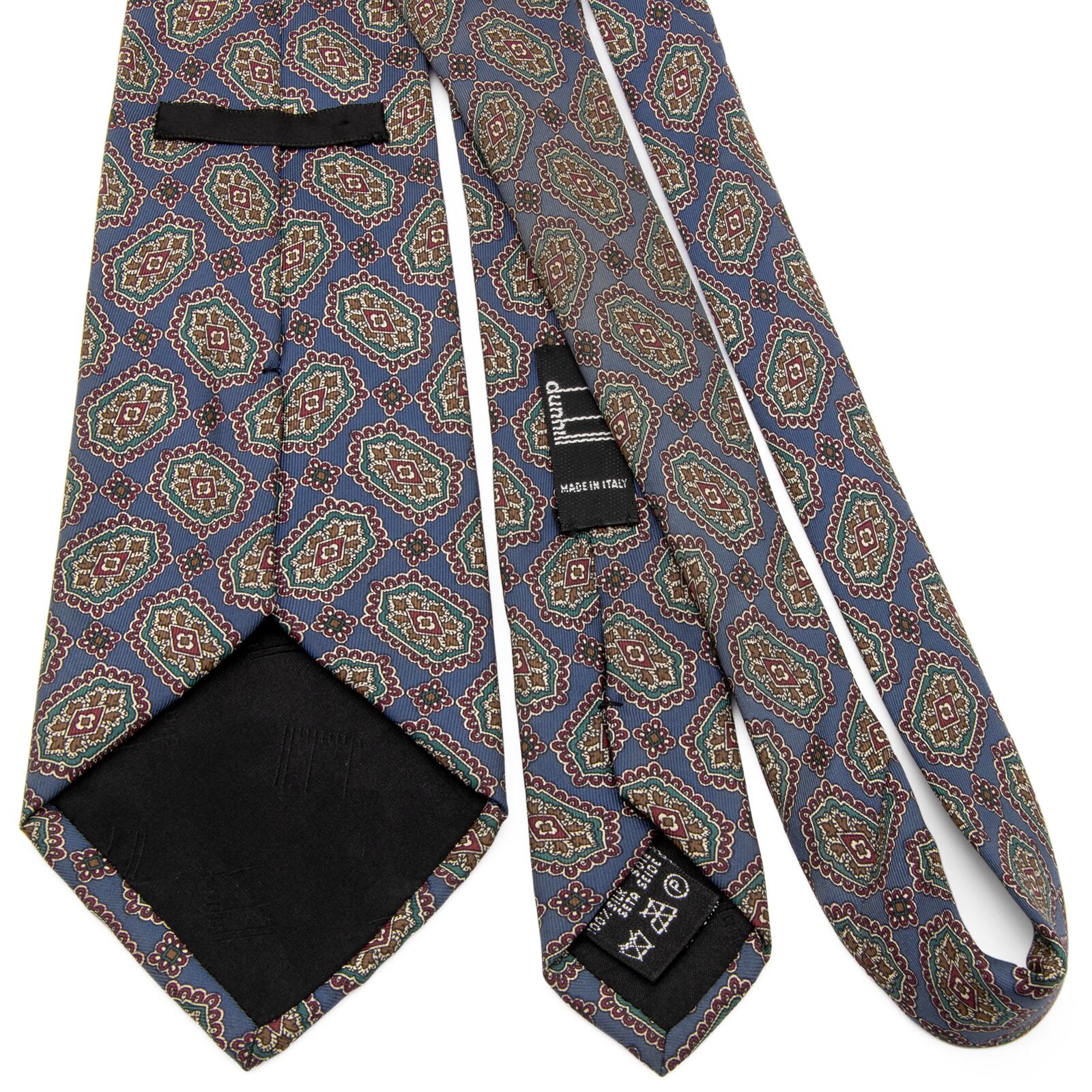 送料無料 ダンヒル ネクタイ レギュラータイ シルク 青 ブルー 赤 レッド 青緑色 Y2K 90s 00s ロゴ マーク ブランド イタリア製 綺麗 P478