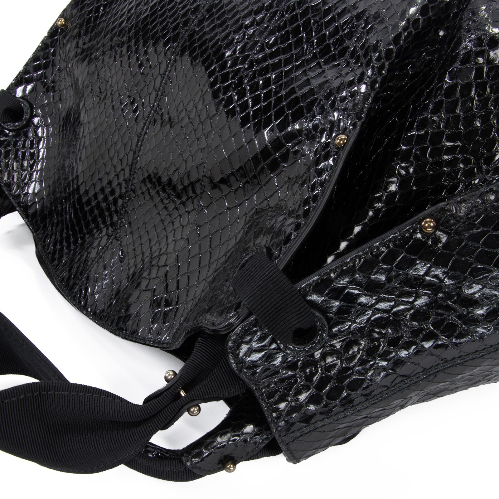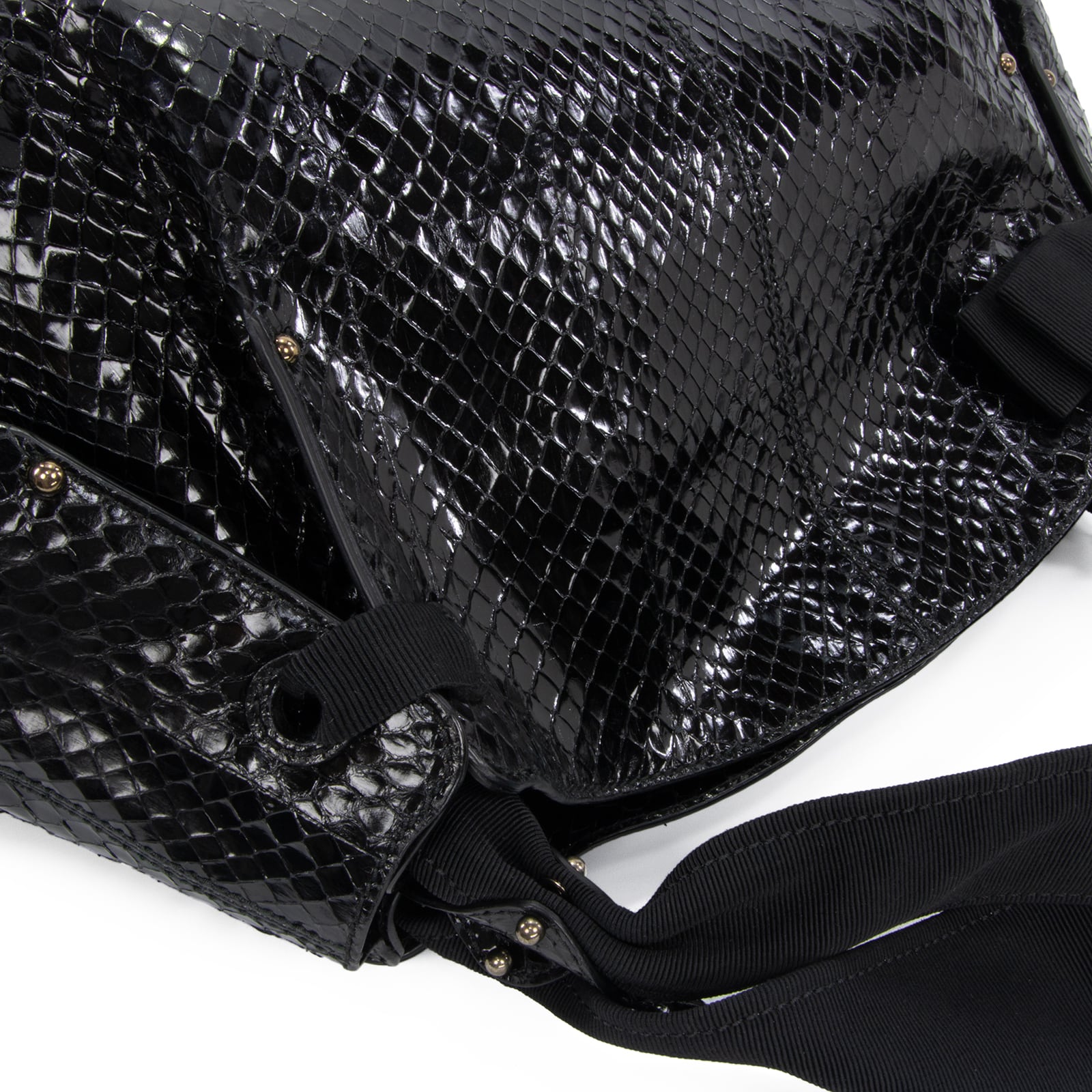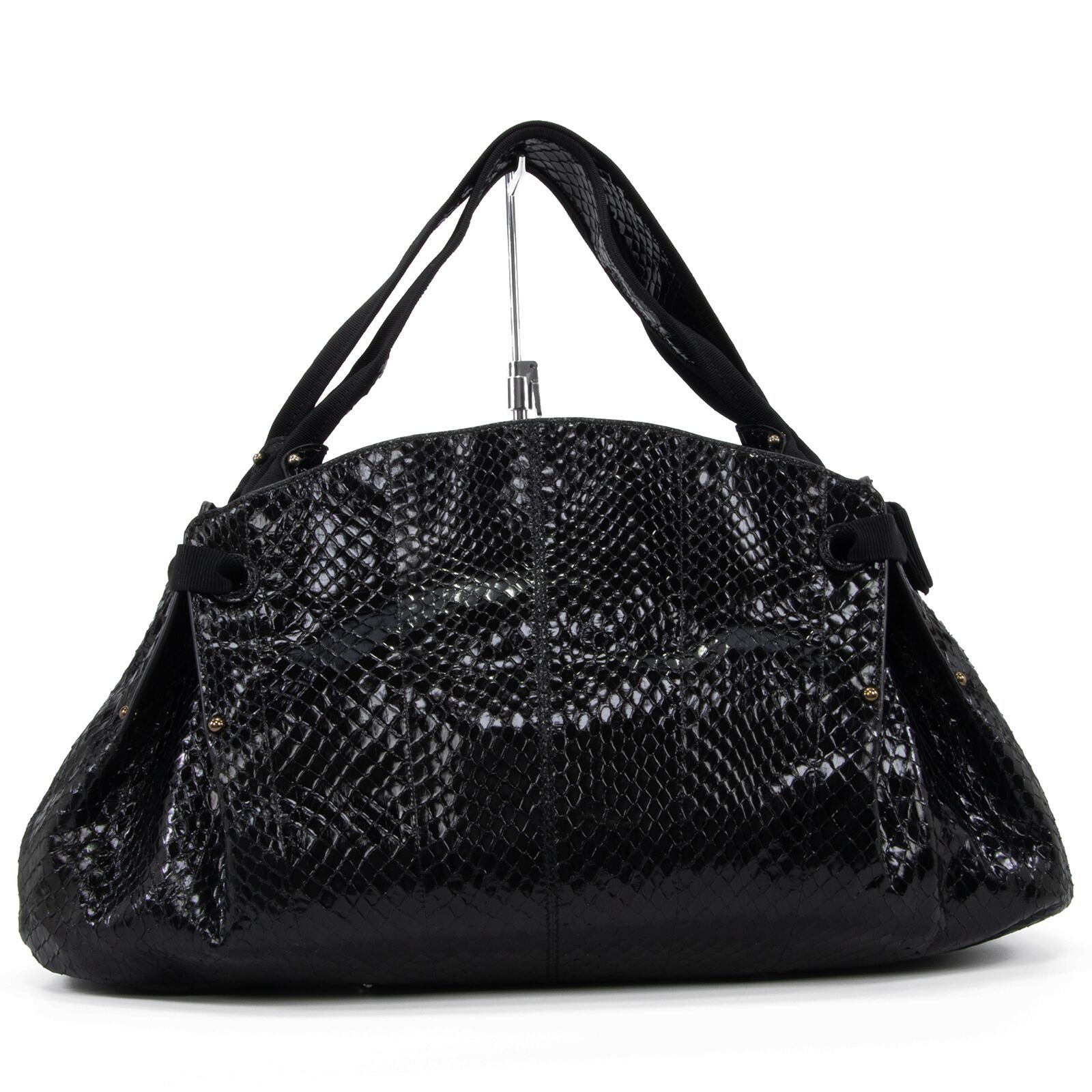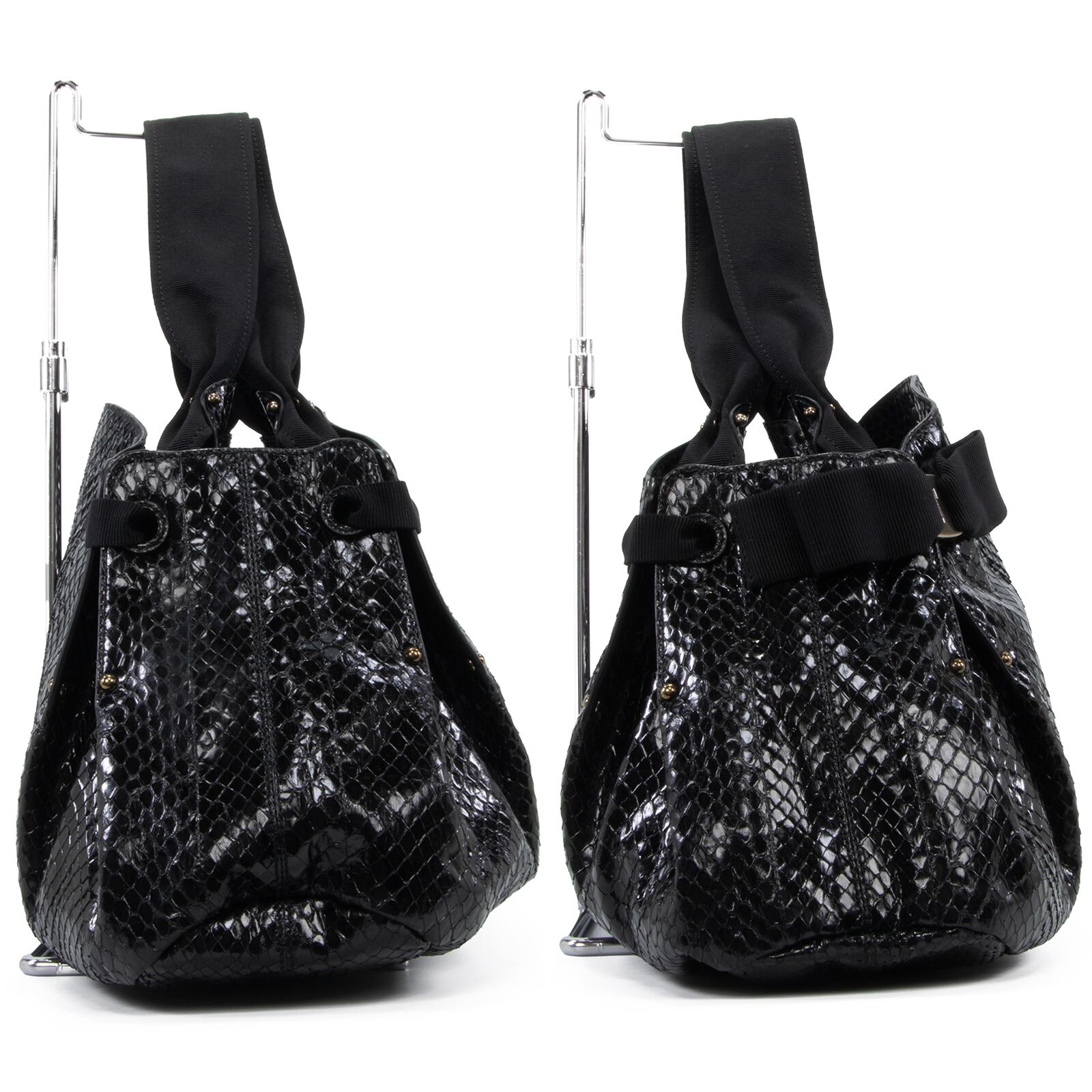 エキゾチックなパイソン素材に、ブランドのアイコンであるヴァラリボンをあしらった、絶妙なバランス感覚が光る逸品でございます。