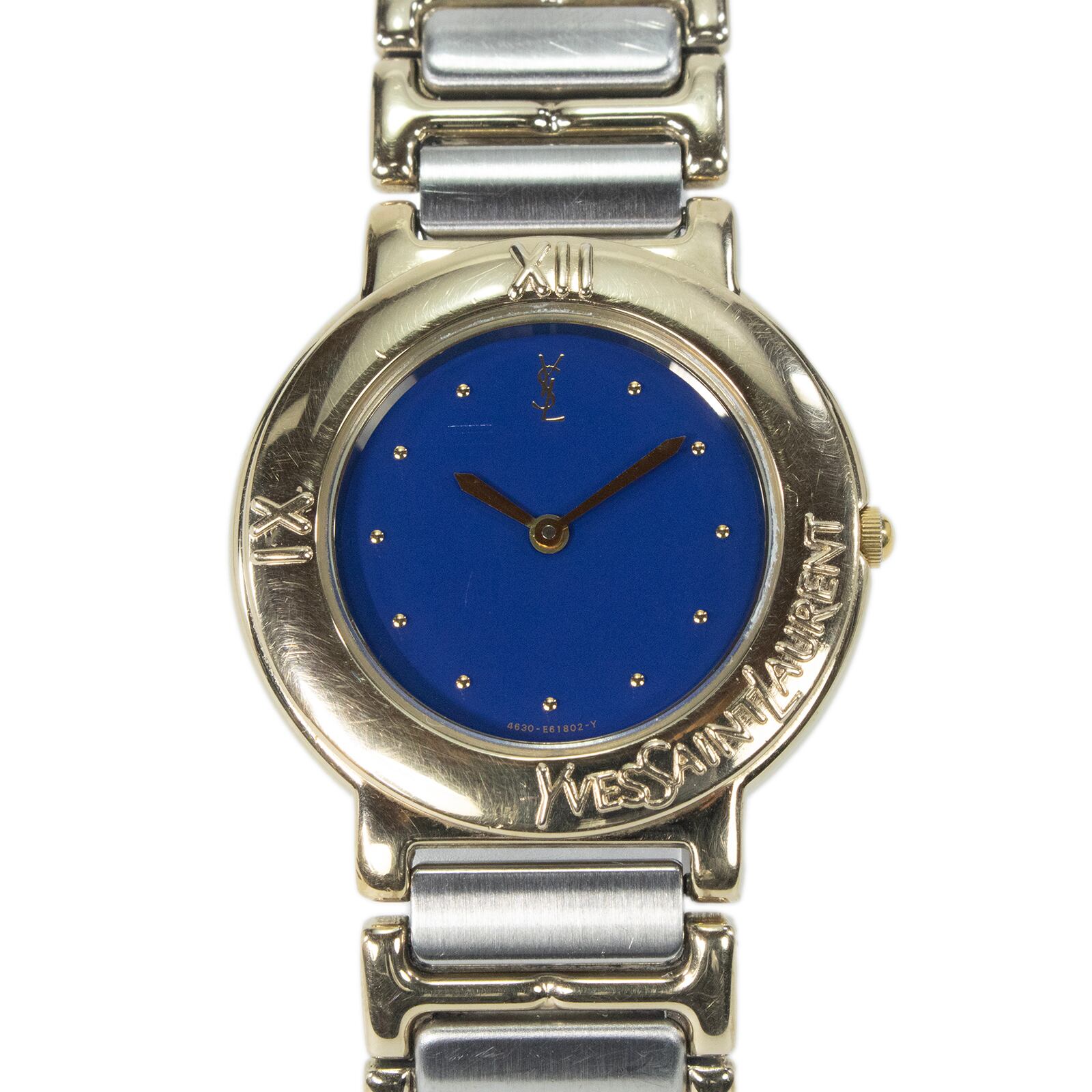送料無料 サンローラン 腕時計 レディース 4620-E60957 青 シルバー ゴールド コンビカラー ヴィンテージ シンプル Y2K 90s YSLロゴ X344