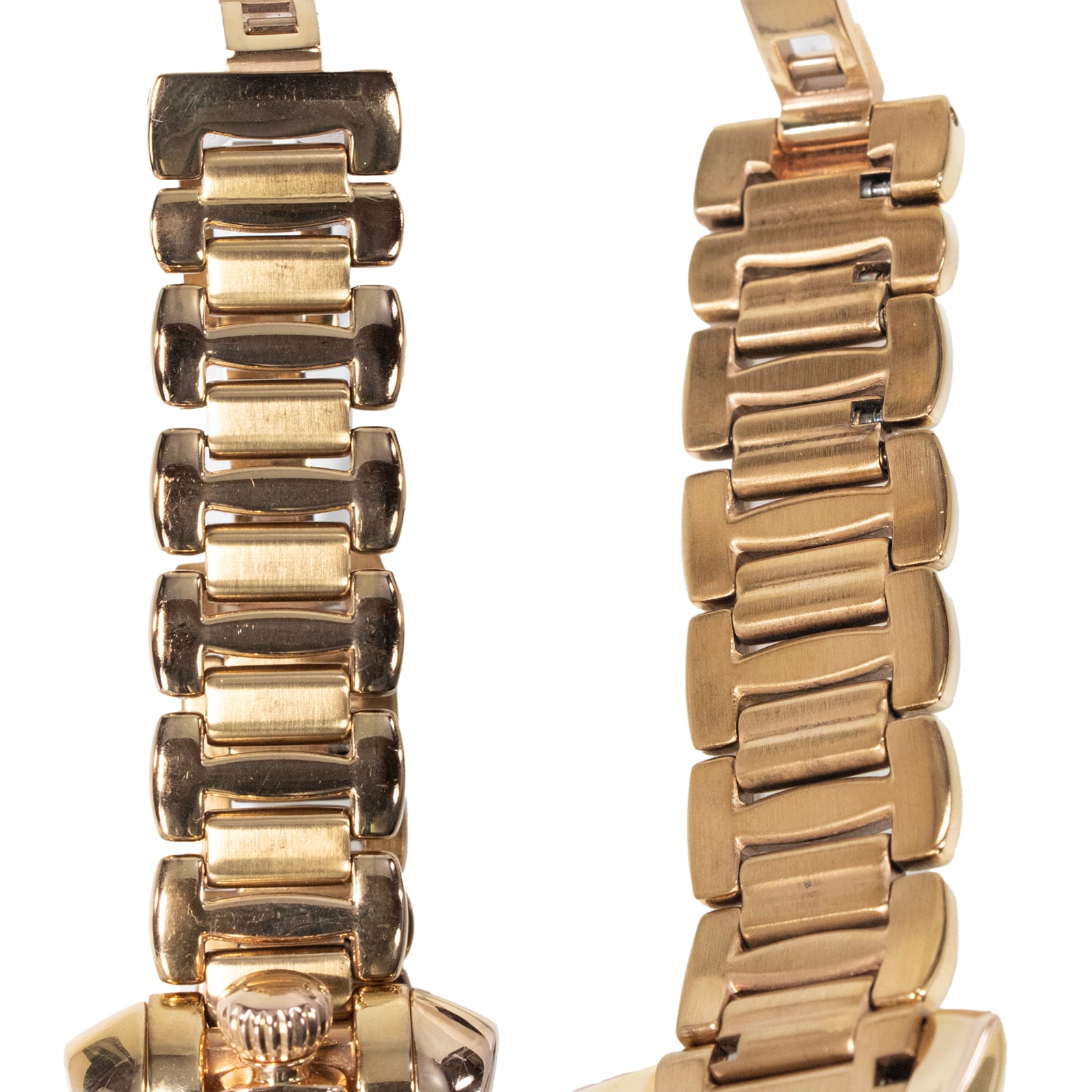 ケースからブレスレット、文字盤に至るまでピンクゴールドで統一された、ラグジュアリーなデザインが大変魅力的でございます。