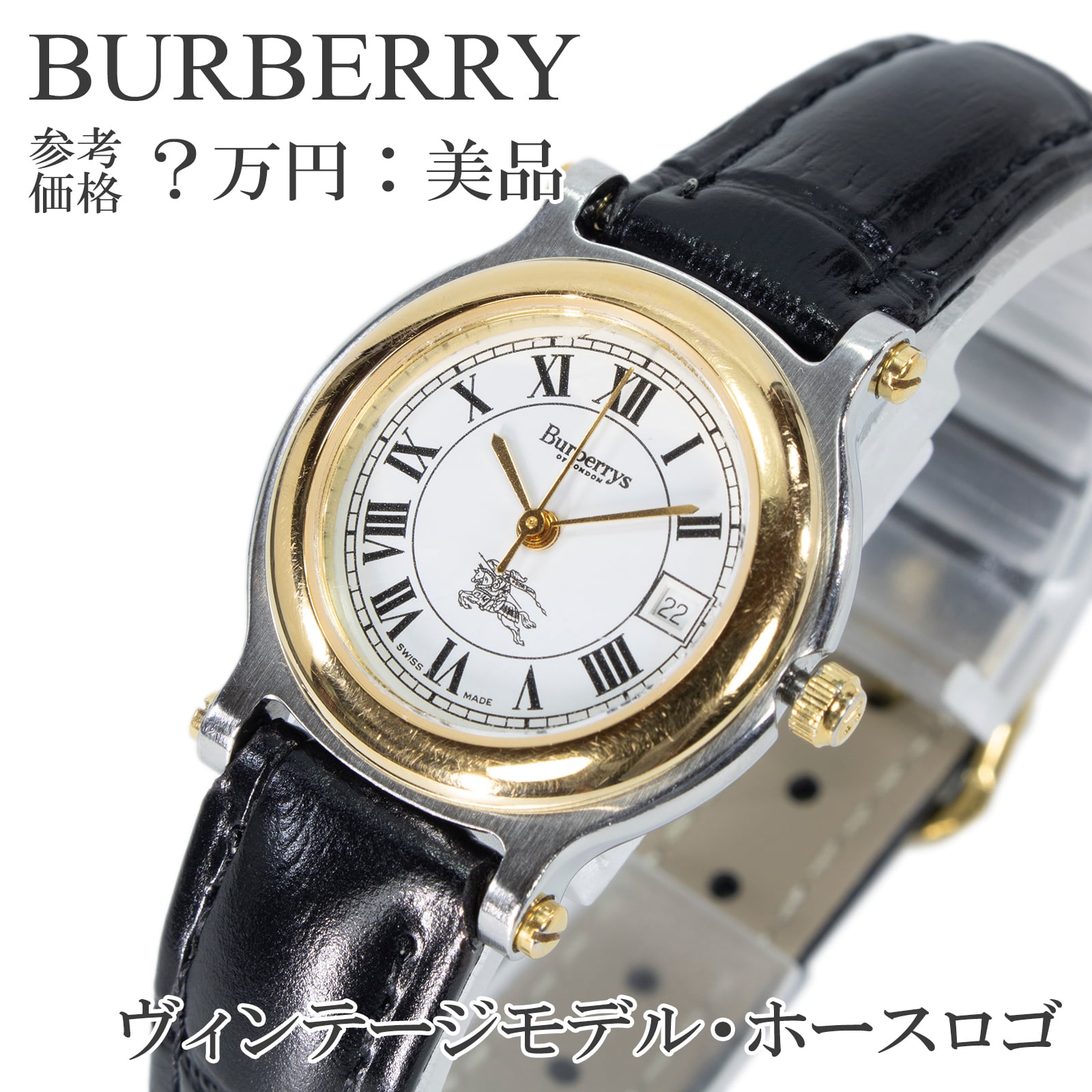 送料無料 オールドバーバリー 腕時計 レディース バーバリーズ 8100 白 黒 ゴールド ヴィンテージ Y2K 90s ホースロゴ マーク 綺麗 X346