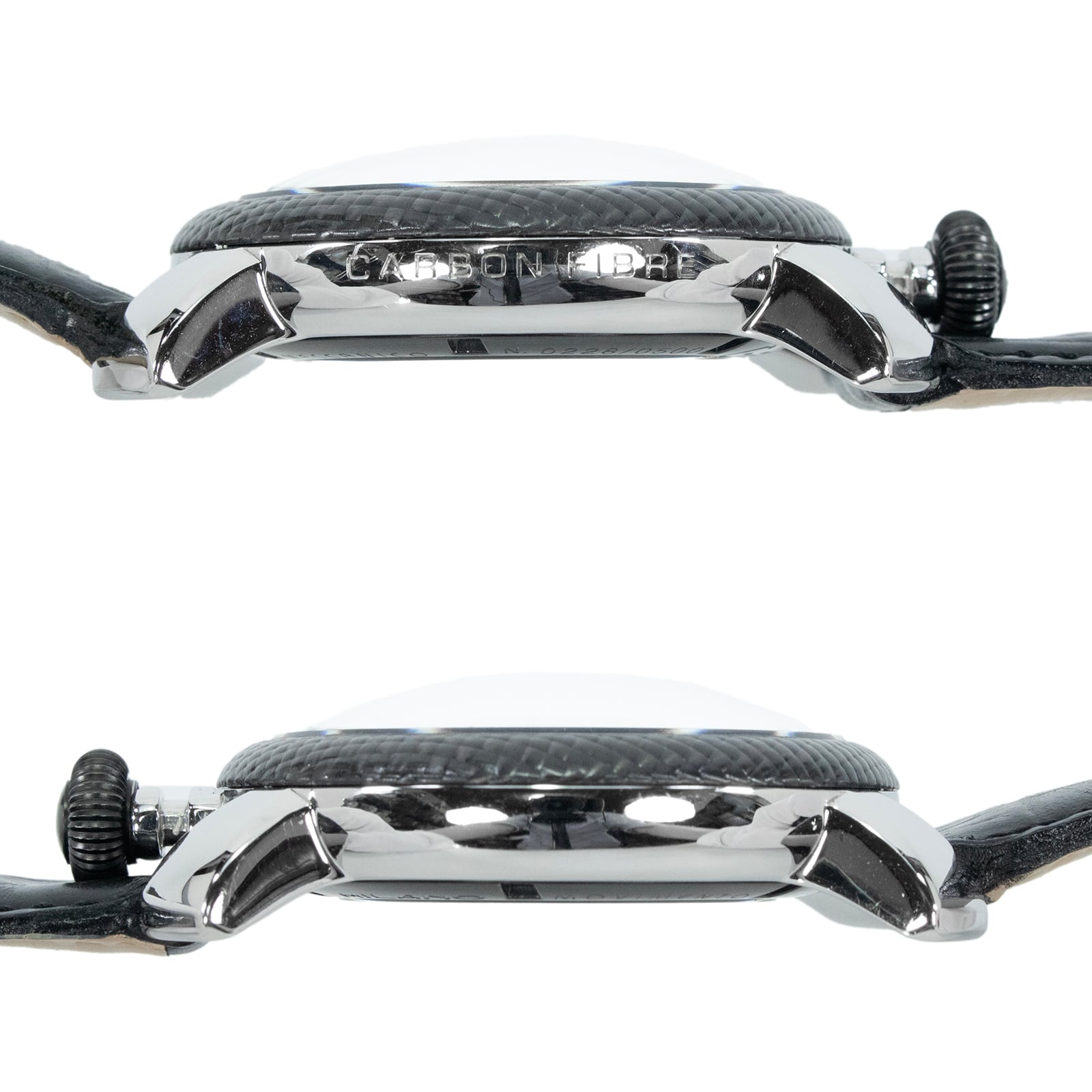 ベゼルにはカーボンファイバーが採用されており、スポーティーで現代的な雰囲気を加えております。