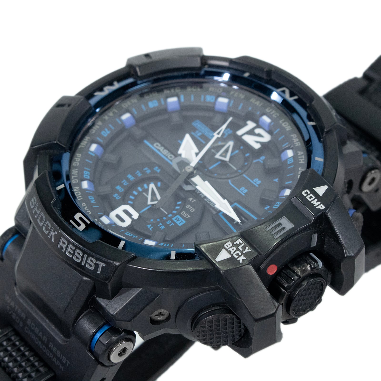 こちらは大空を駆るパイロットの計器を腕元で再現した、カシオの腕時計でございます。