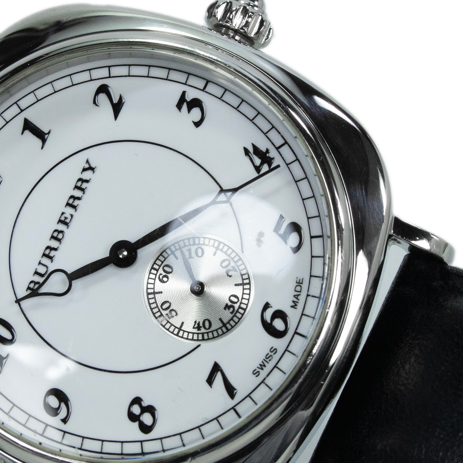 送料無料 バーバリー 腕時計 メンズ BU1700 白 ホワイト 黒 スクエア型 シンプル ロゴ スモセコ 革ベルト ビジネス 珍しい レアモデル Q163