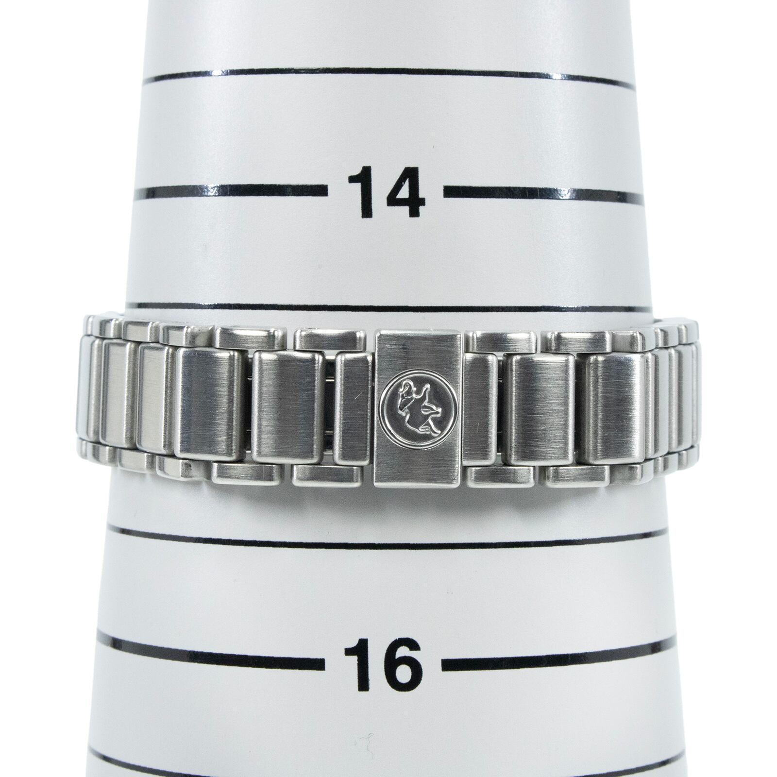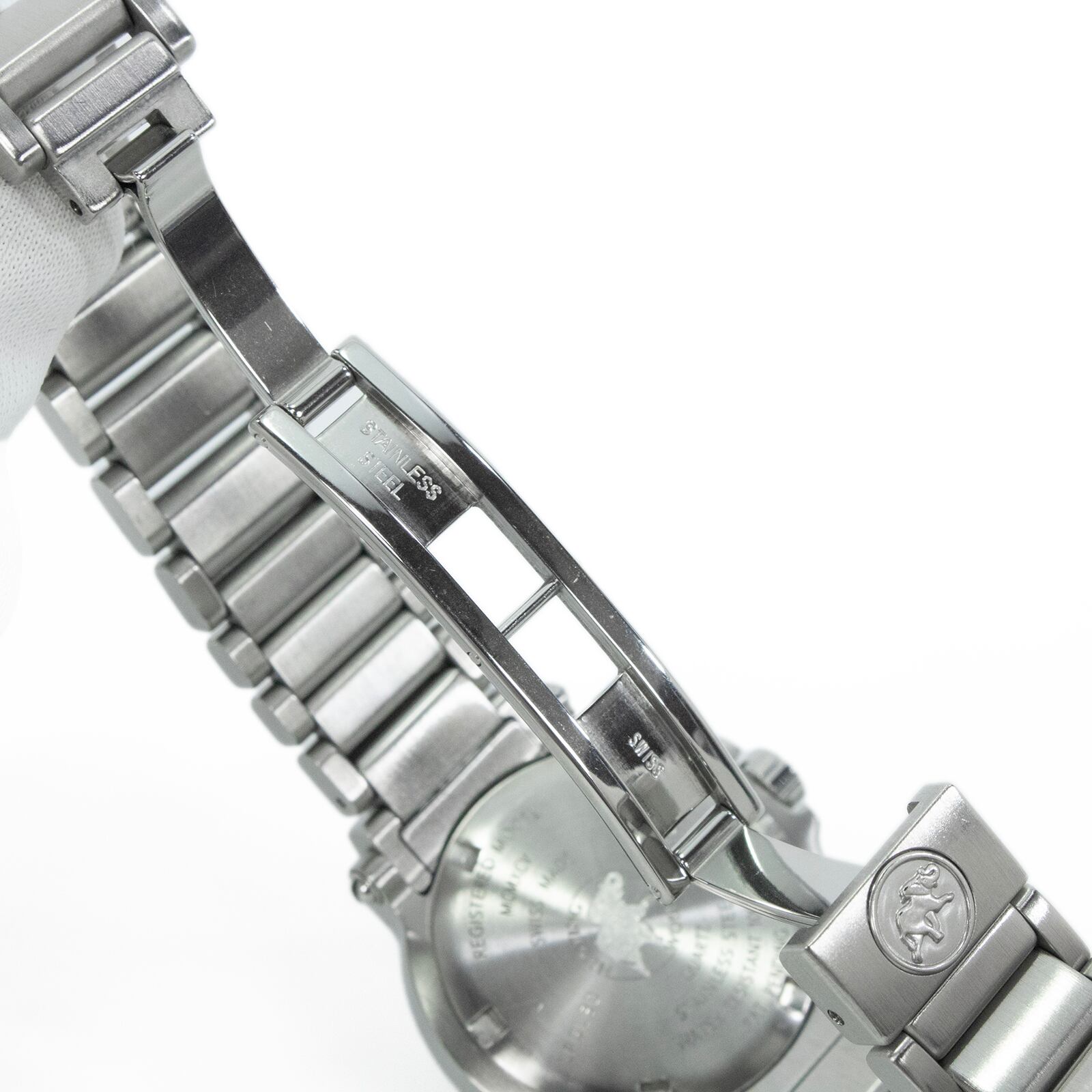100m防水機能と、防水性を高めるねじ込み式リューズを備えた、信頼性の高いモデルでございます。
