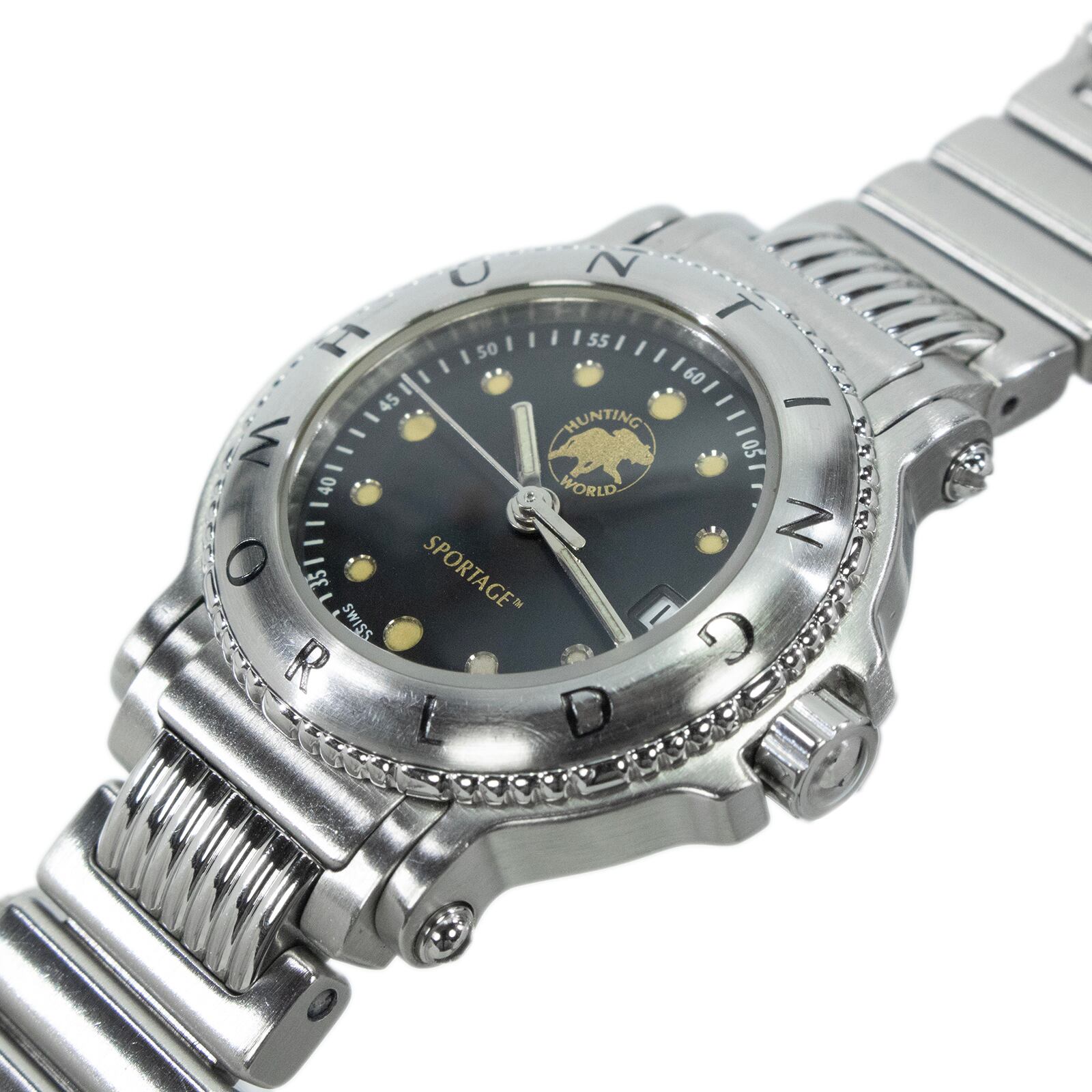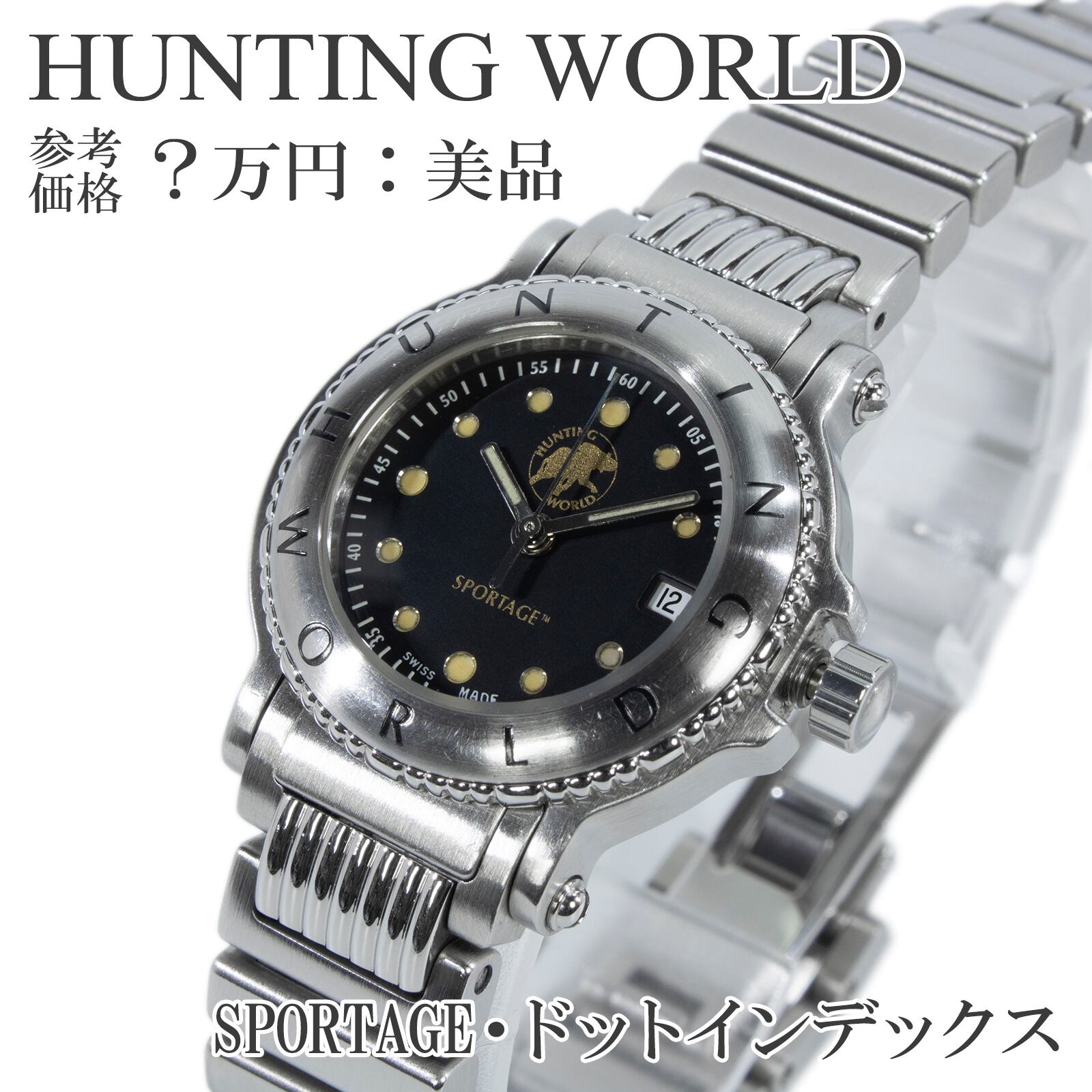 送料無料 ハンティングワールド 腕時計 メンズ レディース SPORTAGE 黒 シルバー 小型 ロゴ マーク メタルブレス ブランド スイス製 X354