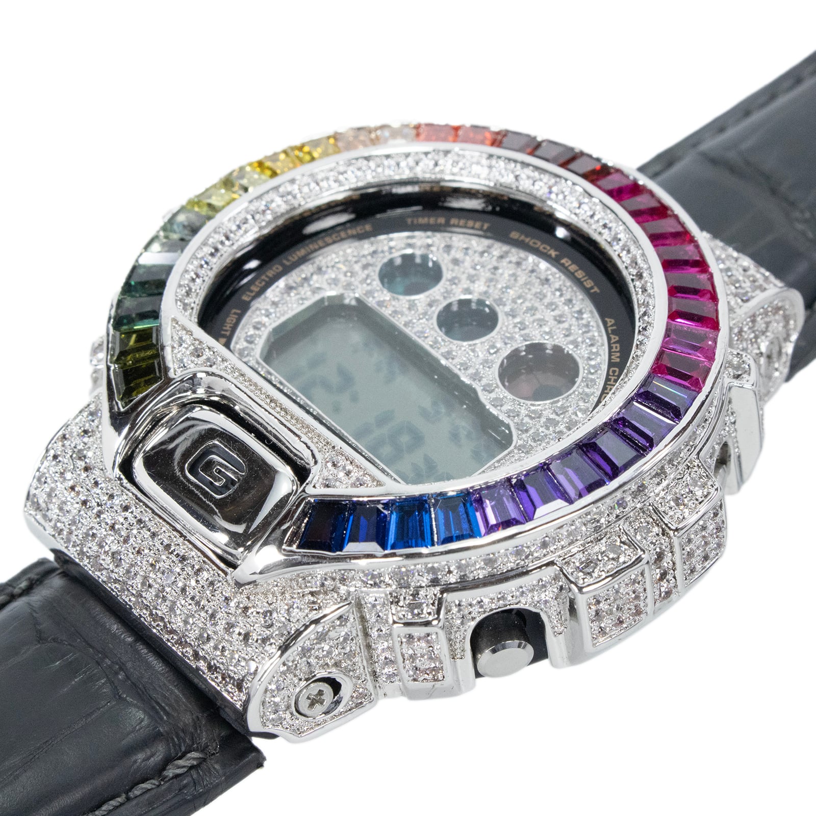 送料無料 カシオ 腕時計 メンズ G-SHOCK Gショック クラウンクラウンカスタム DW-6900 アリゲーター シルバー グレー 派手 Y2K ロゴ X358