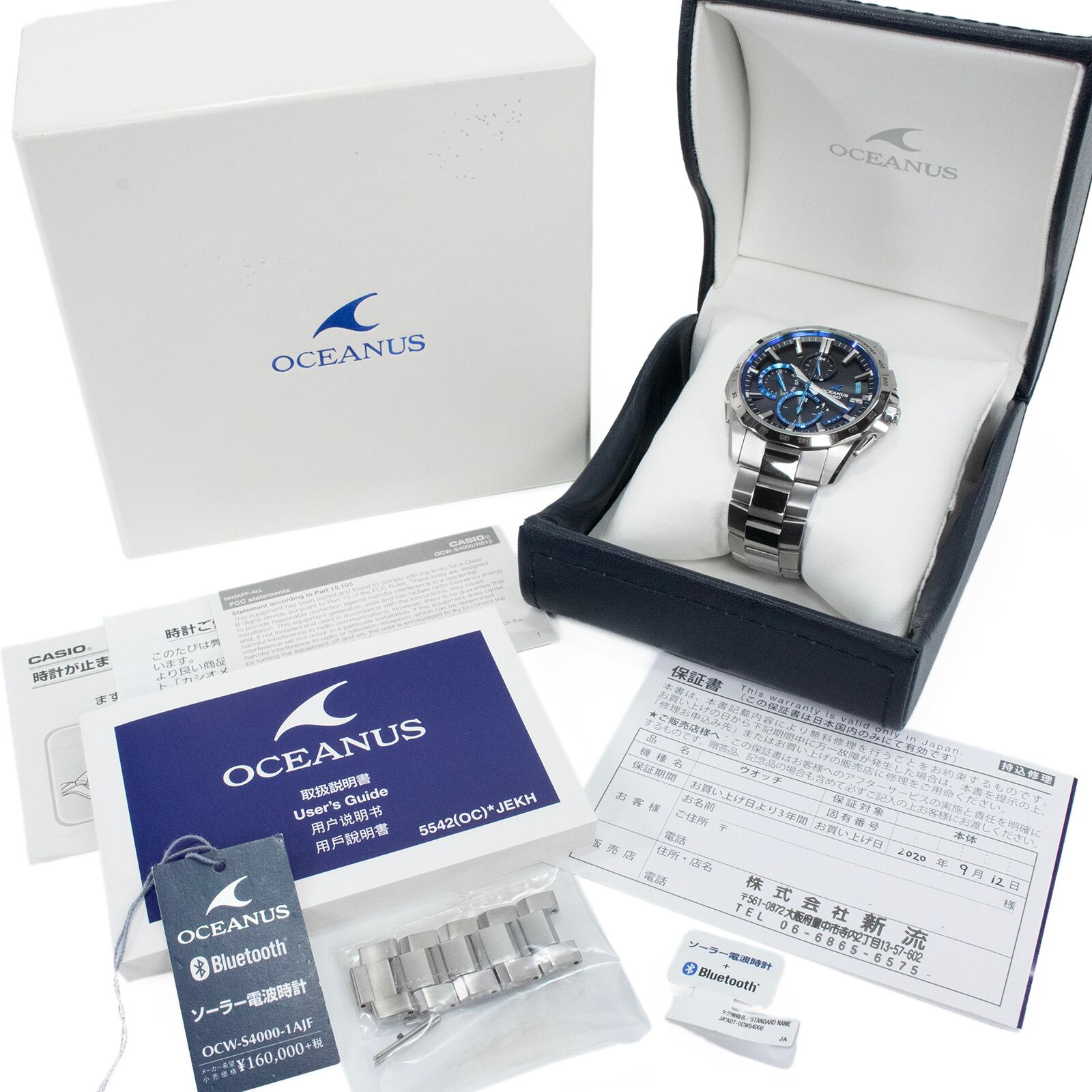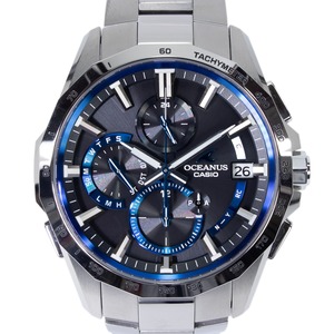 送料無料 カシオ 腕時計 ソーラー電波 新品同様 メンズ オシアナス OCW-S4000-1AJF ネイビーブルー 多機能 ロゴ マーク ブランド 綺麗 X360