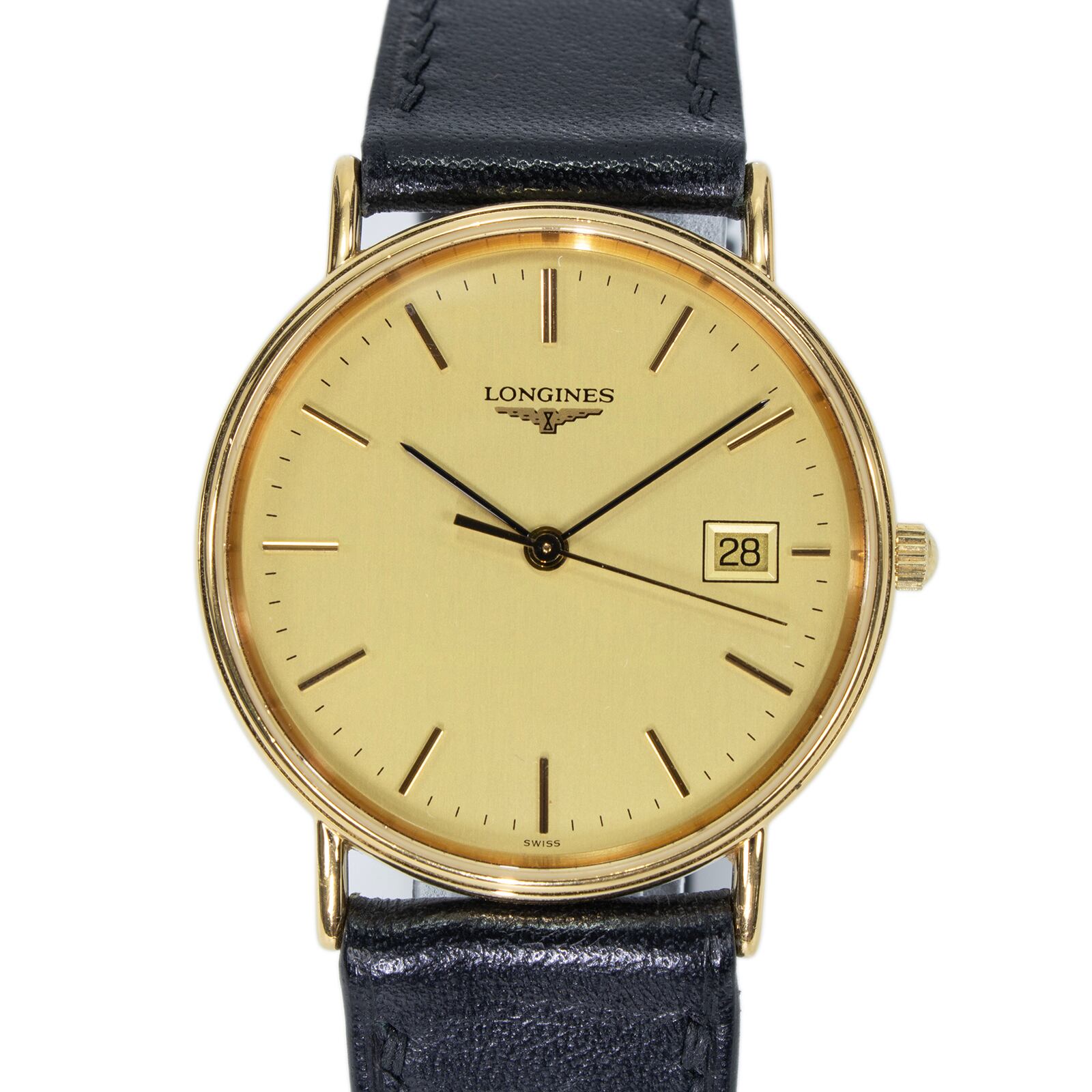 送料無料 ロンジン 腕時計 メンズ グランドクラシック L4.636.2 ゴールド 黒 ヴィンテージ シンプル ロゴ マーク 薄い スリム 綺麗 X362