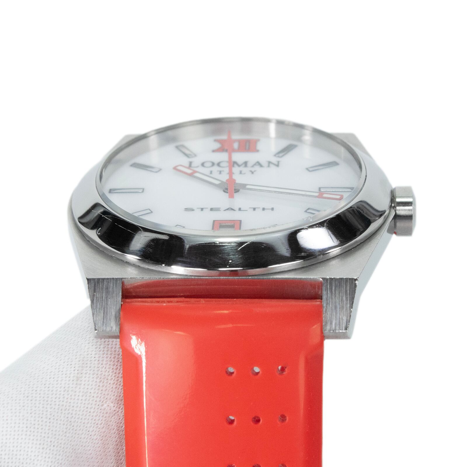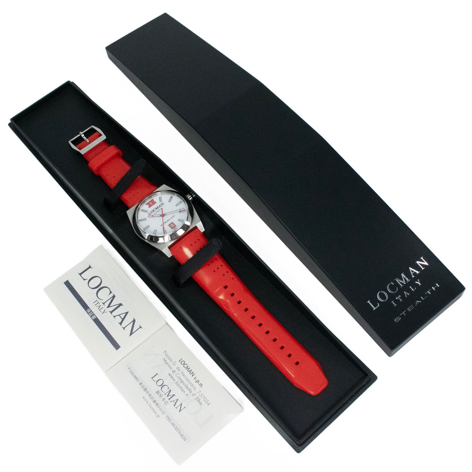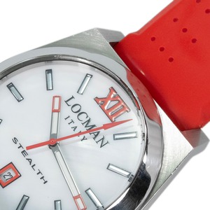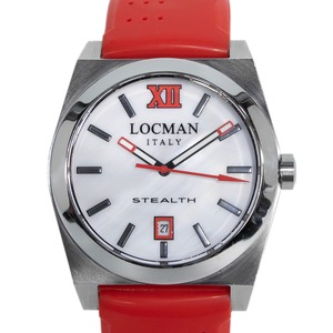 送料無料 ロックマン 腕時計 メンズ レディース ステルス 203 白 ホワイト 赤 レッド トノー型 シェル盤 白蝶貝 ロゴ ブランド 珍しい Q168