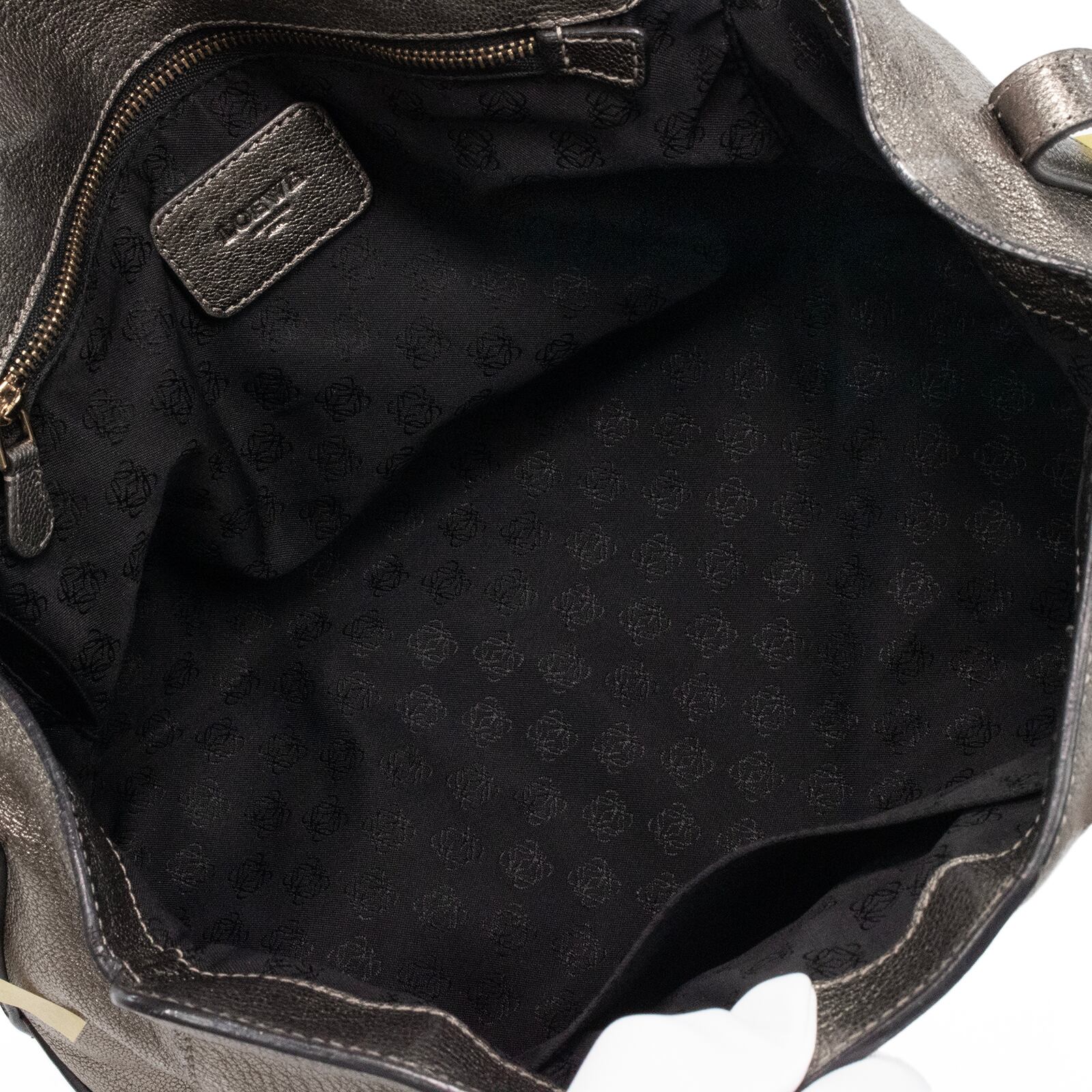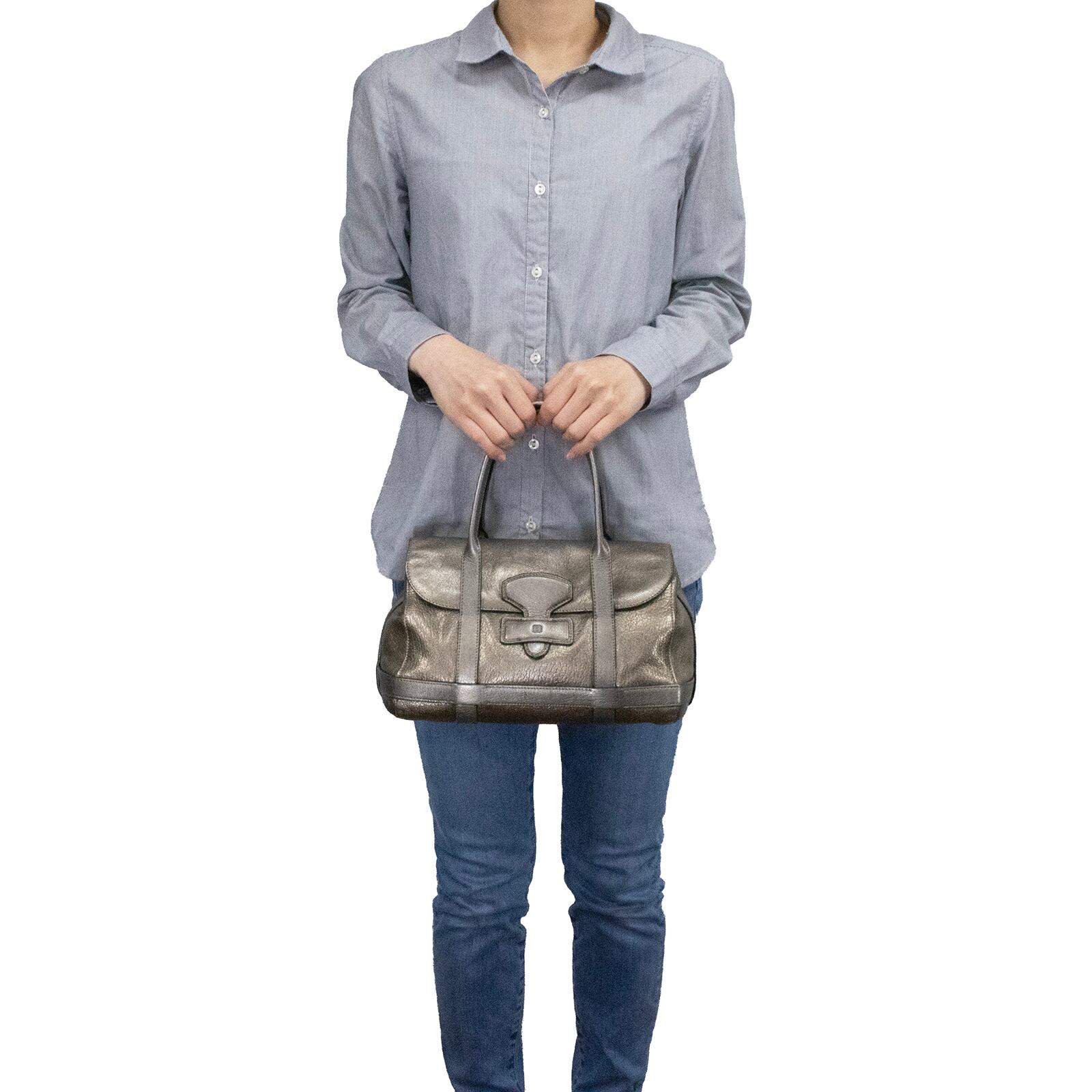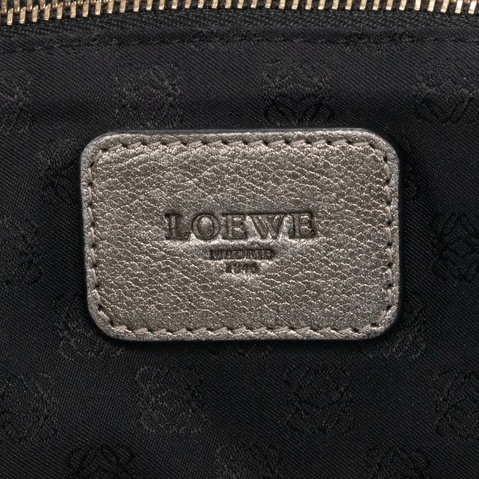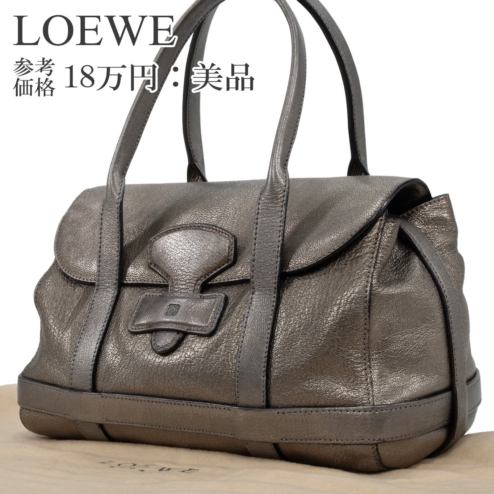 本物 送料無料 ロエベ ハンドバッグ レディース アナグラム 銀色 シルバー 珍しい 自立可能 ロゴ マーク 光沢 本革 レザー 鞄 バック E423