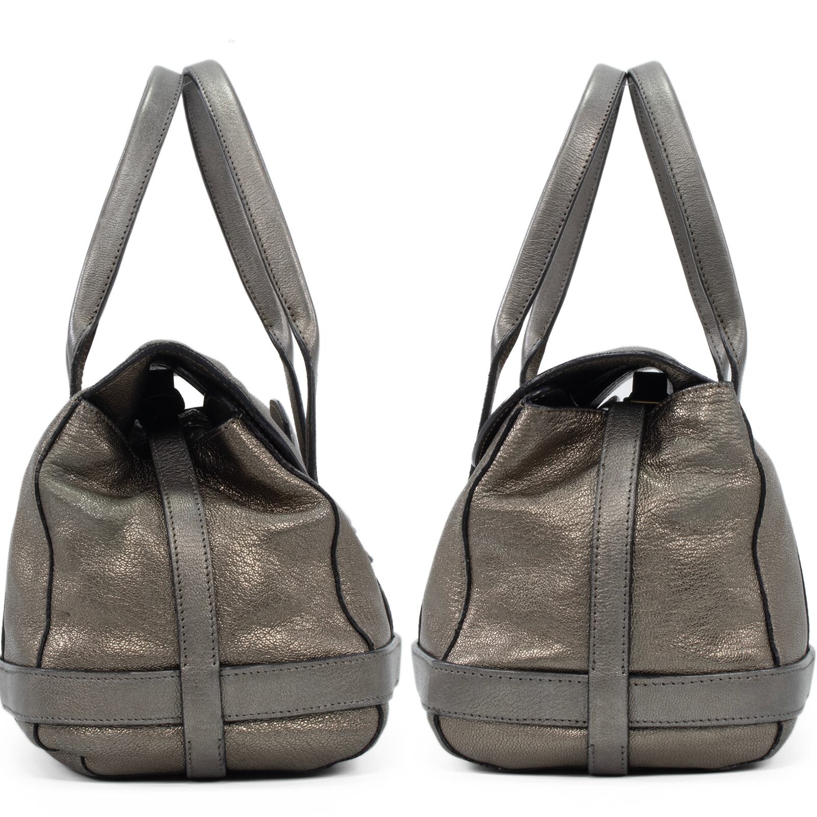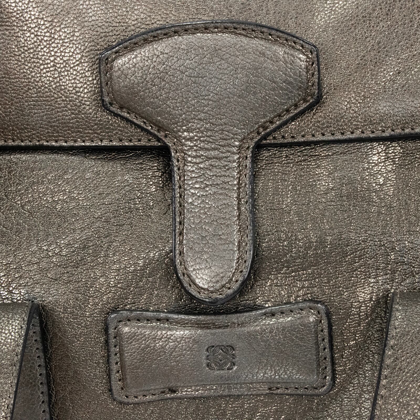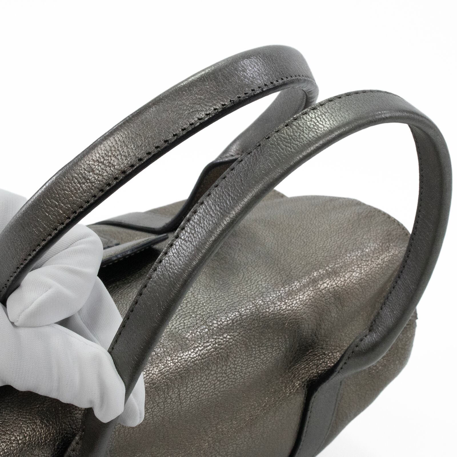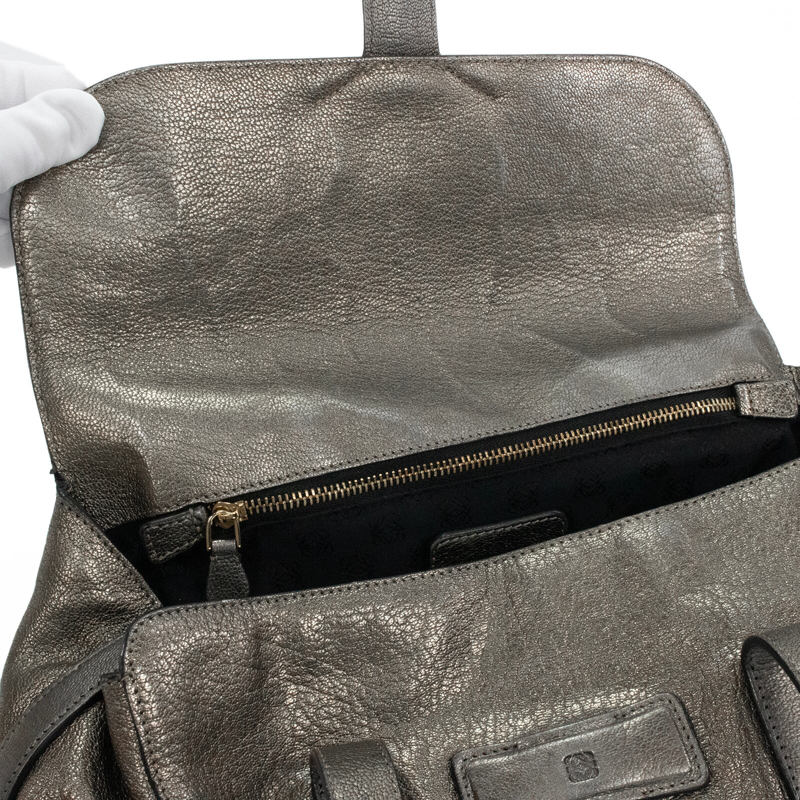 本物 送料無料 ロエベ ハンドバッグ レディース アナグラム 銀色 シルバー 珍しい 自立可能 ロゴ マーク 光沢 本革 レザー 鞄 バック E423
