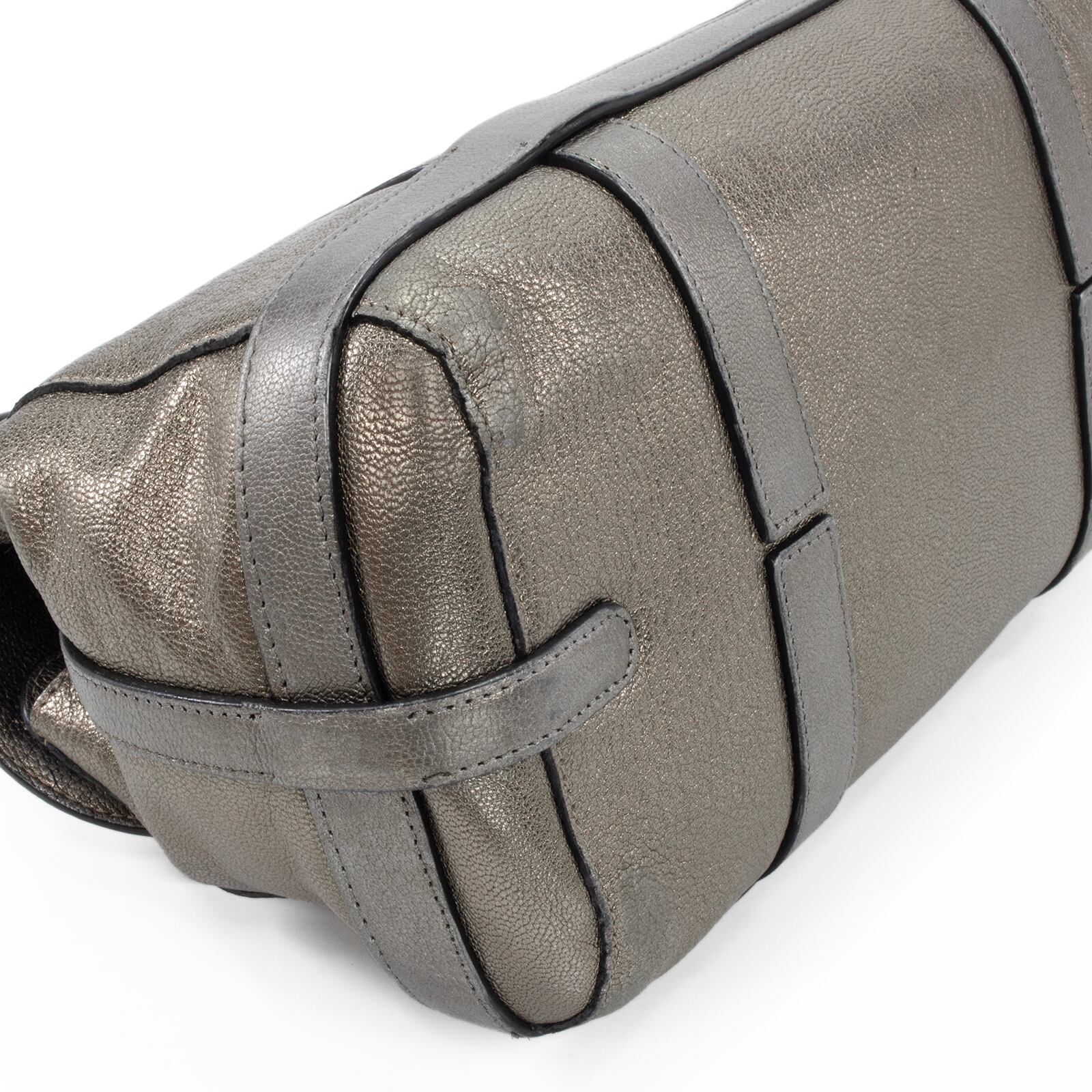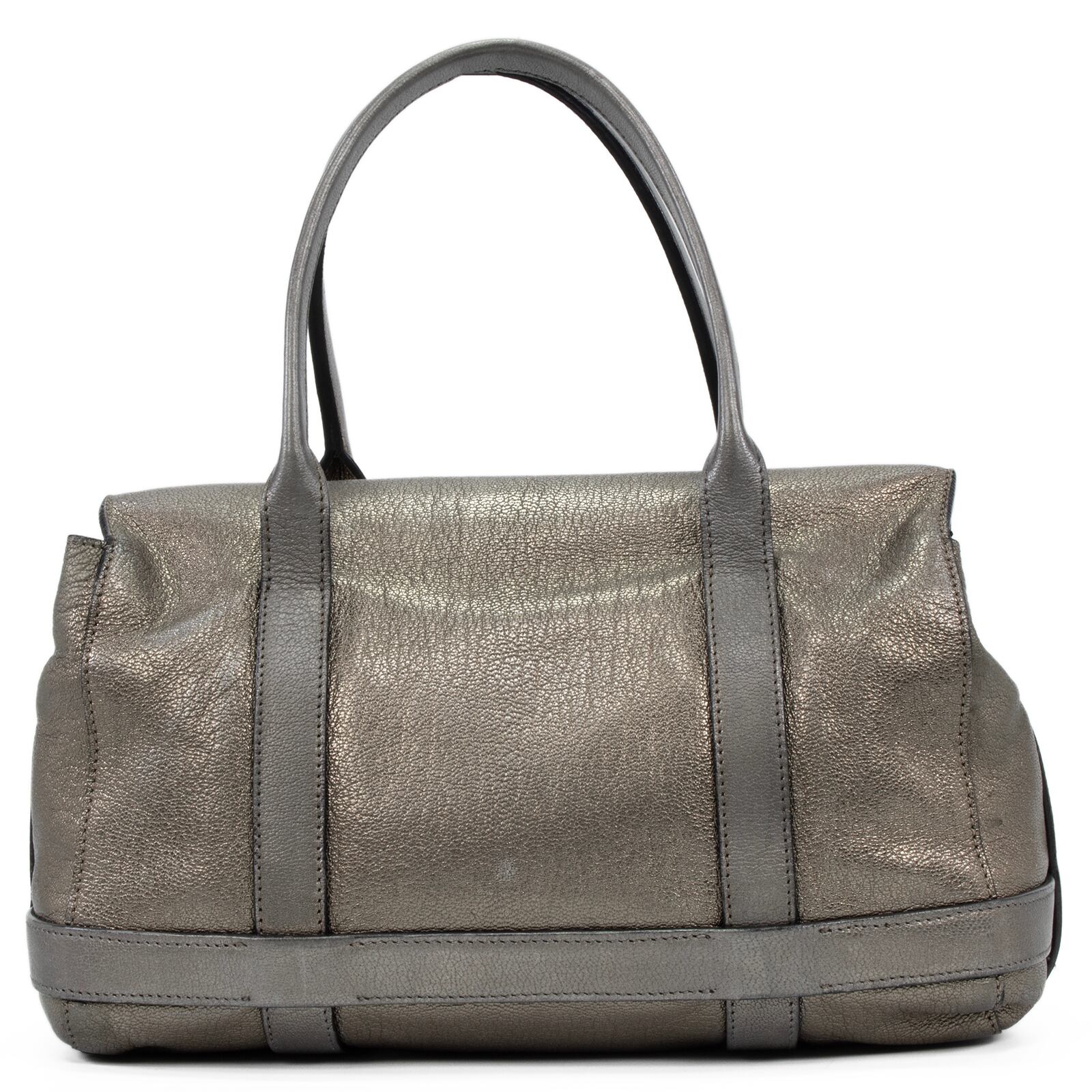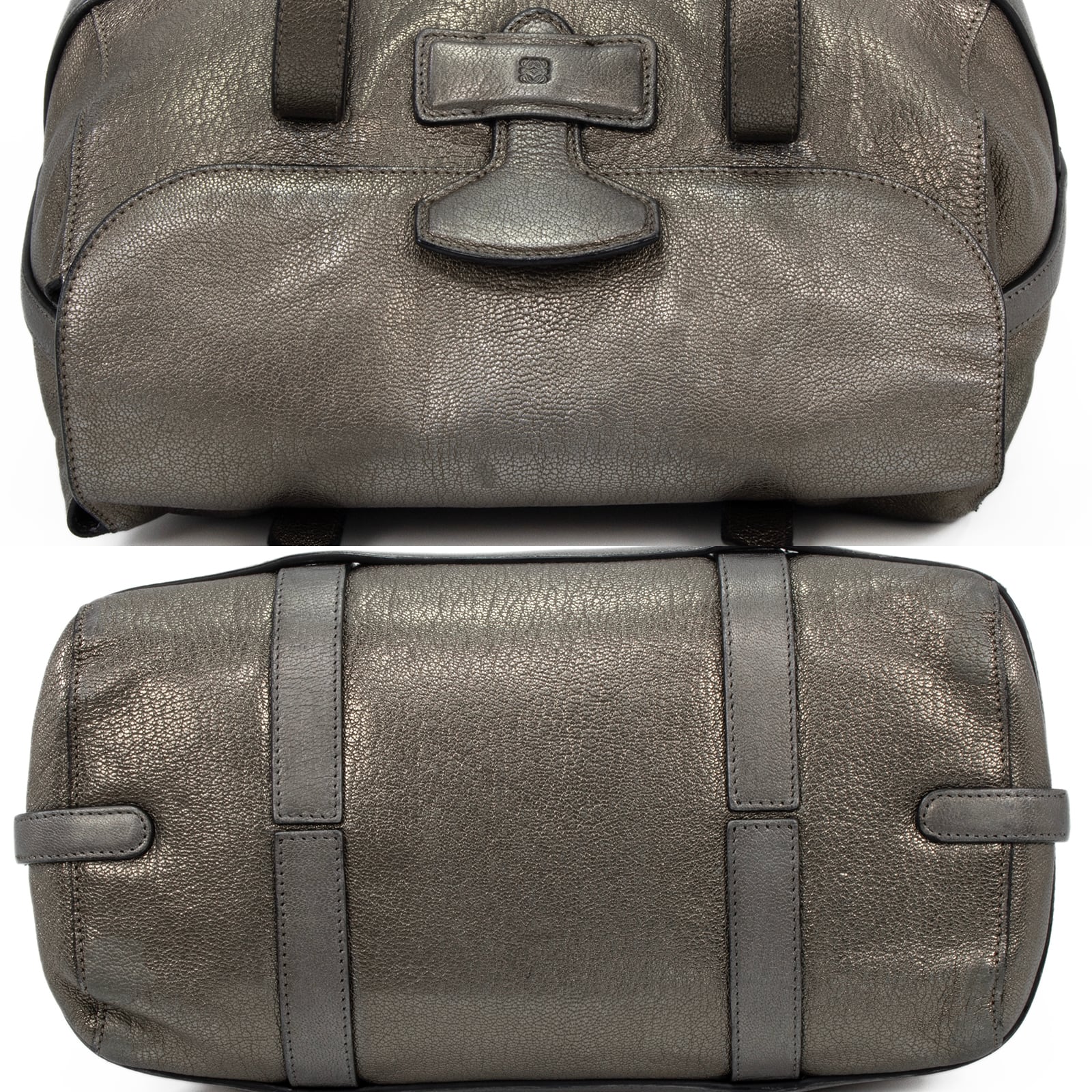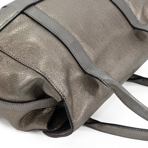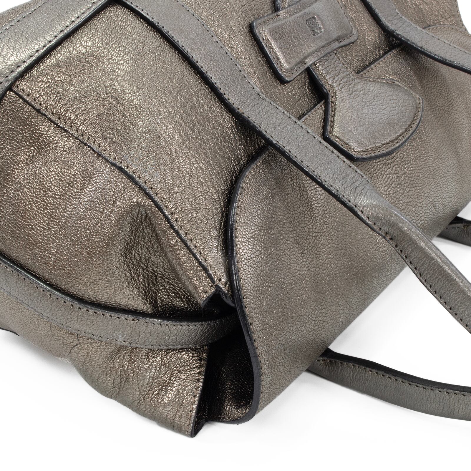 本物 送料無料 ロエベ ハンドバッグ レディース アナグラム 銀色 シルバー 珍しい 自立可能 ロゴ マーク 光沢 本革 レザー 鞄 バック E423