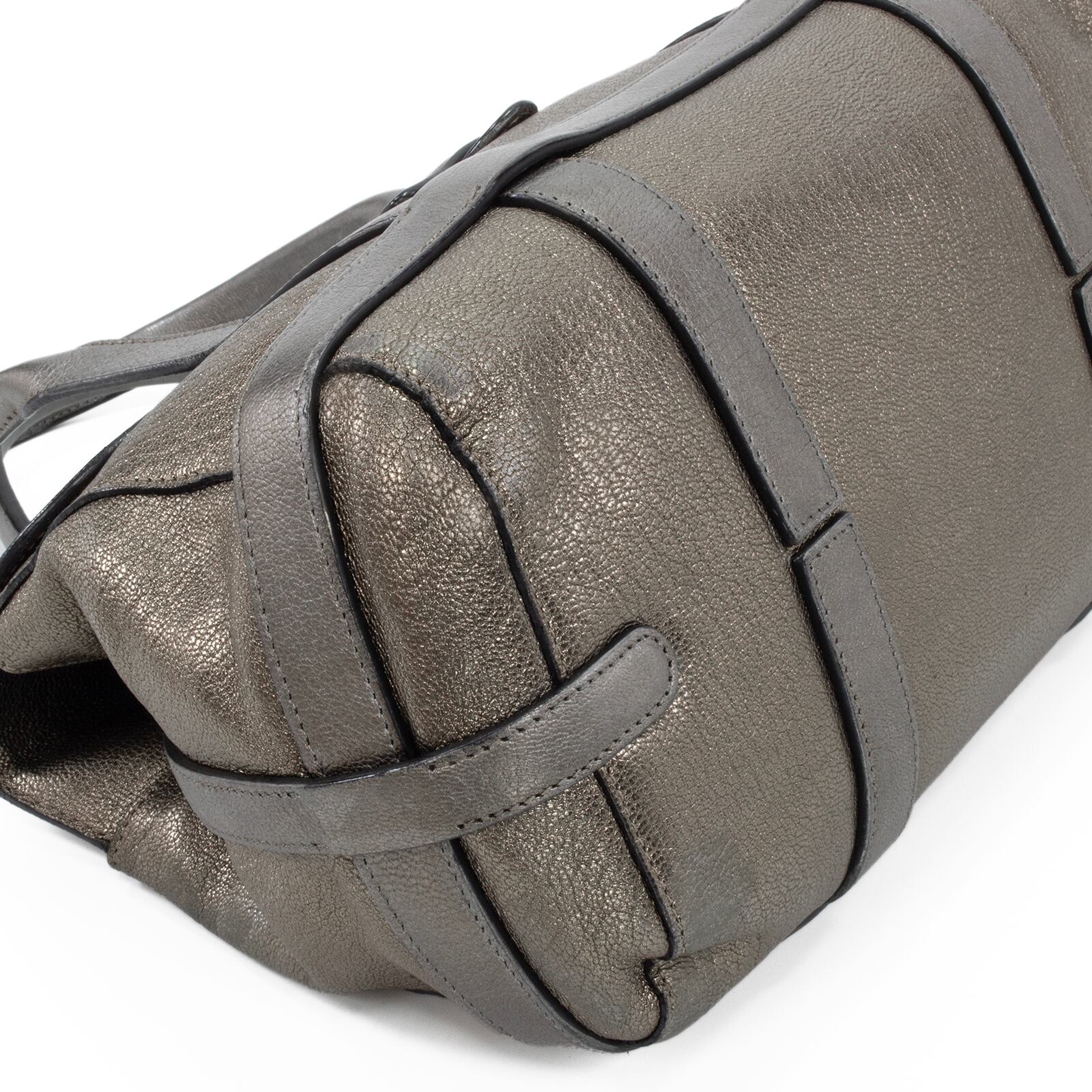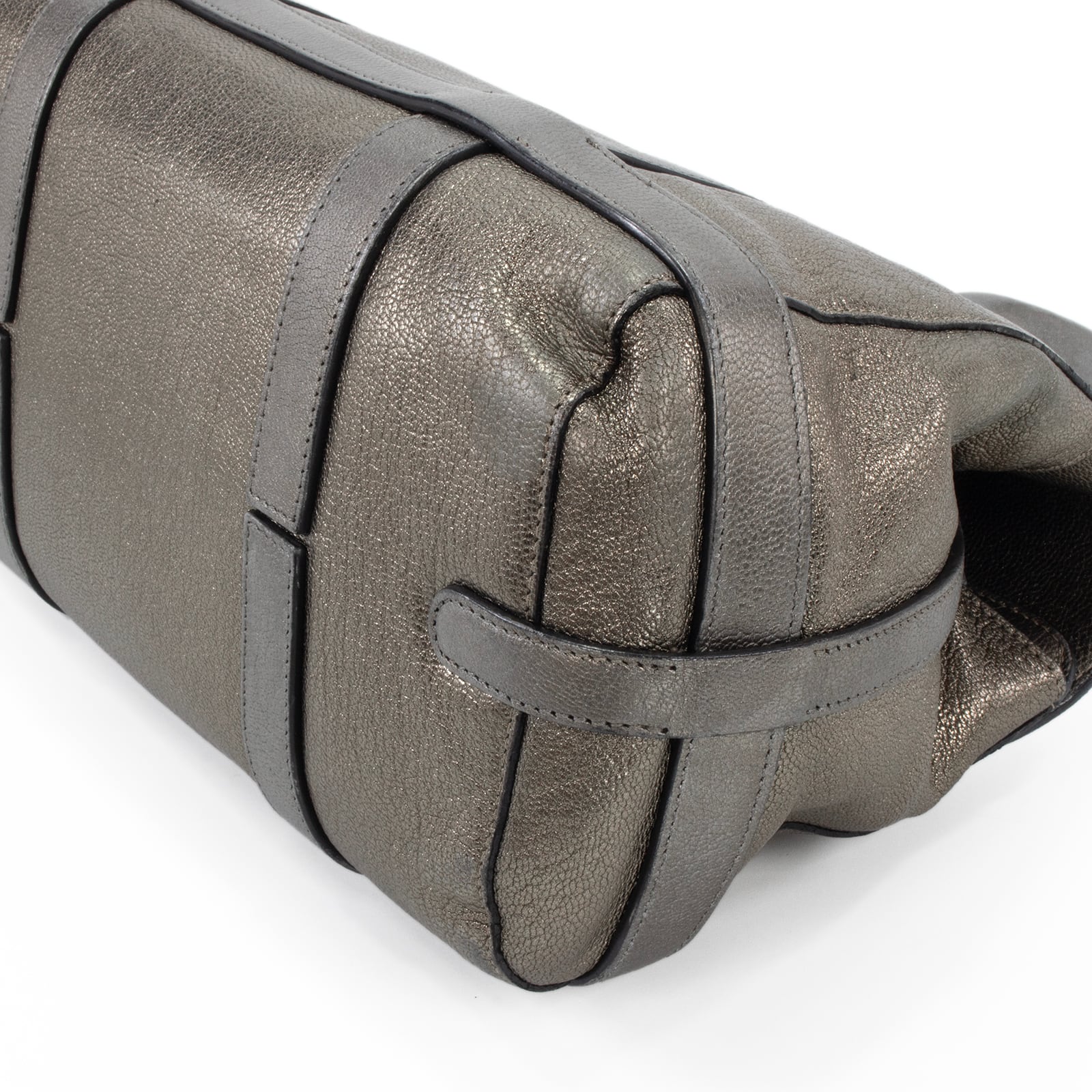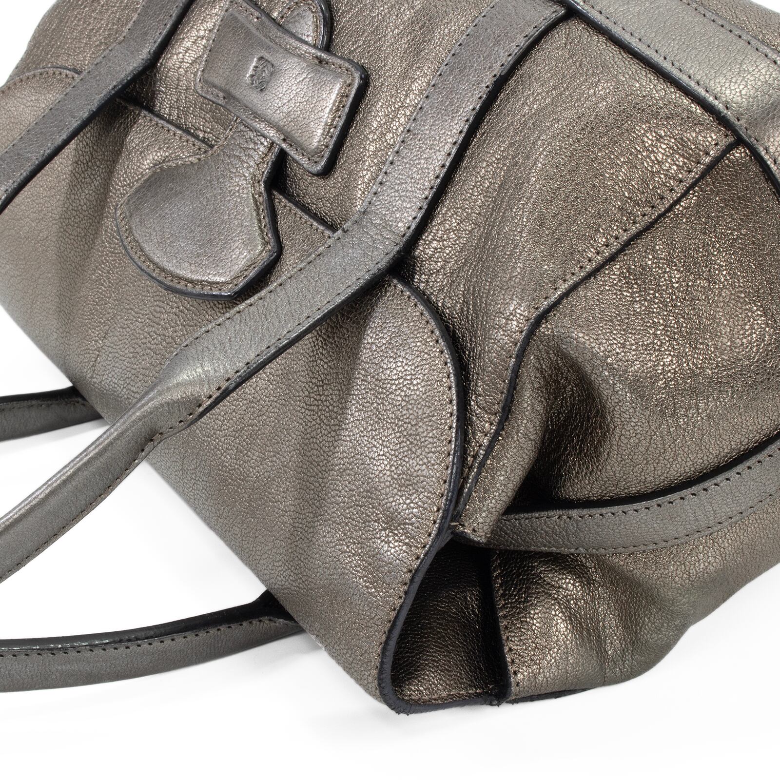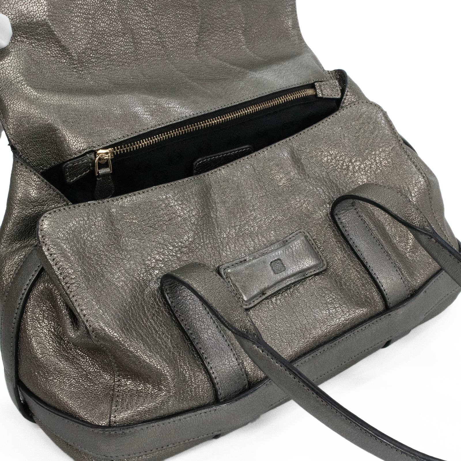 本物 送料無料 ロエベ ハンドバッグ レディース アナグラム 銀色 シルバー 珍しい 自立可能 ロゴ マーク 光沢 本革 レザー 鞄 バック E423