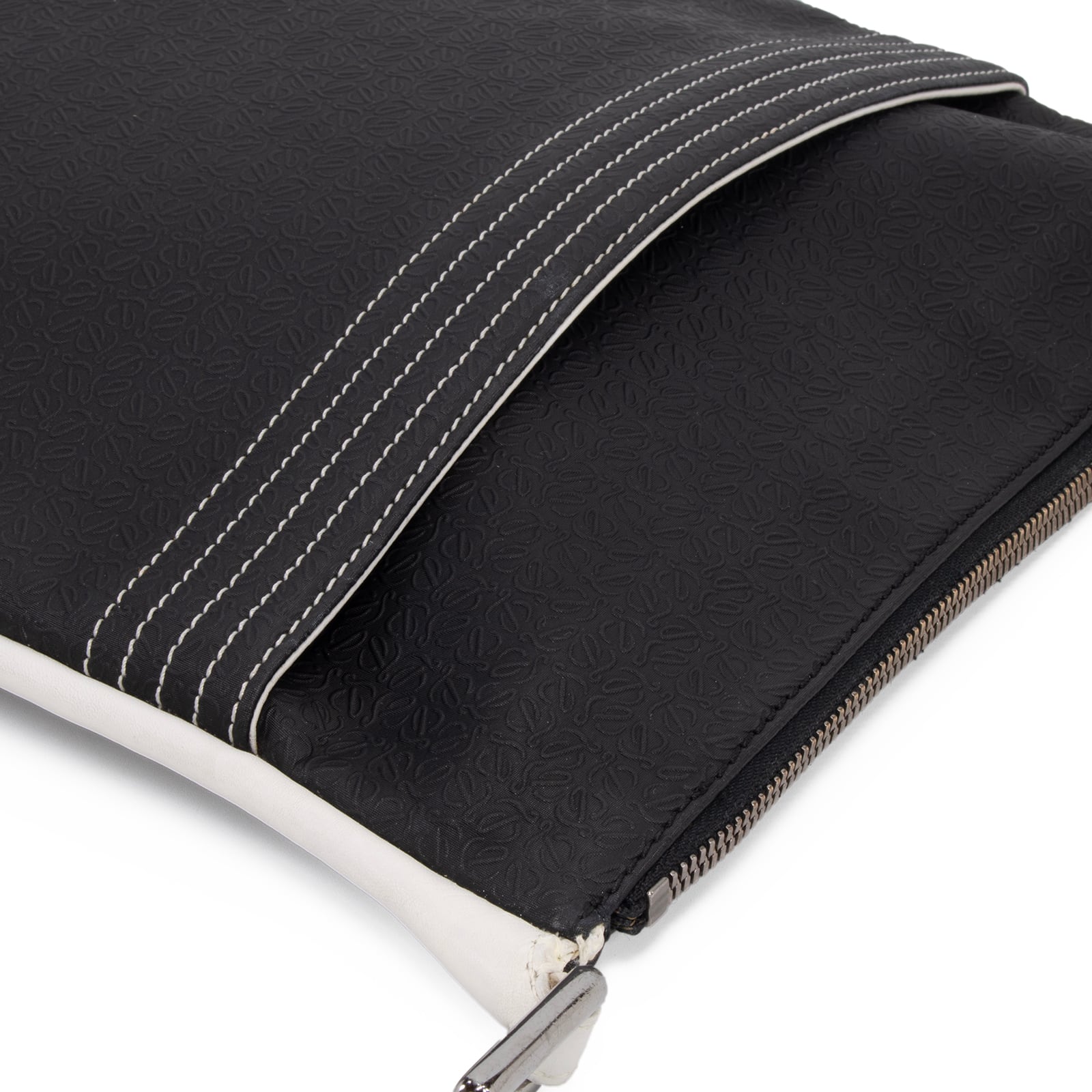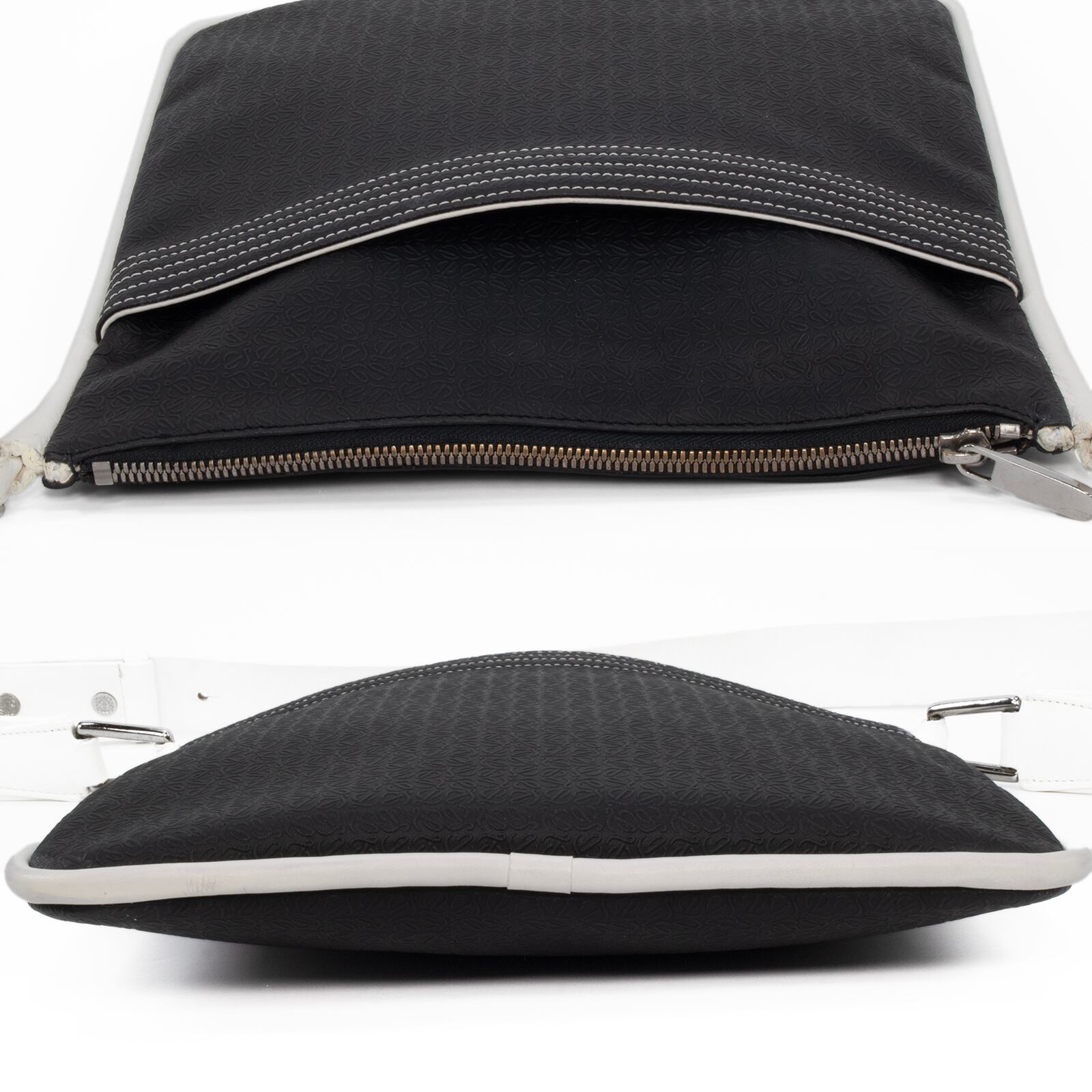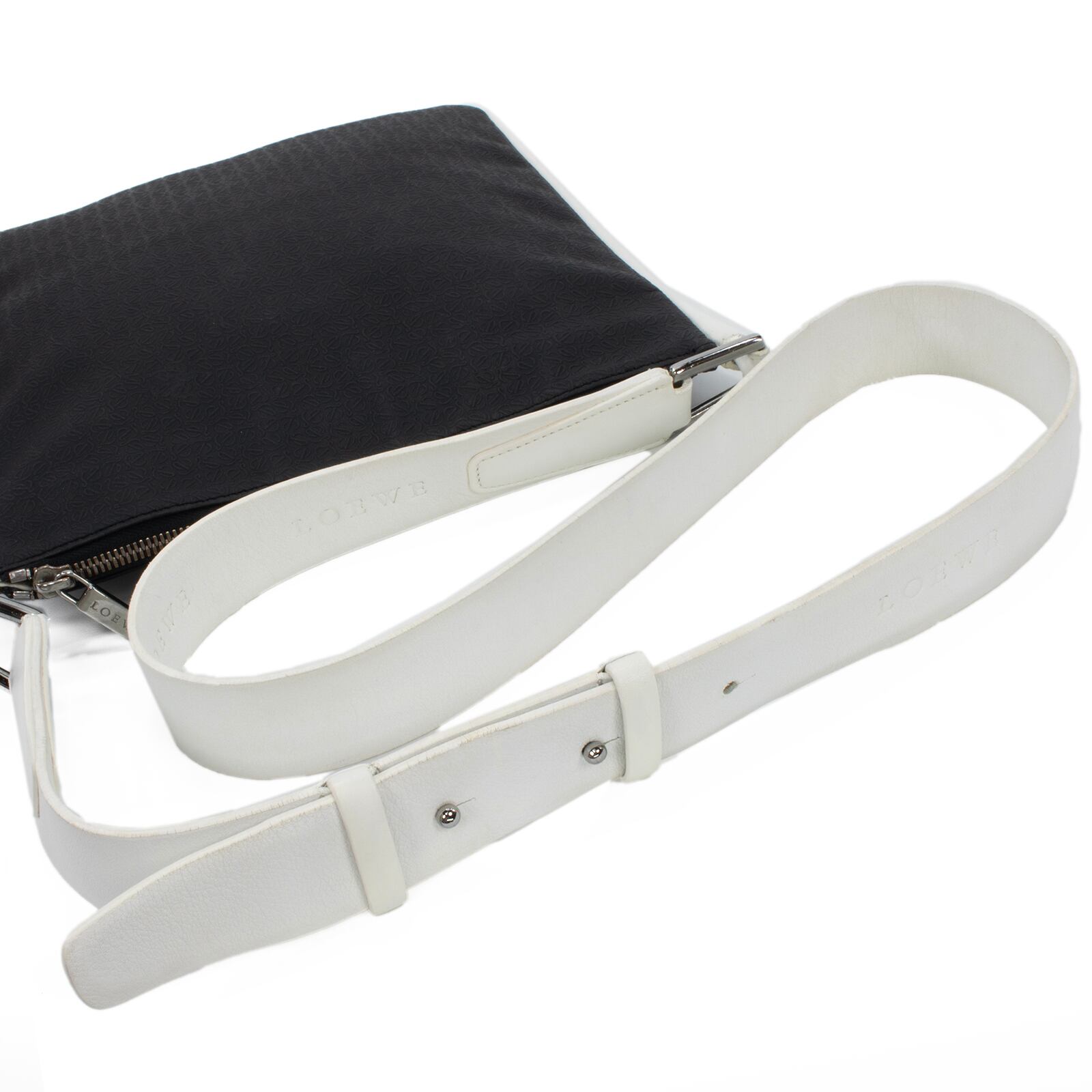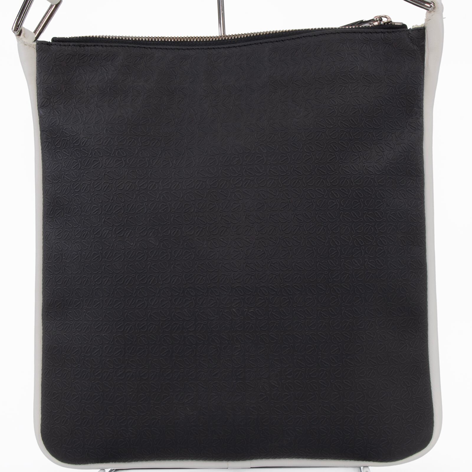 本物 送料無料 ロエベ ショルダーバッグ メンズ レディース リピート 黒 ブラック 白 斜め掛け アナグラム ロゴ マーク 革 鞄 バック E424