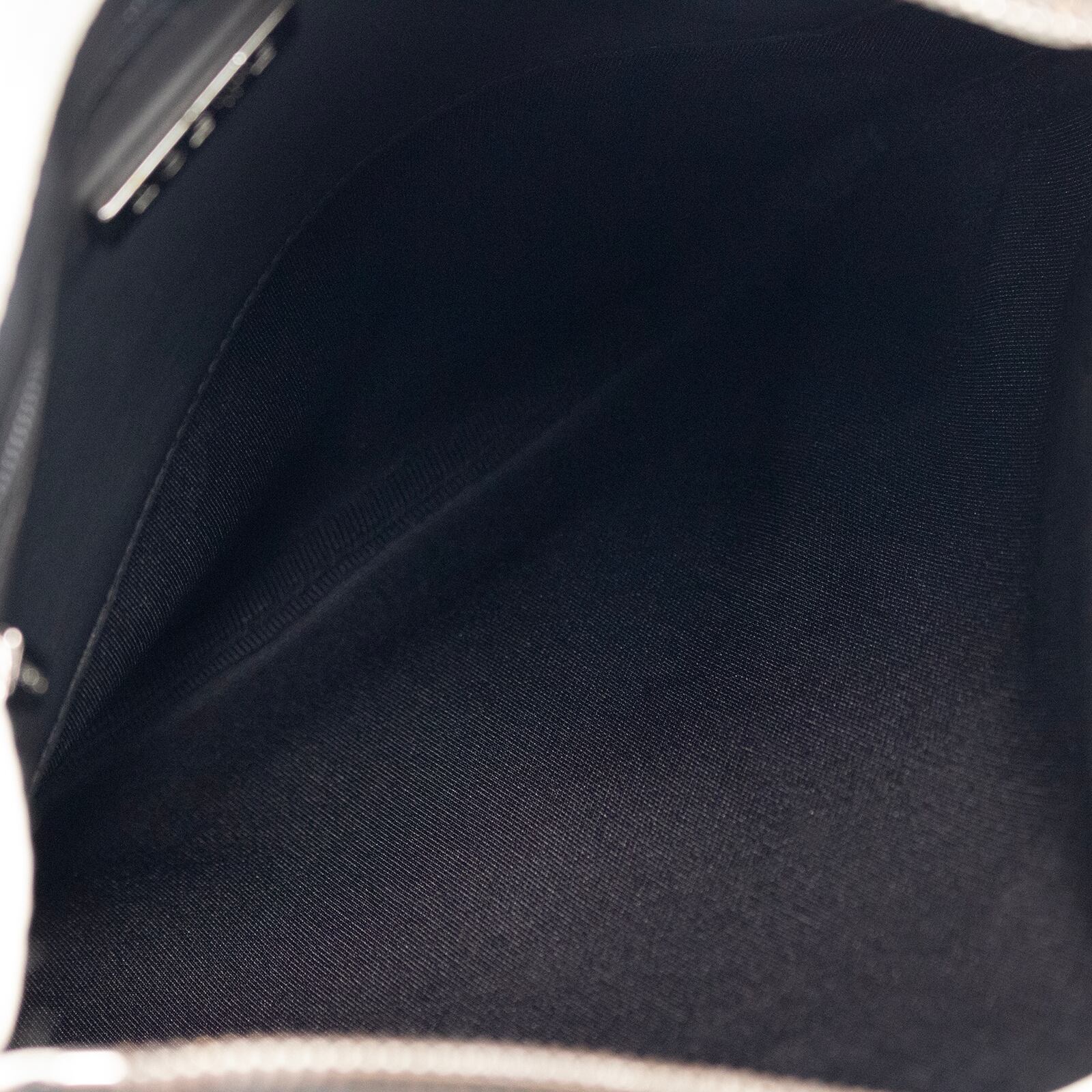 漆黒のボディに浮かび上がるように施されたリピートアナグラムの型押しが、見る人の視線を惹きつけてやまない逸品でございます。