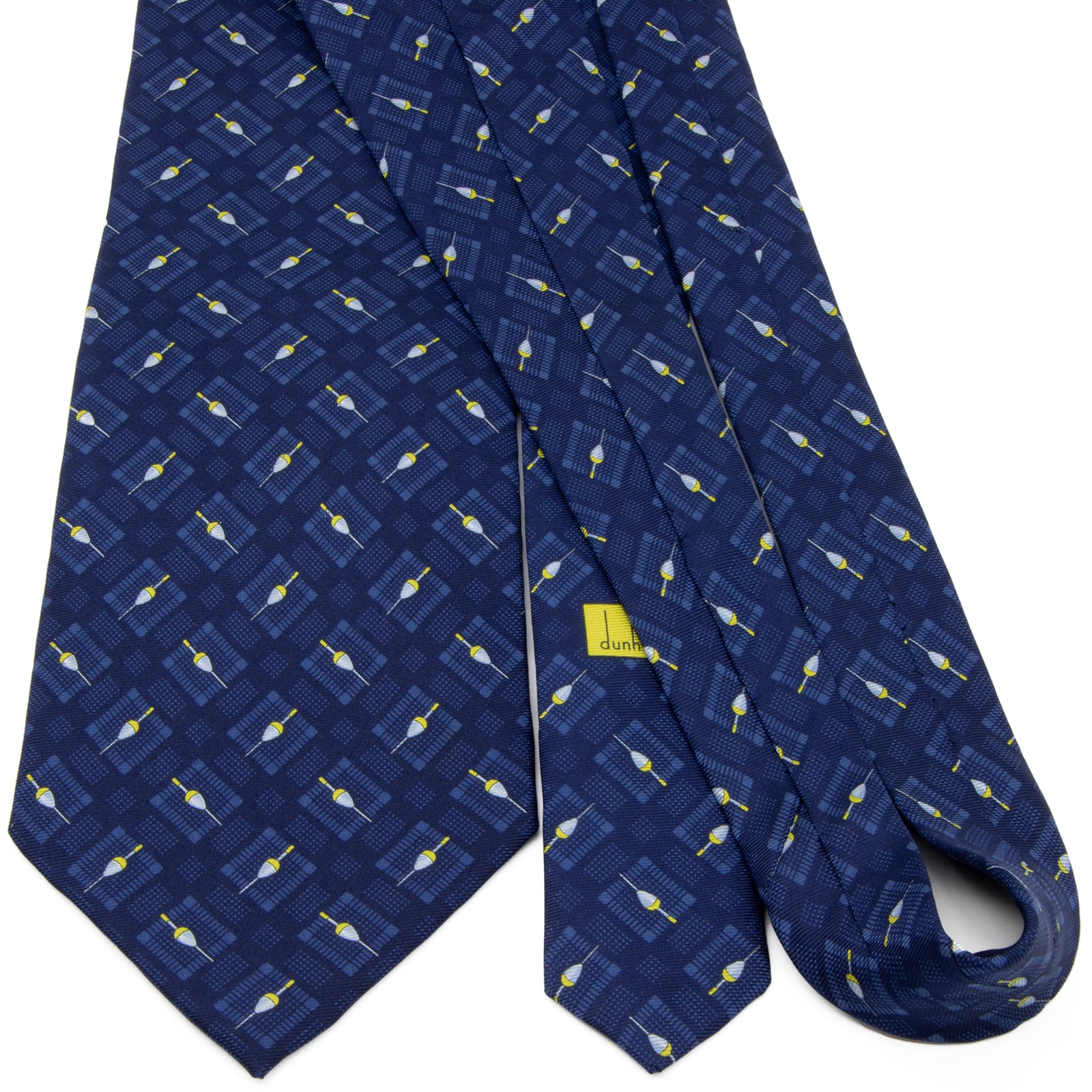こちらは釣り好きの心をくすぐる、ユニークなウキのデザインが魅力の、ダンヒルのネクタイでございます。
