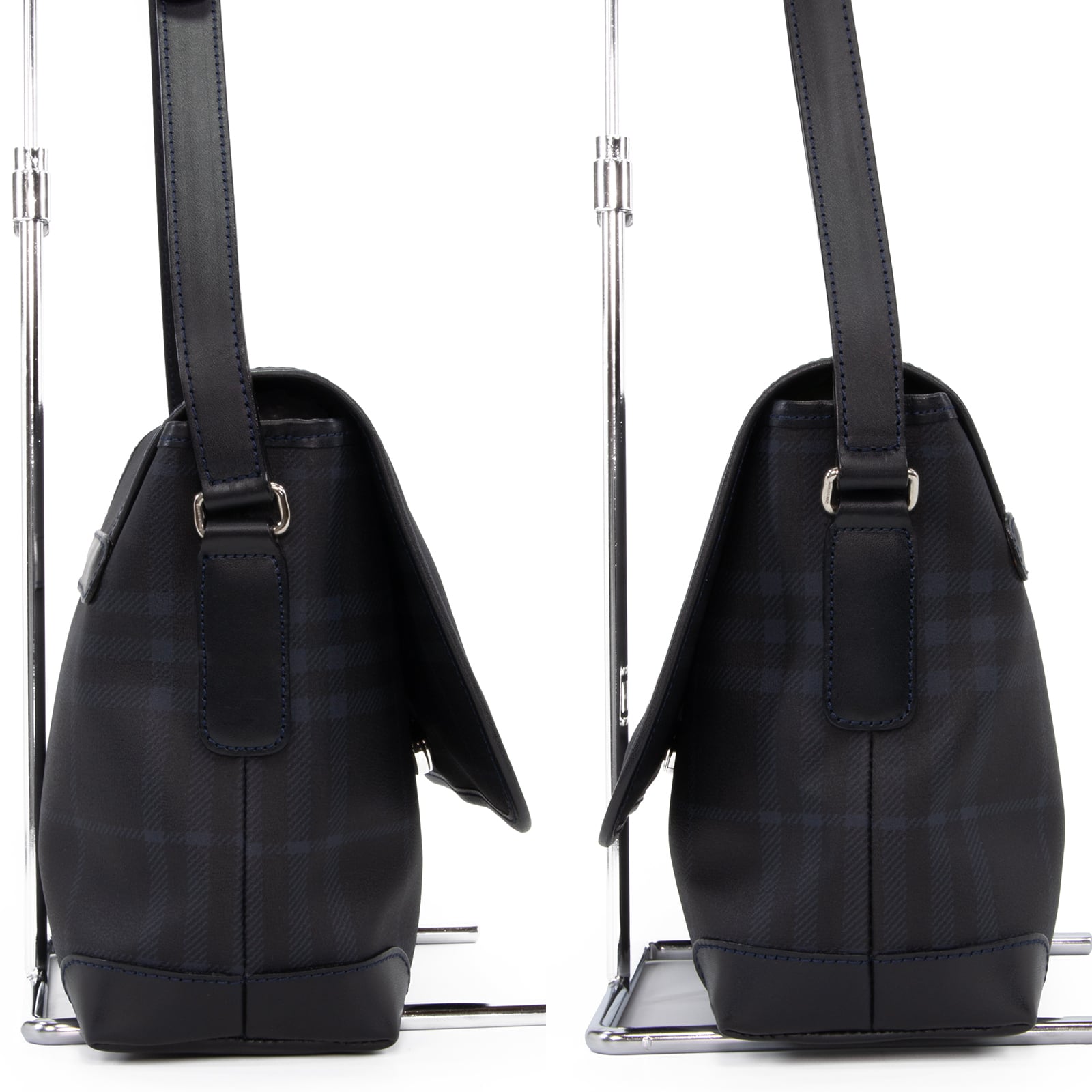 本物 送料無料 バーバリー ショルダーバッグ メンズ レディース 黒 ネイビーブルー 斜め掛け チェック ロゴ 本革 レザー 鞄 バック A849