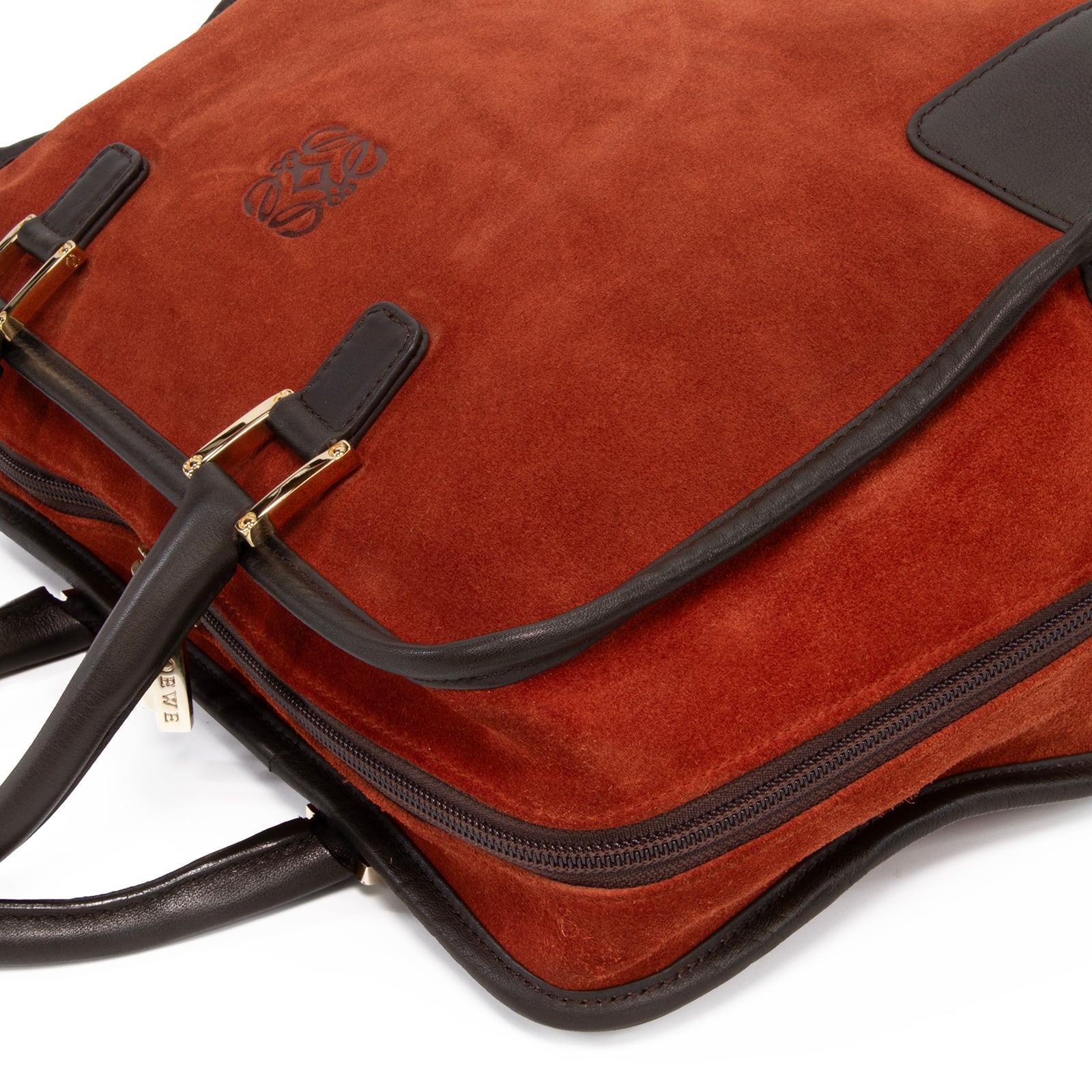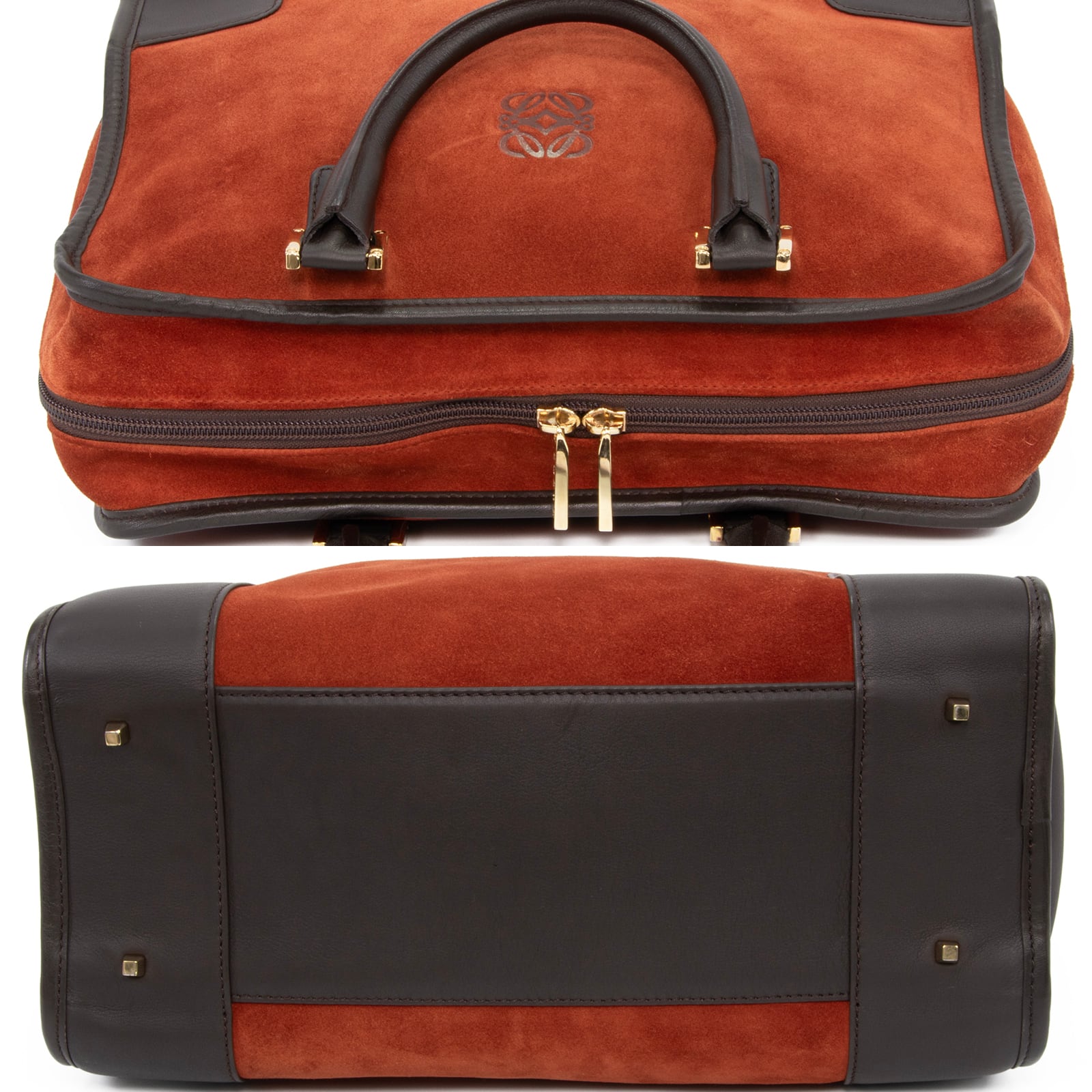 本物 送料無料 ロエベ ハンドバッグ メンズ レディース アマソナ32 赤茶色 ダークブラウン 珍しい アナグラム ロゴ マーク 鞄 バック E425