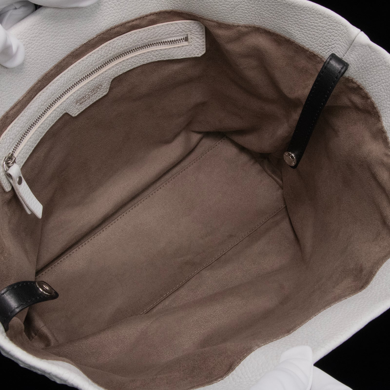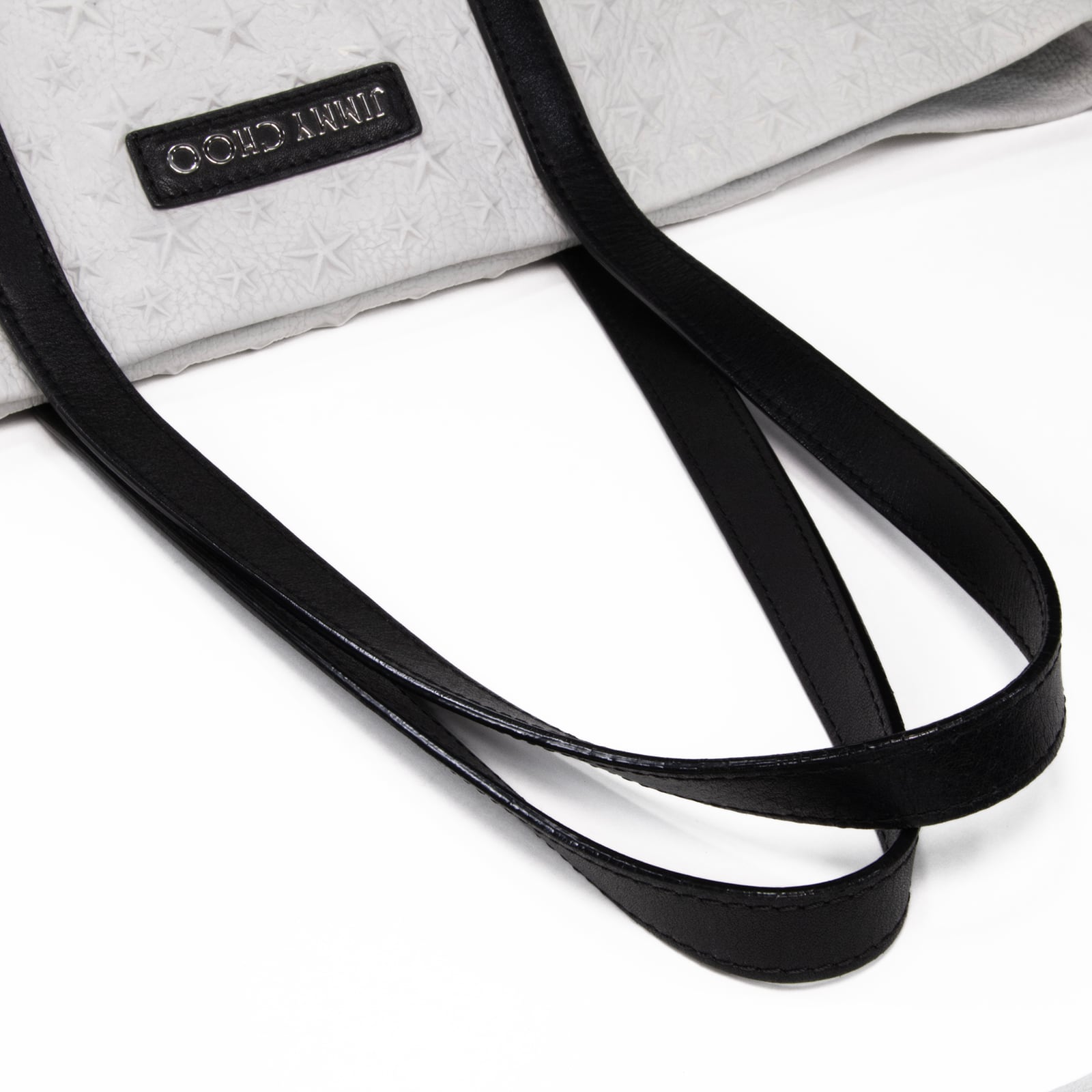 こちらは上質な素材感が日々の装いを格上げする、ジミーチュウのトートバッグでございます。