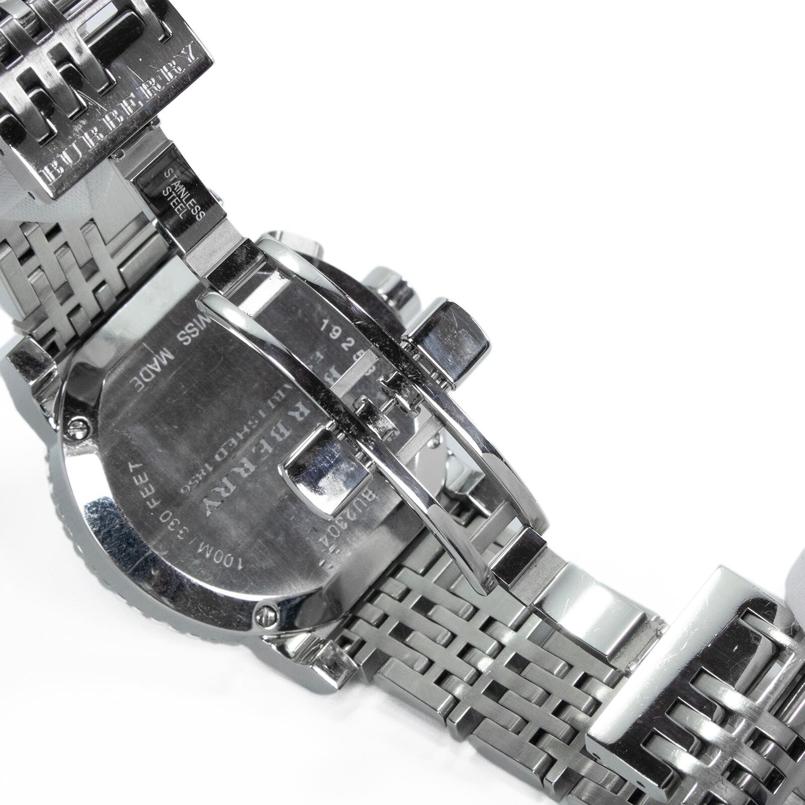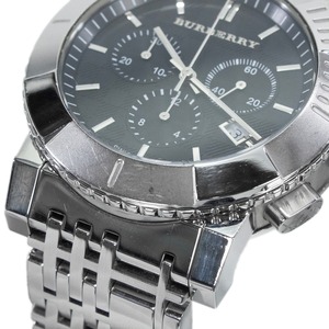 送料無料 バーバリー 腕時計 メンズ BU2304 黒 シルバー クロノグラフ チェック ロゴ メタルブレスレット 大型 ブランド 人気 綺麗 X370