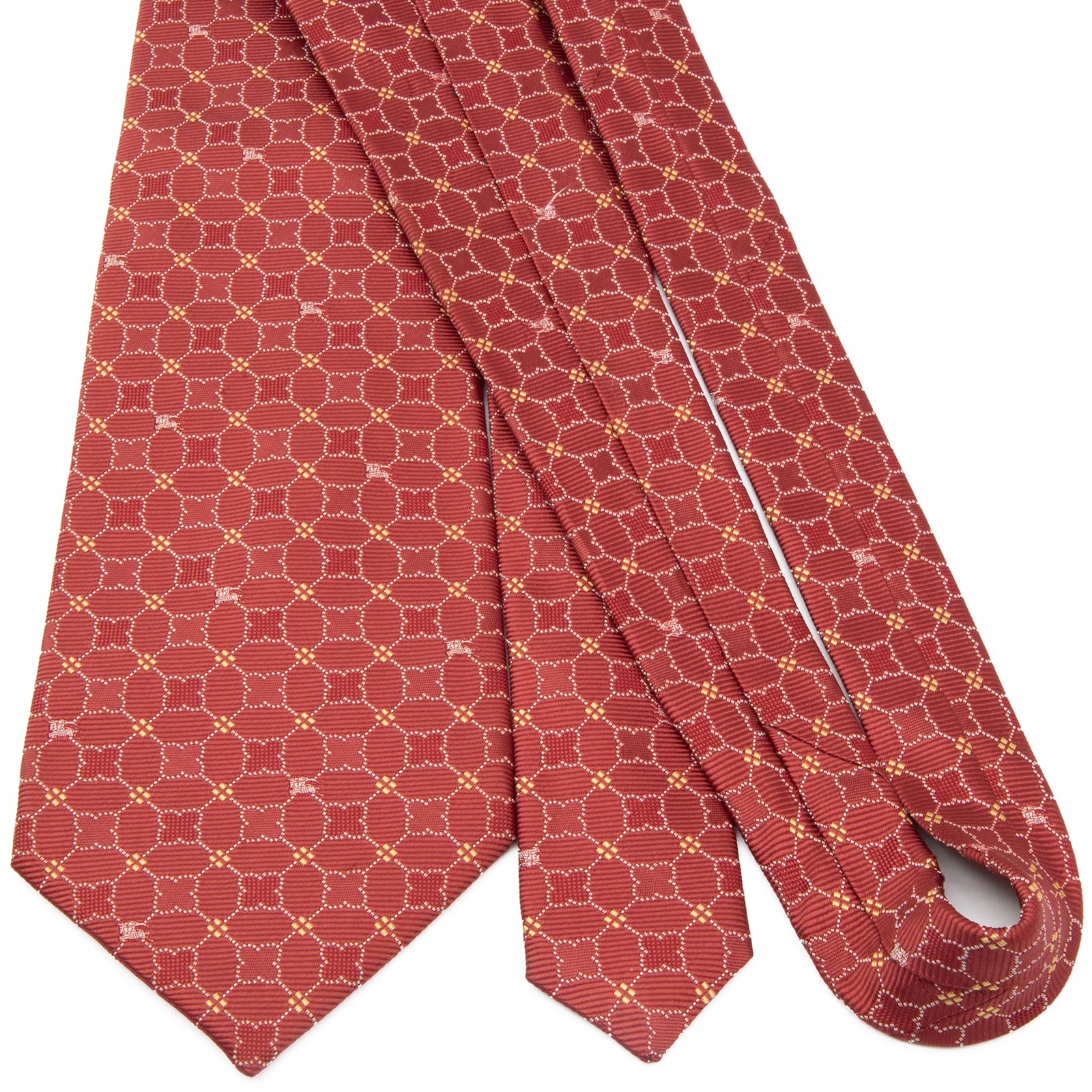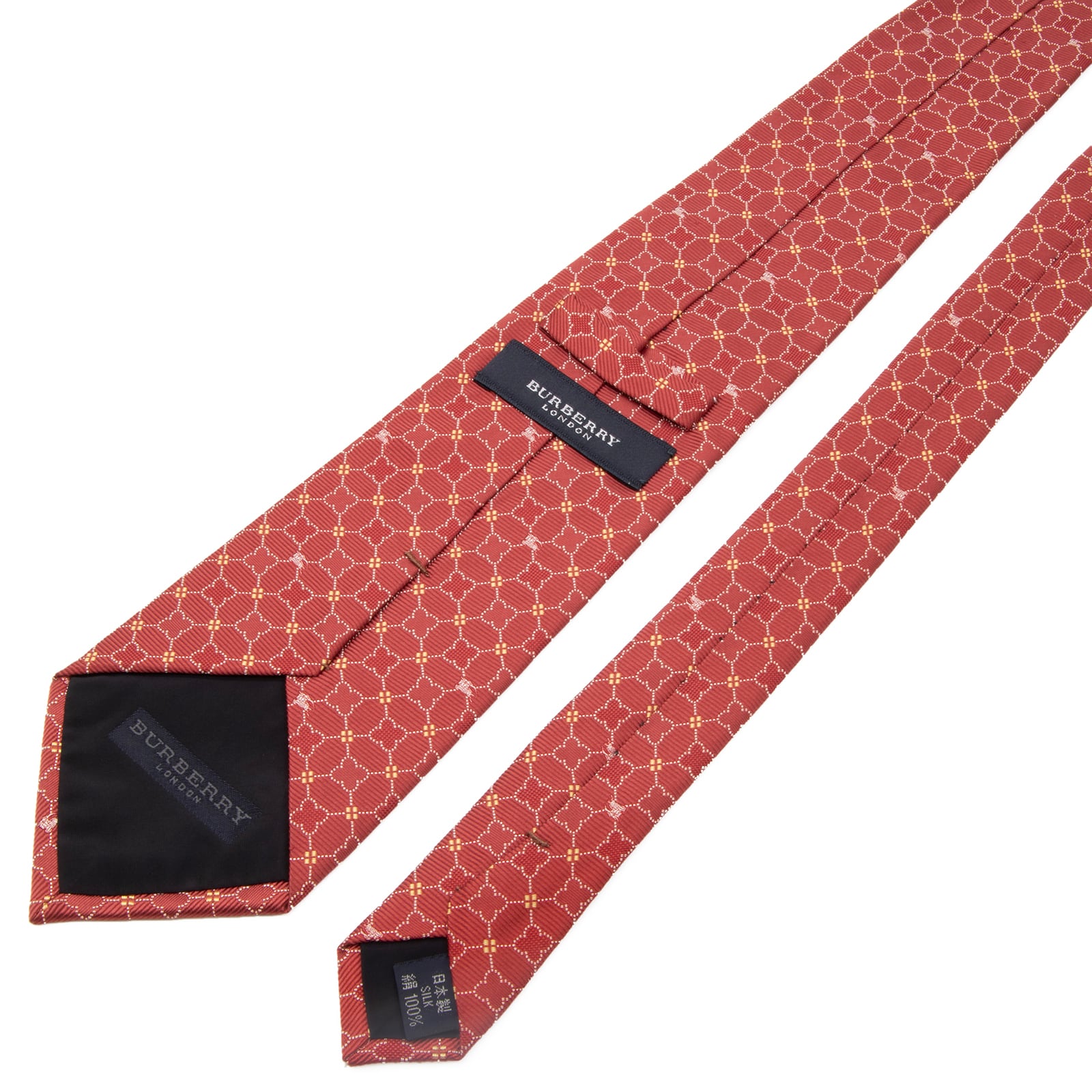 送料無料 バーバリー ネクタイ ジャガードタイ シルク 赤 レッド 黄色 白 総柄 花 フラワー ホースロゴ マーク 光沢 ブランド 綺麗 P615