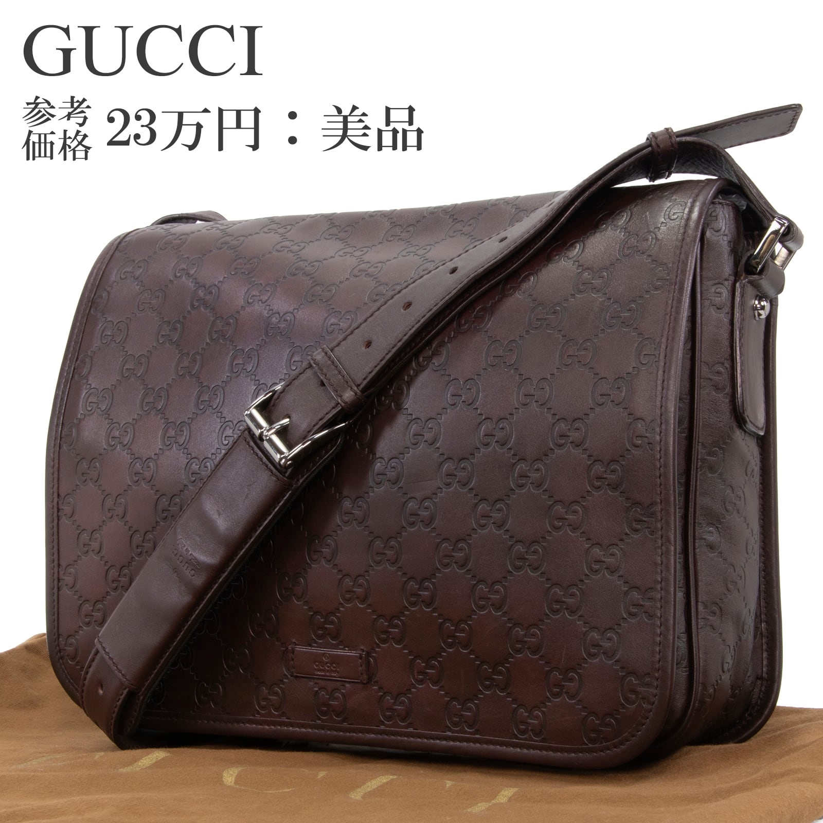 本物 グッチ ショルダーバッグ メッセンジャーバッグ メンズ レディース グッチシマ 茶色 肩掛け 斜め掛け GGロゴ マーク 鞄 バック F283