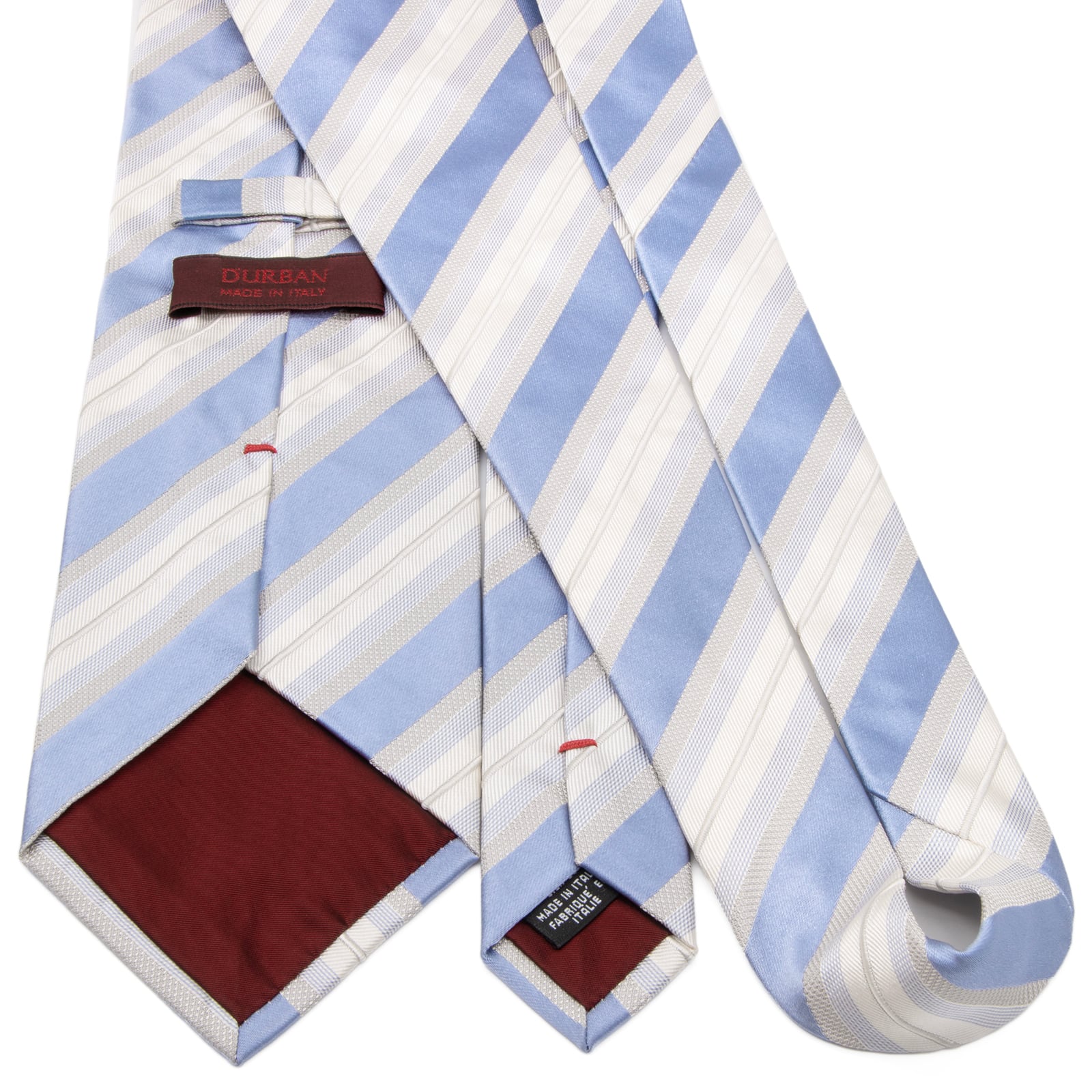送料無料 ダーバン ネクタイ レギュラータイ ジャガードタイ シルク 水色 シルバー 白 ビジネス ストライプ ブランド イタリア製 綺麗 P507