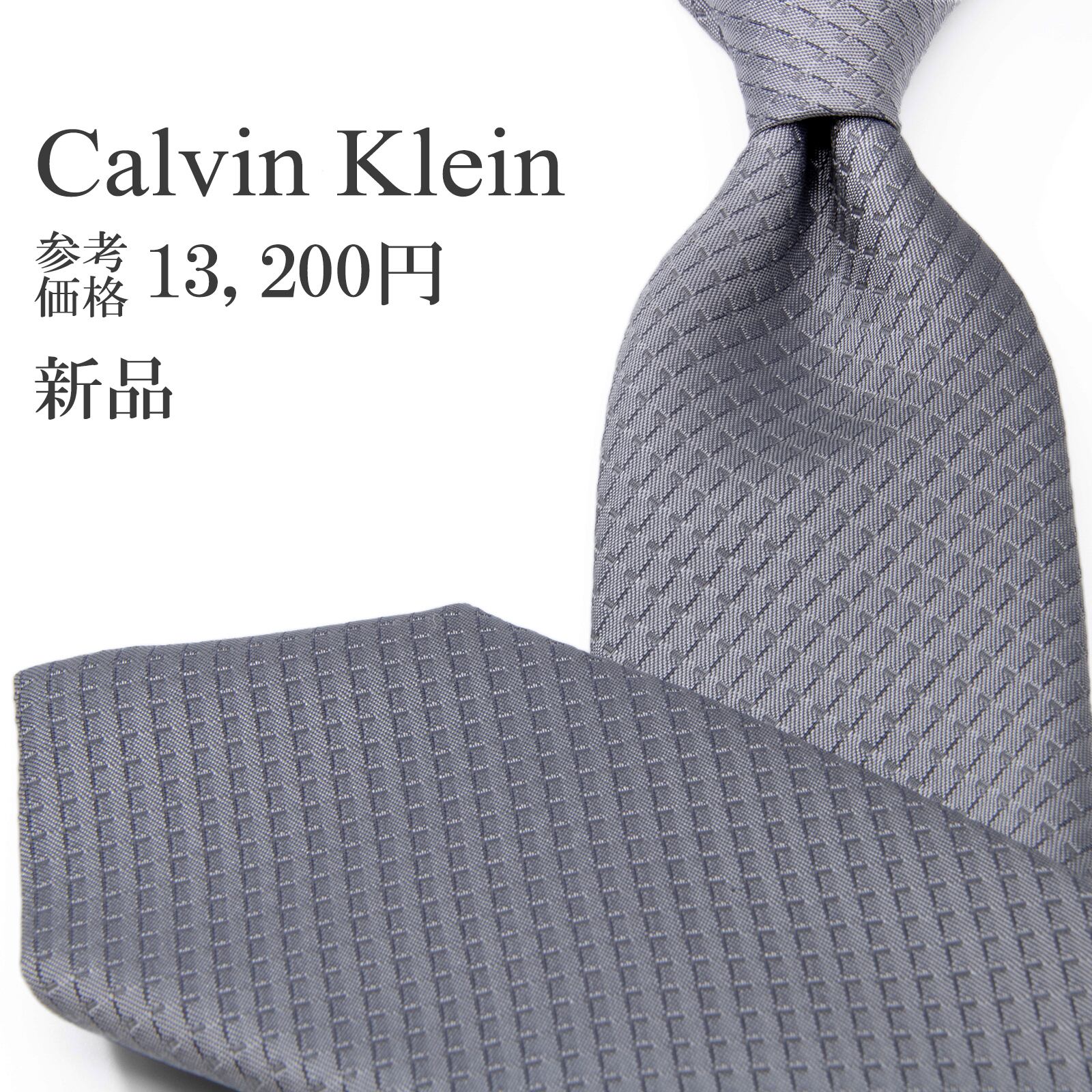 送料無料 カルバンクライン ネクタイ ナロータイ ジャガードタイ 新品 シルク ポリエステル グレー ビジネス シンプル 光沢 ブランド P517
