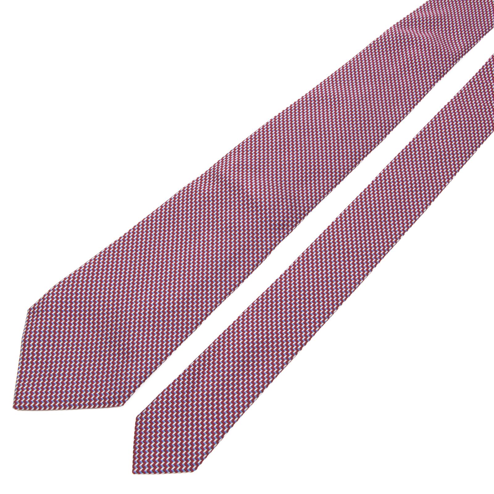 レッド・ブルー・シルバーの糸を、大変緻密なジャガード織りで、ギザギザのマイクロパターンに仕上げた一本。
