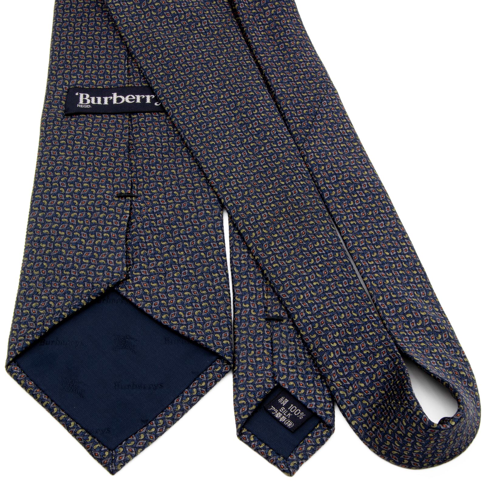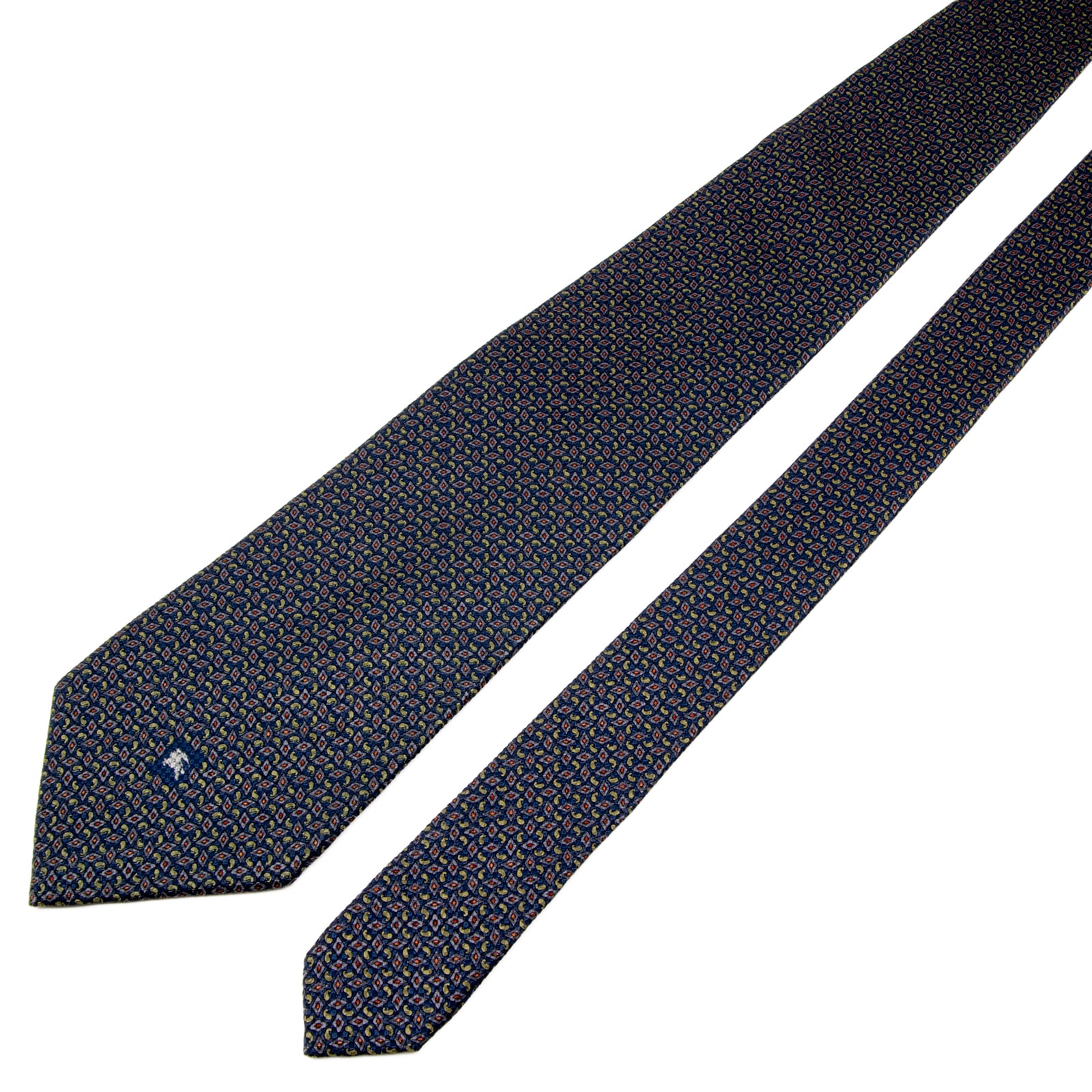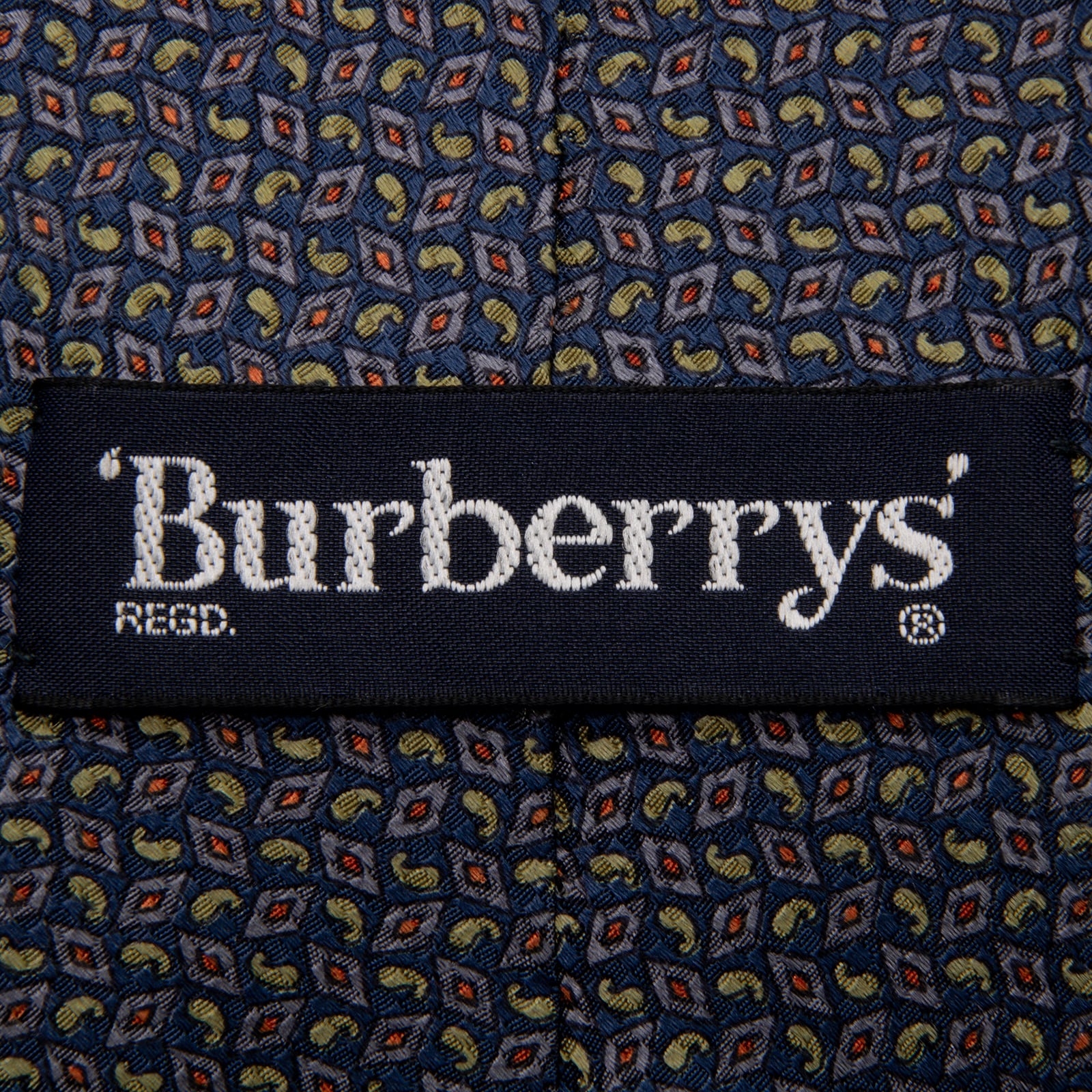 送料無料 バーバリー ネクタイ 新品同様 シルク ネイビーブルー 黄緑 薄紫色 オレンジ グレー 総柄 ホースロゴ マーク 光沢 Y2K 綺麗 P642
