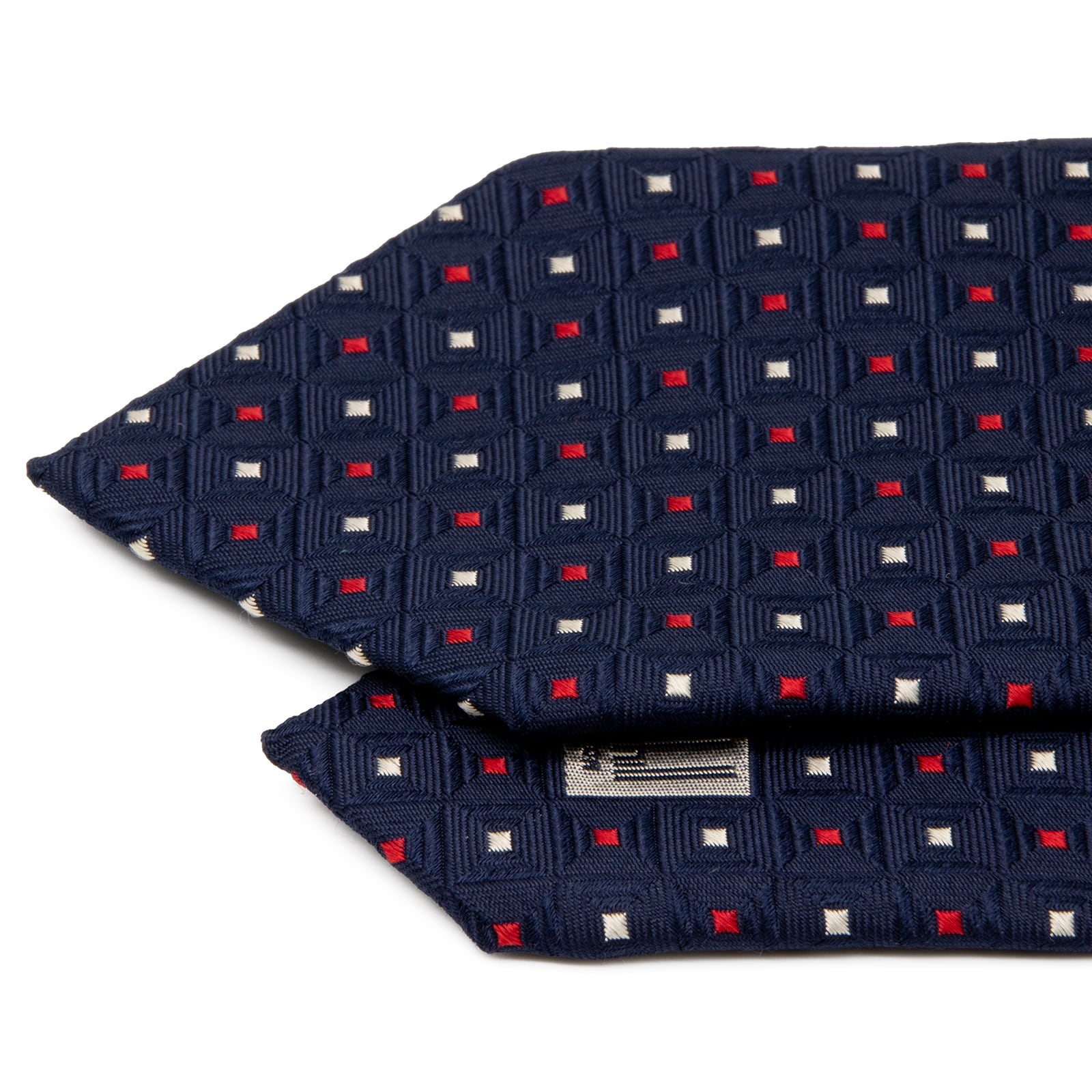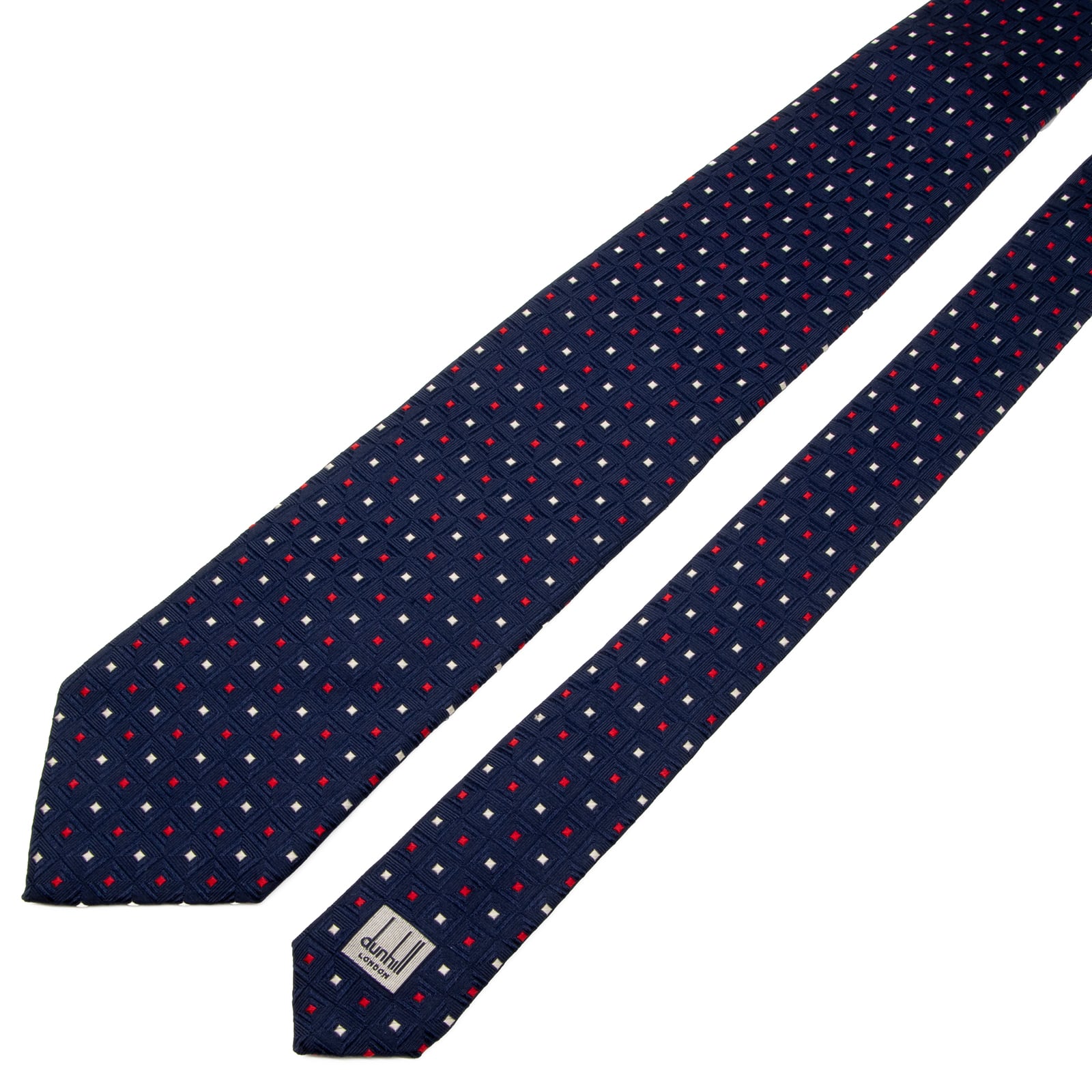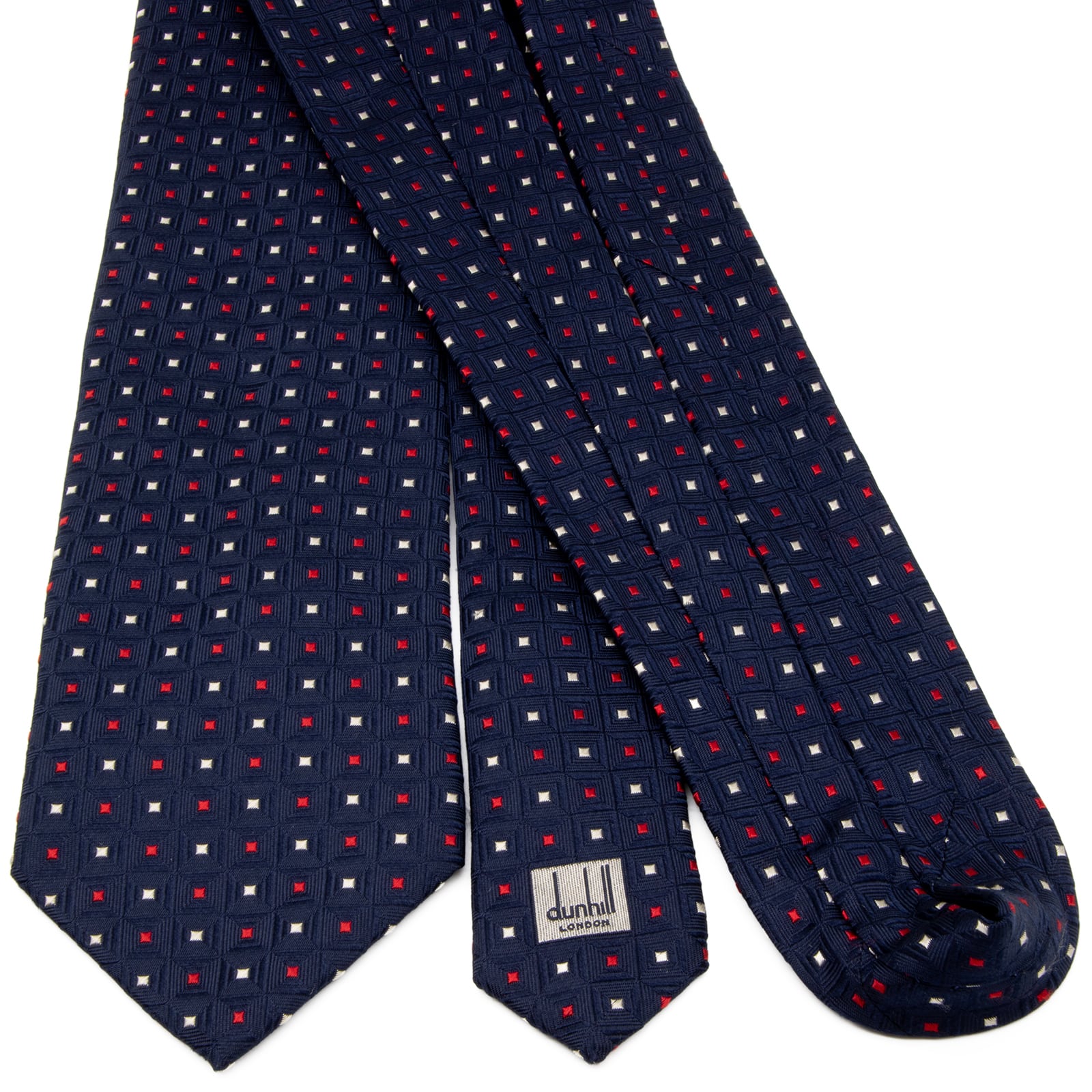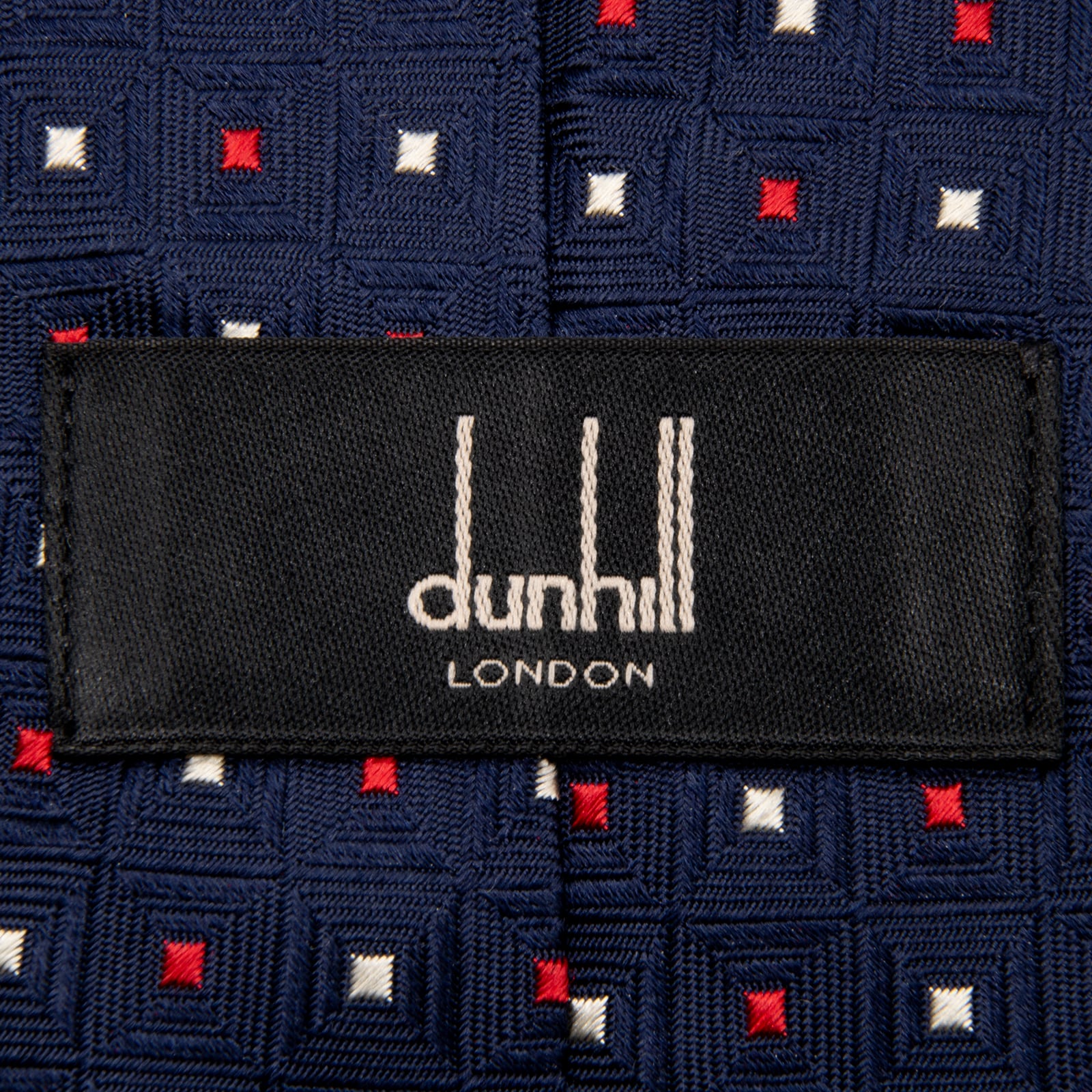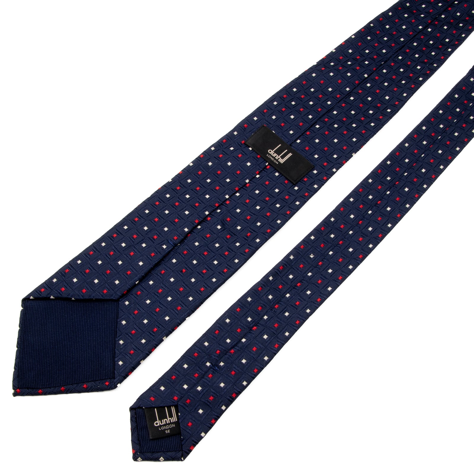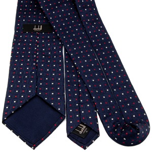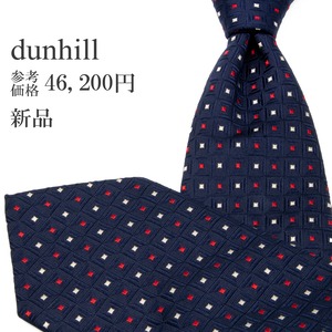 送料無料 ダンヒル ネクタイ レギュラータイ ジャガード 新品 シルク ネイビーブルー 赤 レッド 白 光沢 四角 ブランド 珍しい 綺麗 P649