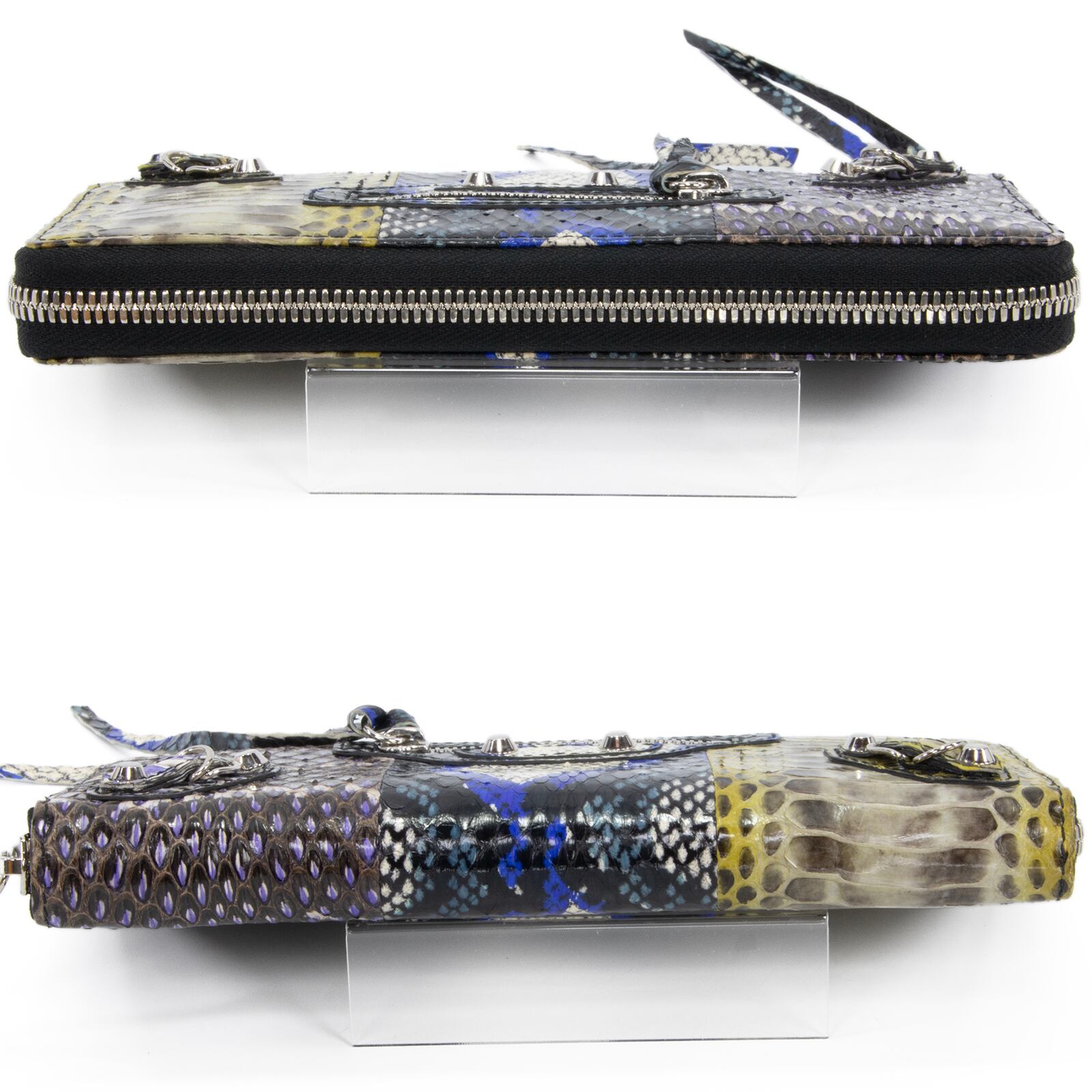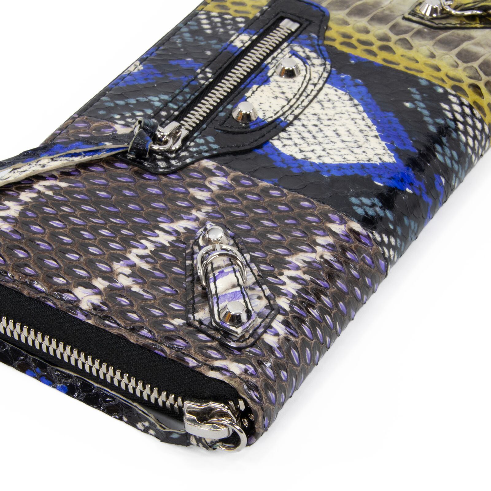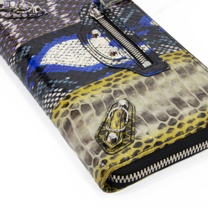 本物 送料無料 バレンシアガ 長財布 ラウンドファスナー メンズ レディース パイソン シティ 青 ブルー 茶色 黄色 黒 ブラック 蛇の革 C229